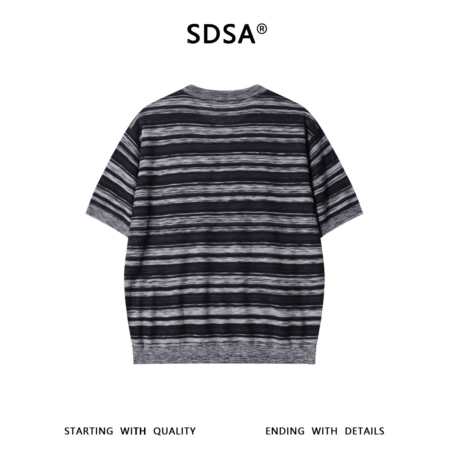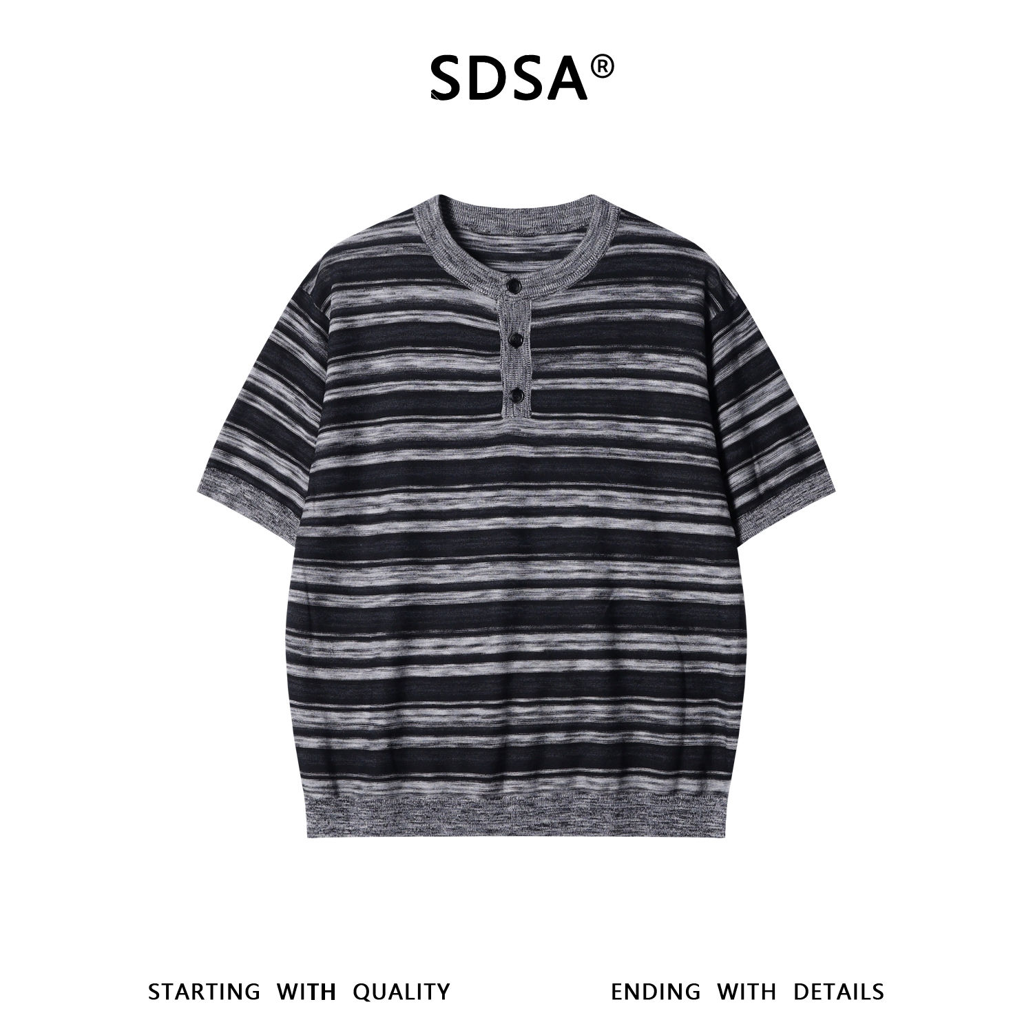 SDSA男装2026新款高贵轻奢休闲条纹亨利领针织短袖T恤百搭简约