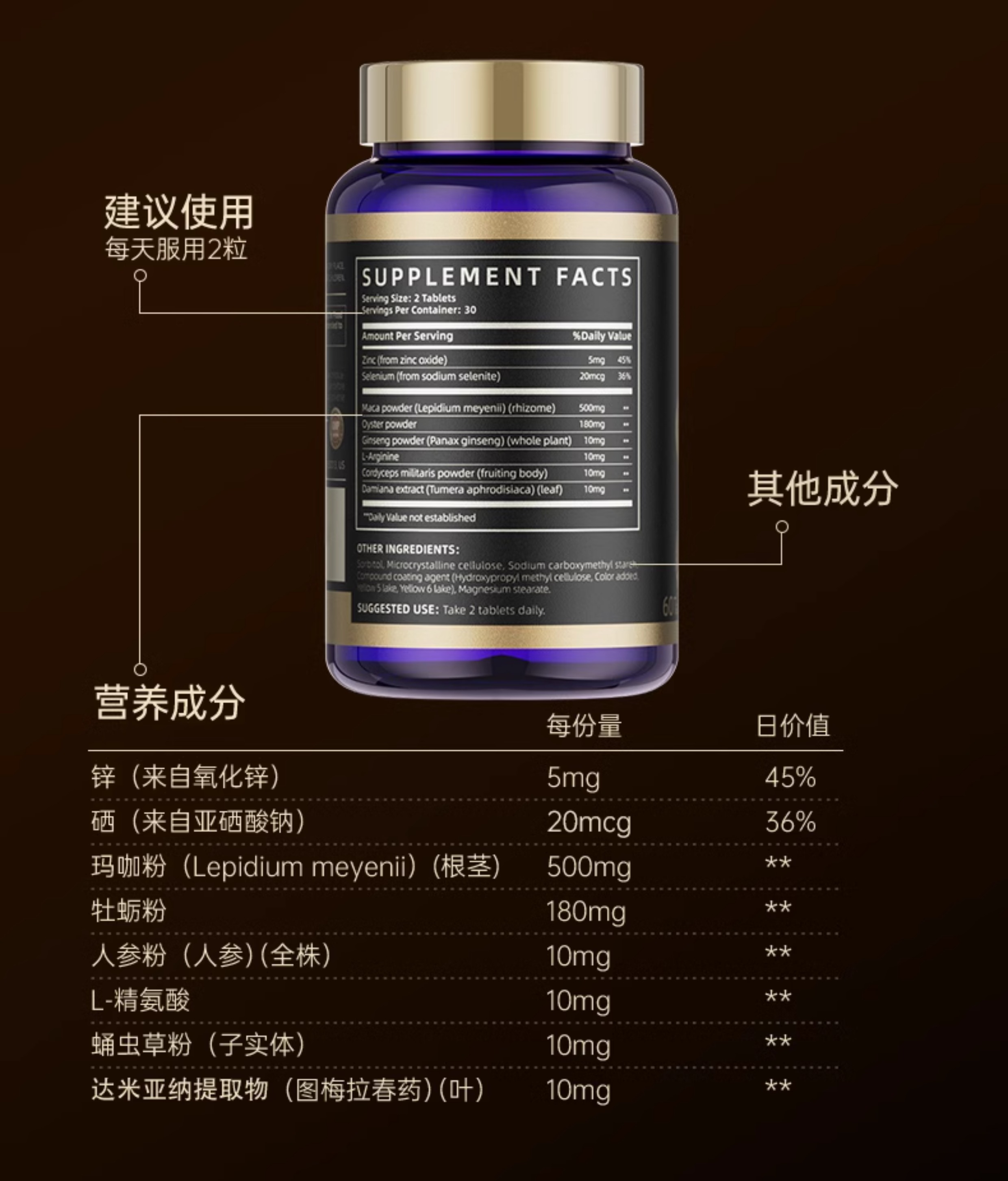 skyoo美国原装进口雄风牡蛎玛咖片男士快速补活力肾保健高端滋补