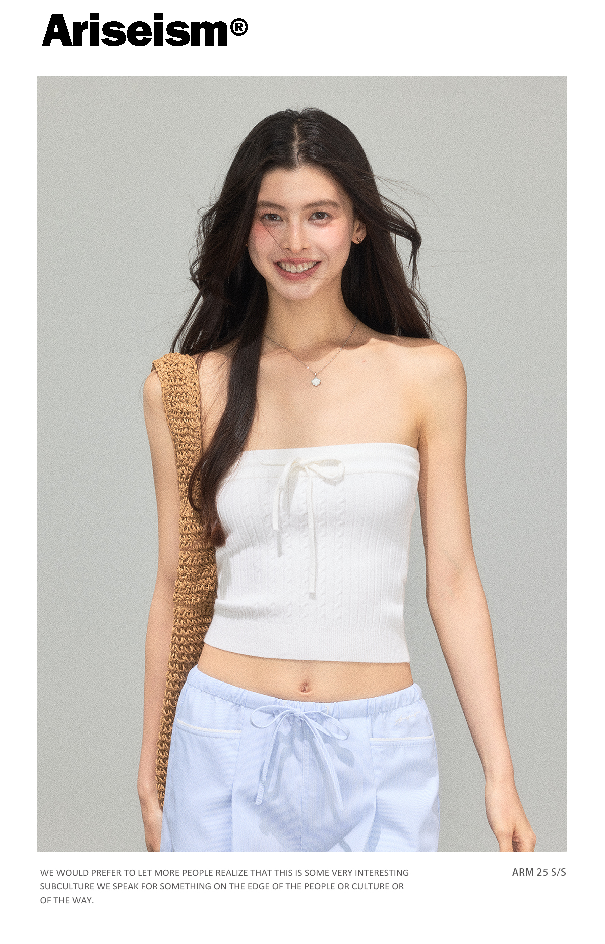 Ariseism 美式复古性感辣妹白色针织抹胸吊带女夏季新款修身上衣