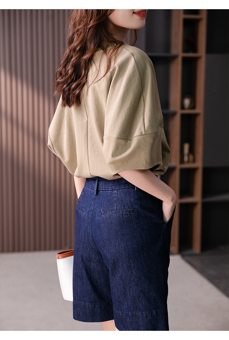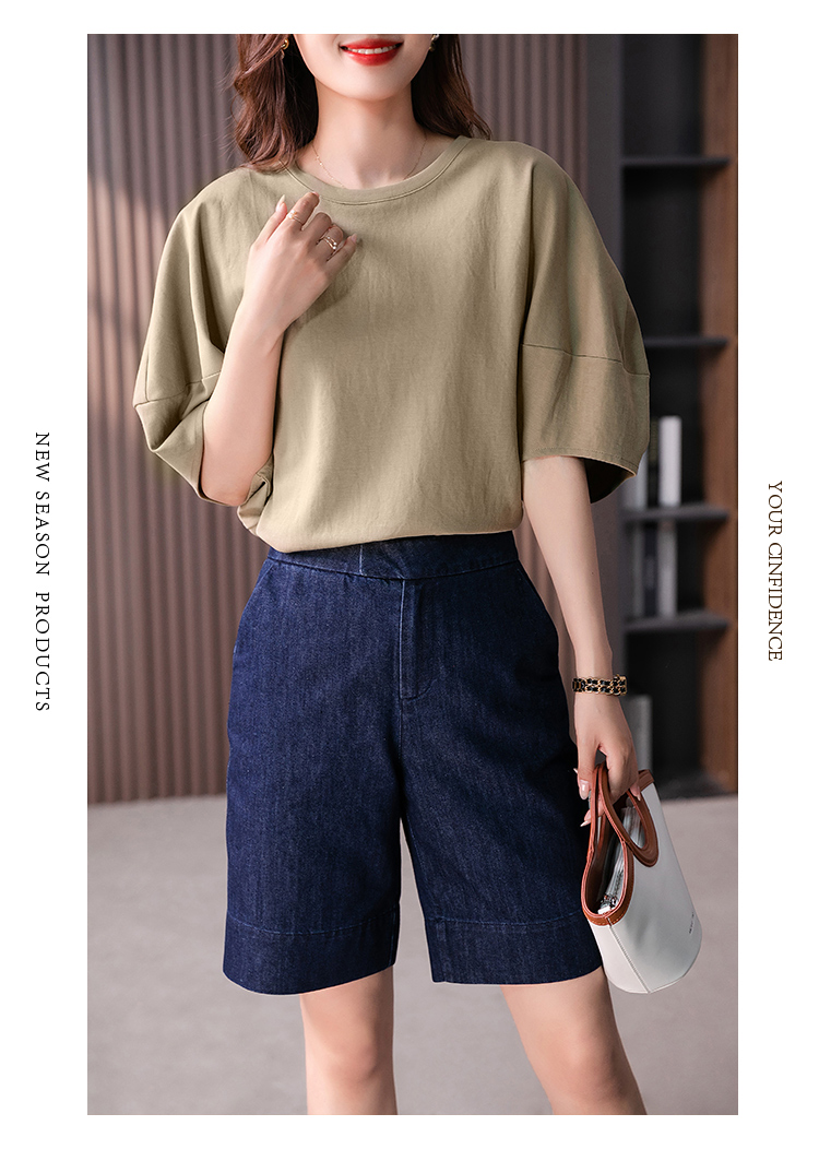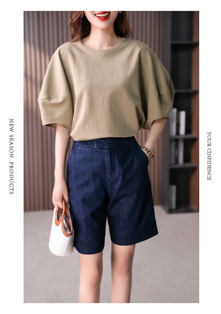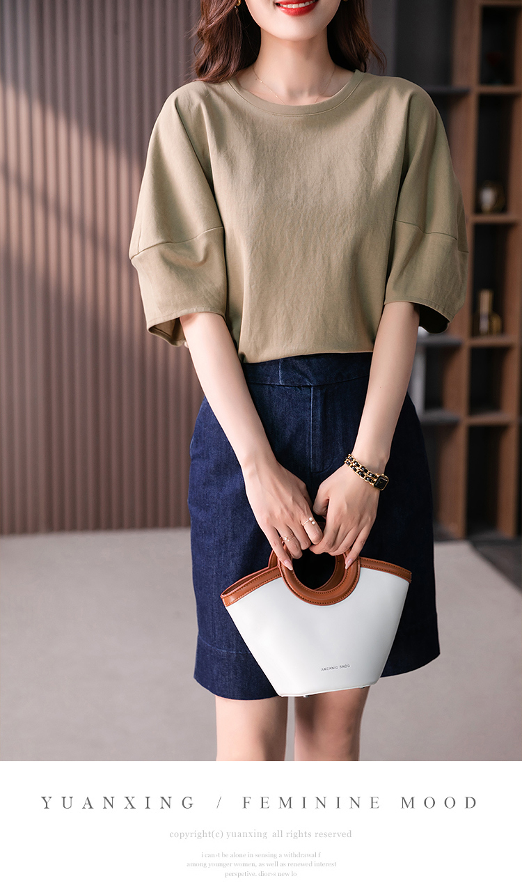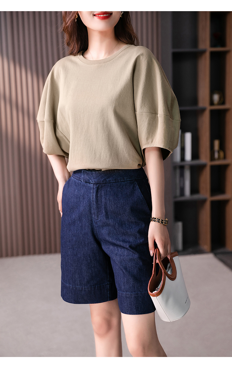 89137原形设计感小众灯笼袖短袖T恤女2024夏季新款宽松减龄休闲上衣