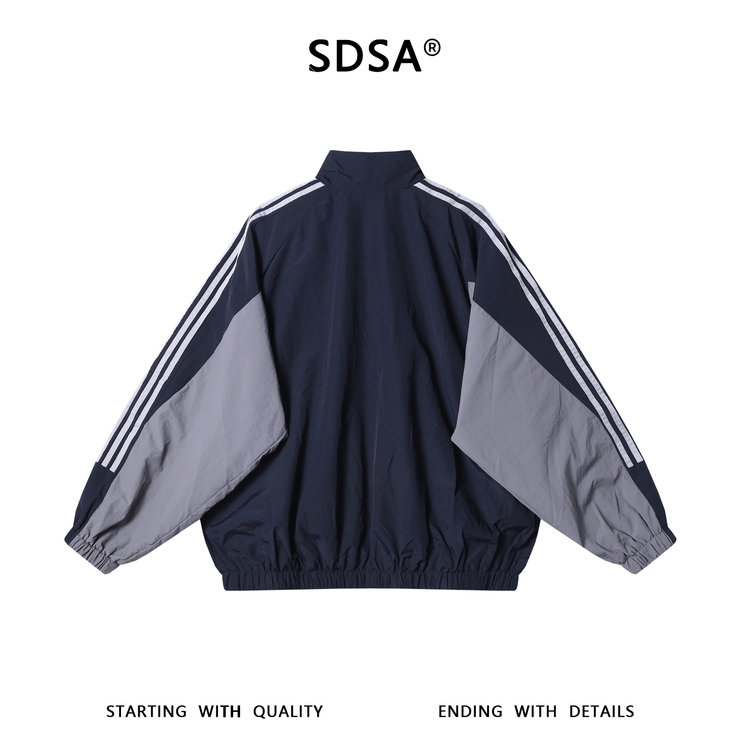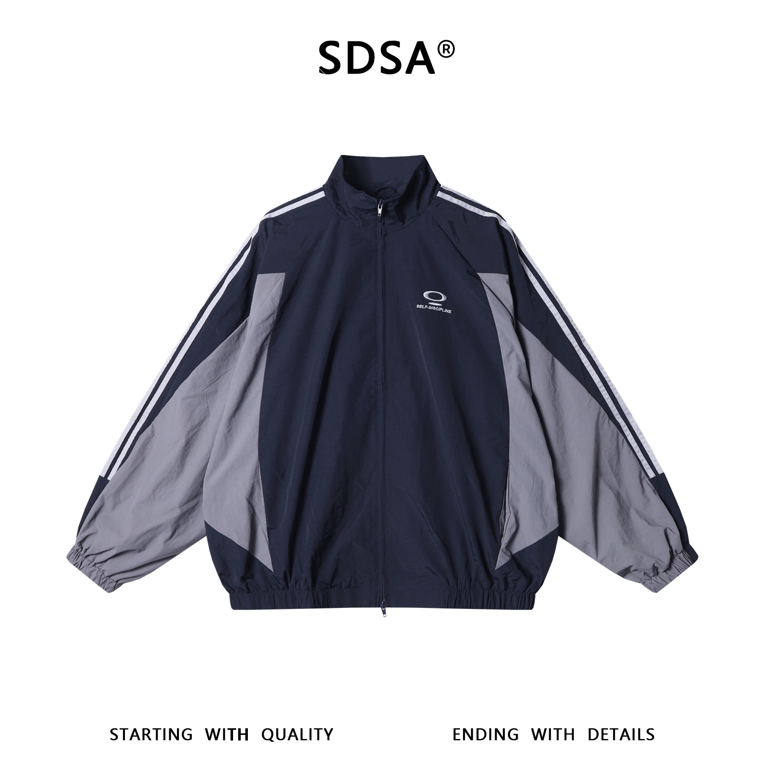 SDSA男装2026新款高贵轻奢复古设计感撞色拉链立领夹克外套百搭