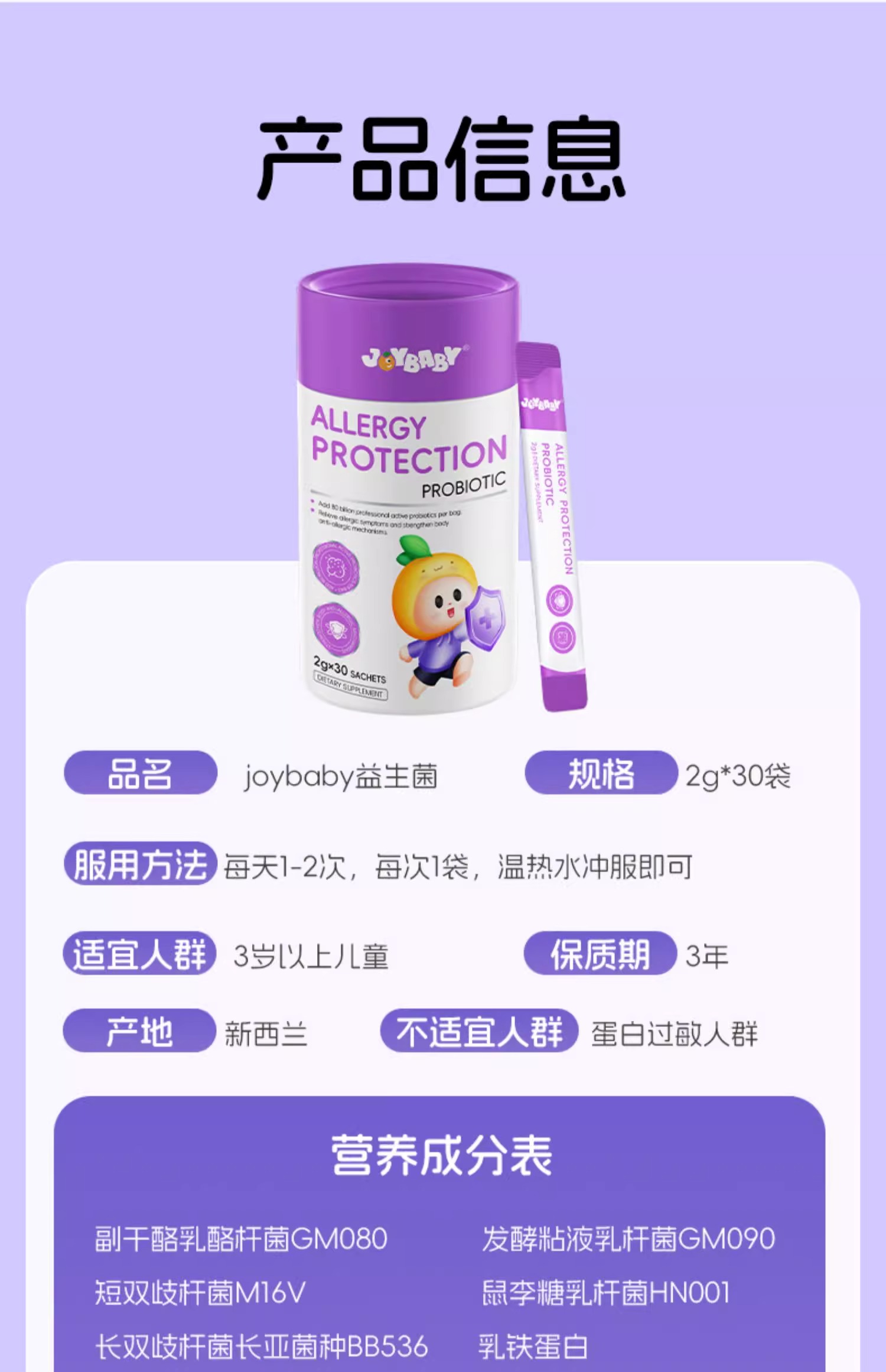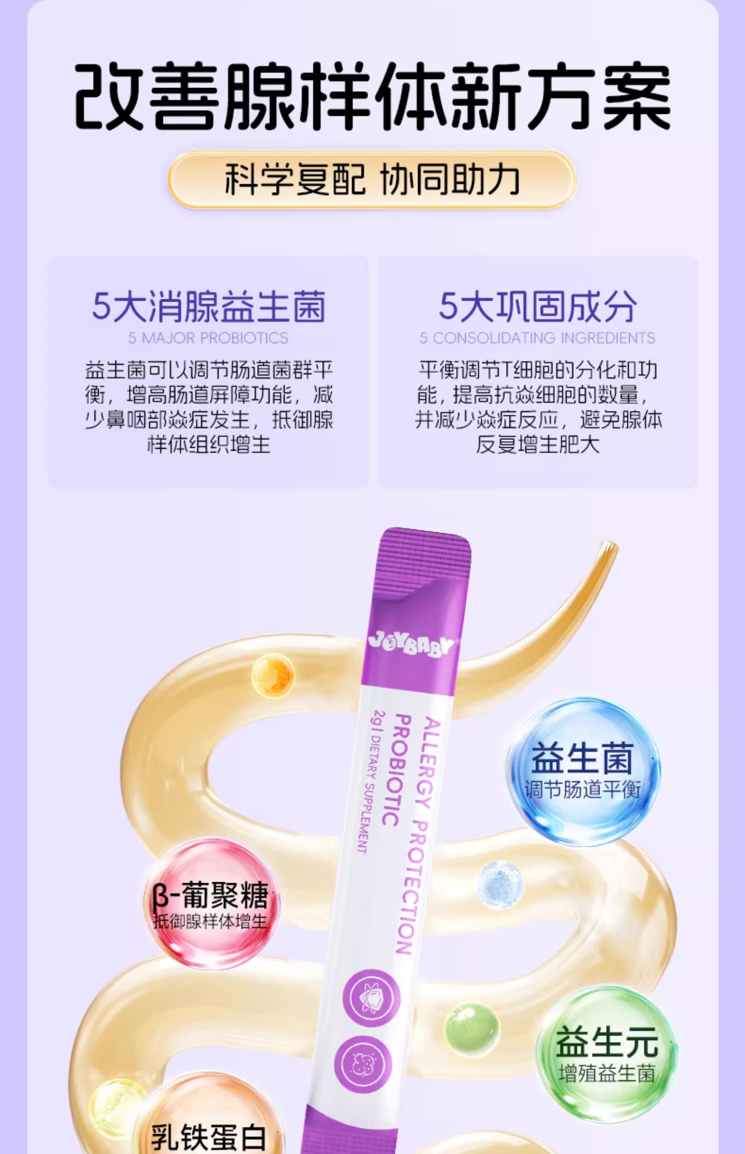 joybaby益生菌改善腺样体不适口呼吸 调理腺样体面容