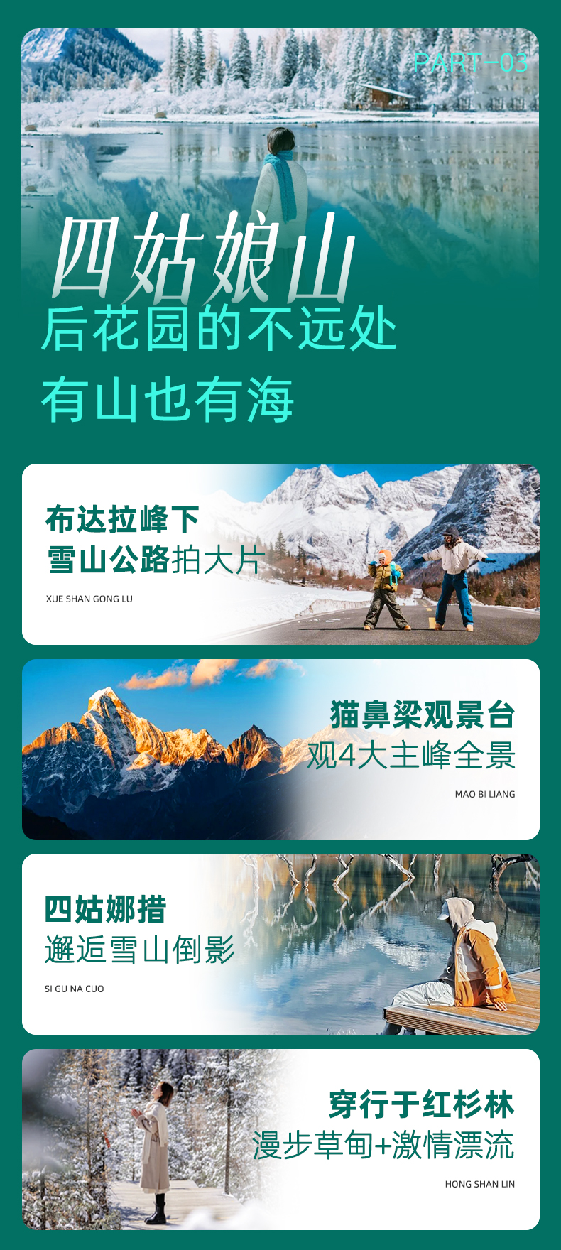 C套餐 不含四姑娘山观光车70元/人、九寨沟(旺季观光车90元/人或淡季观光车80元/人+景区内保险10元/人)、黄龙(索道上行80元/人+下行40元/人+景区内保险10元/人+黄龙耳麦30元/人)、黄龙观光车20元/人(2025年11月1日起,往返20元/人,去程15元/人,返程15元/人;观光车票每日限量6000张,请提前购买)。