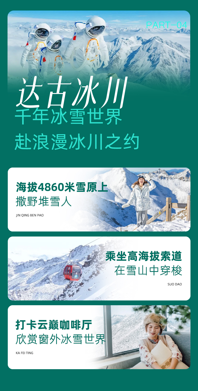 注:达古冰川景区客运索道将于12.26进行检修,检修期间达古冰川景区索道将暂停运营。索道停运期间,景区山下其他景点正常开放,可正常游览,望悉知。