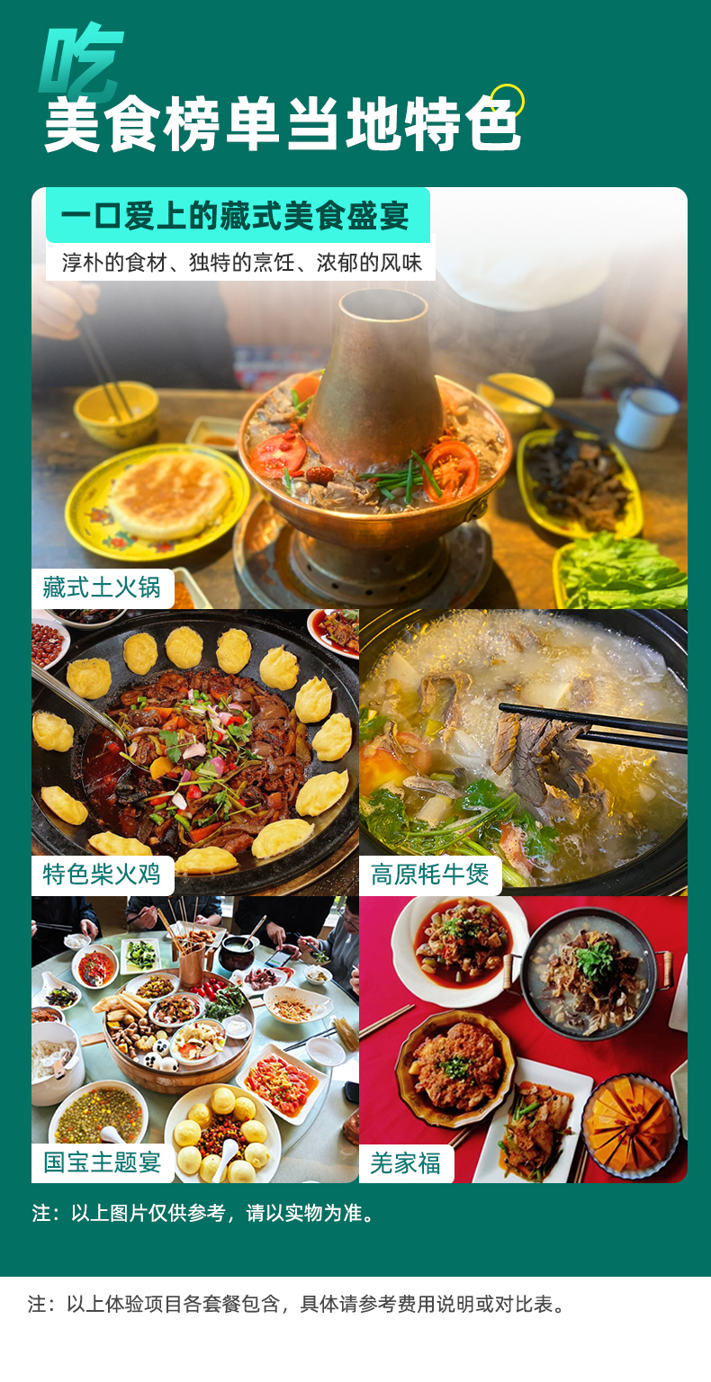 A套餐 2早4正,含赠特色餐:国宝主题宴、羌家福、高原牦牛煲。