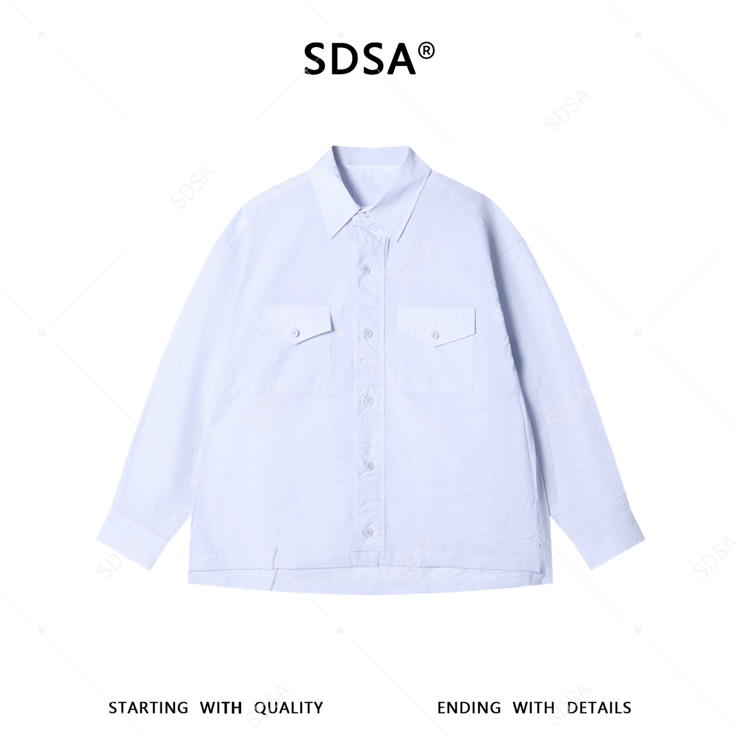 SDSA男装2026新款潮牌简约风长袖衬衫男女同款双口袋宽松翻领上衣