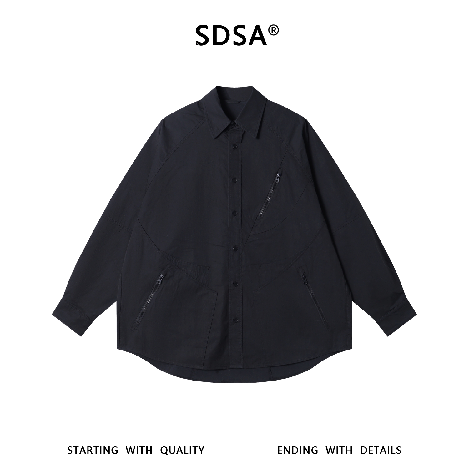 SDSA男装2026新款高贵轻奢多拉链口袋衬衫宽松设计感小众长袖衬衣
