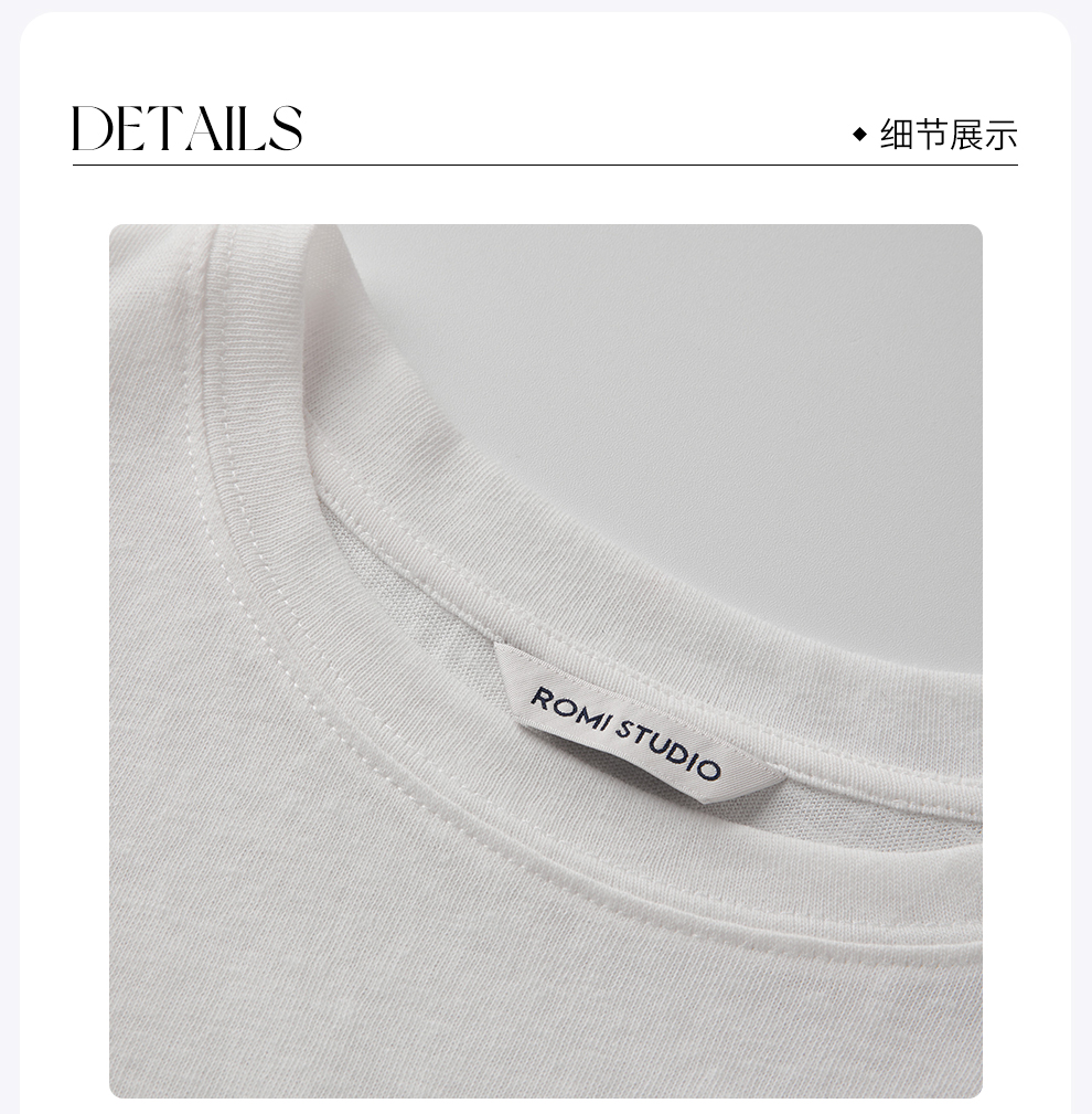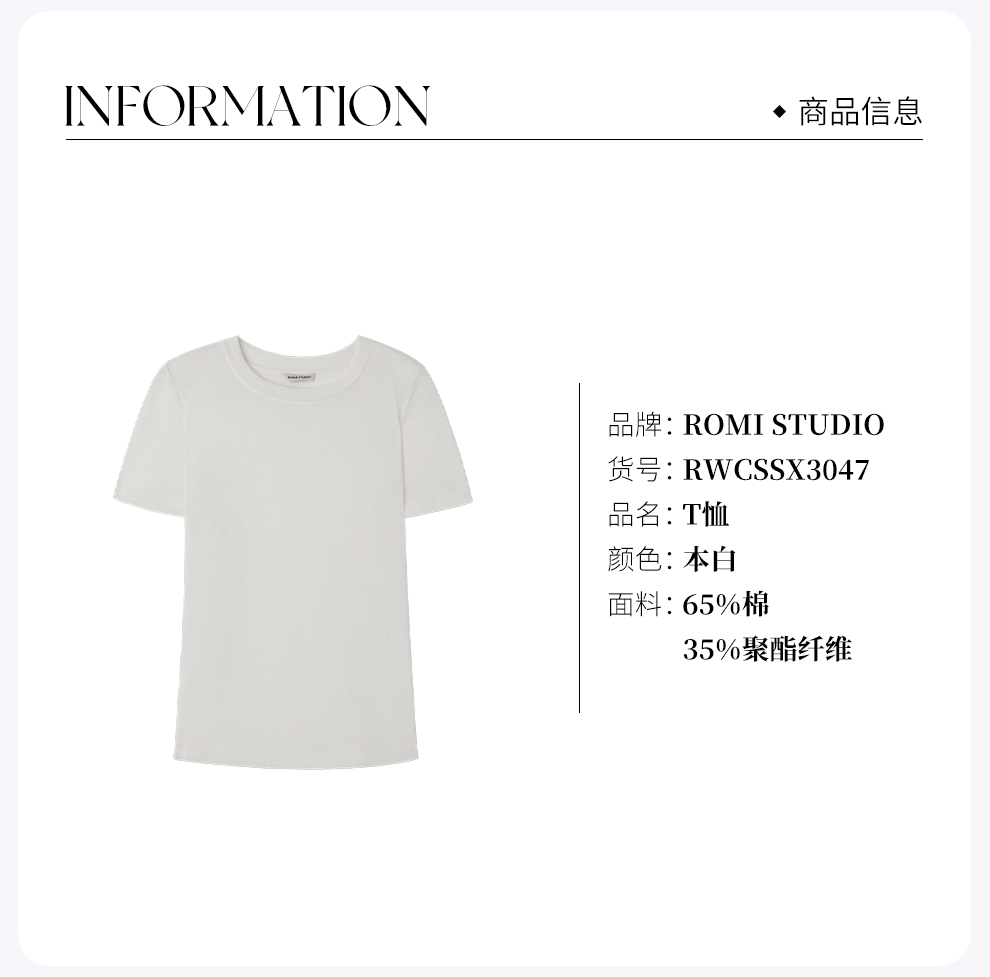 ROMI STUDIO“Clean fit”棉质麻肌理感圆领宽松短袖T恤 RWCSSX3047