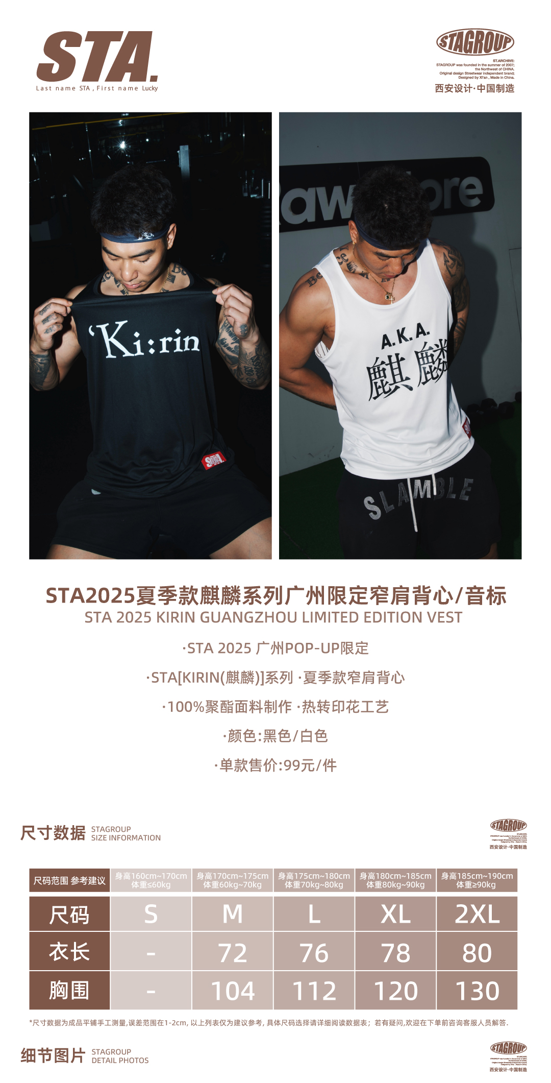 STA2025夏季款麒麟系列广州限定窄肩背心/音标