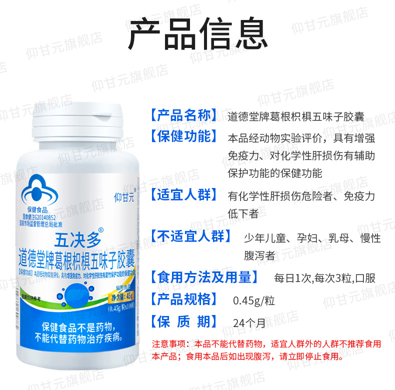 仰甘元 平和胶囊 4瓶装 仰甘元 五味子枳椇子枸杞子葛根