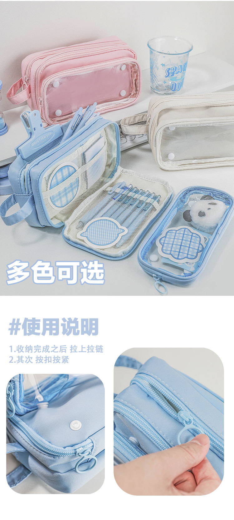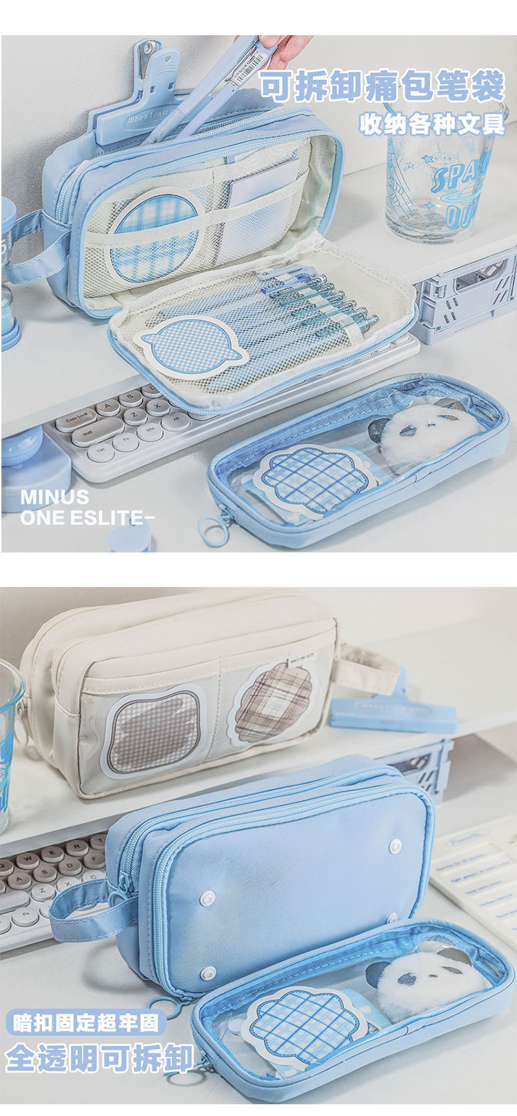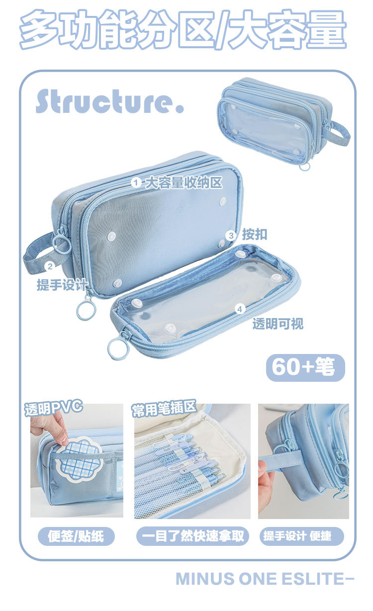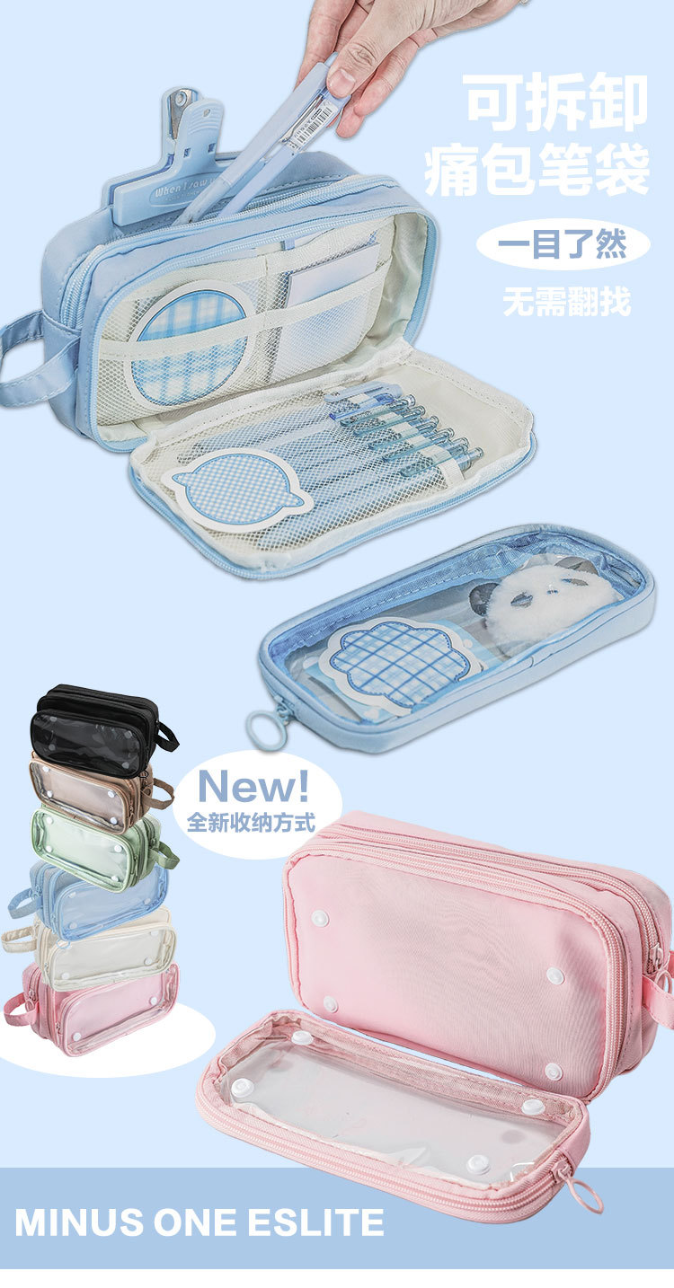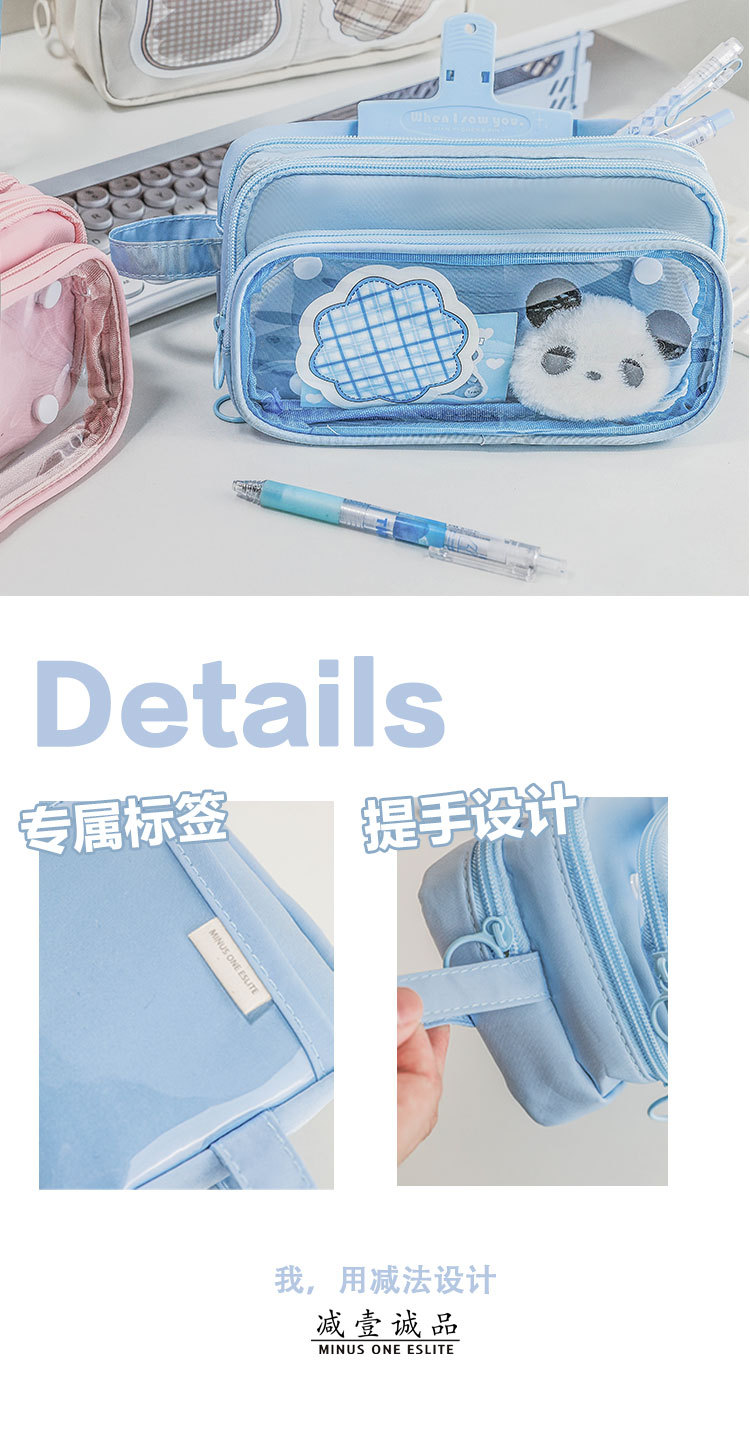 【多功能分区大容量笔袋】痛包笔袋ins高颜值透明韩国女文具盒简约小学生高级感文具。ry