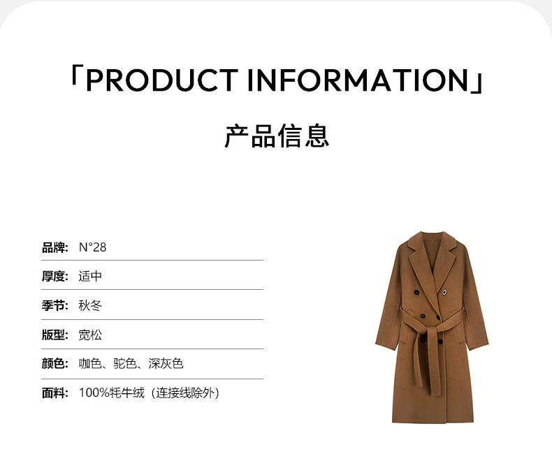 【主推】N°28 “100%牦牛绒801”女装舒适百搭毛呢大衣8352D828