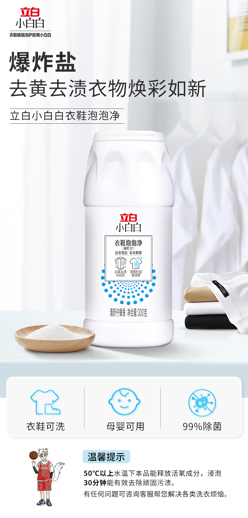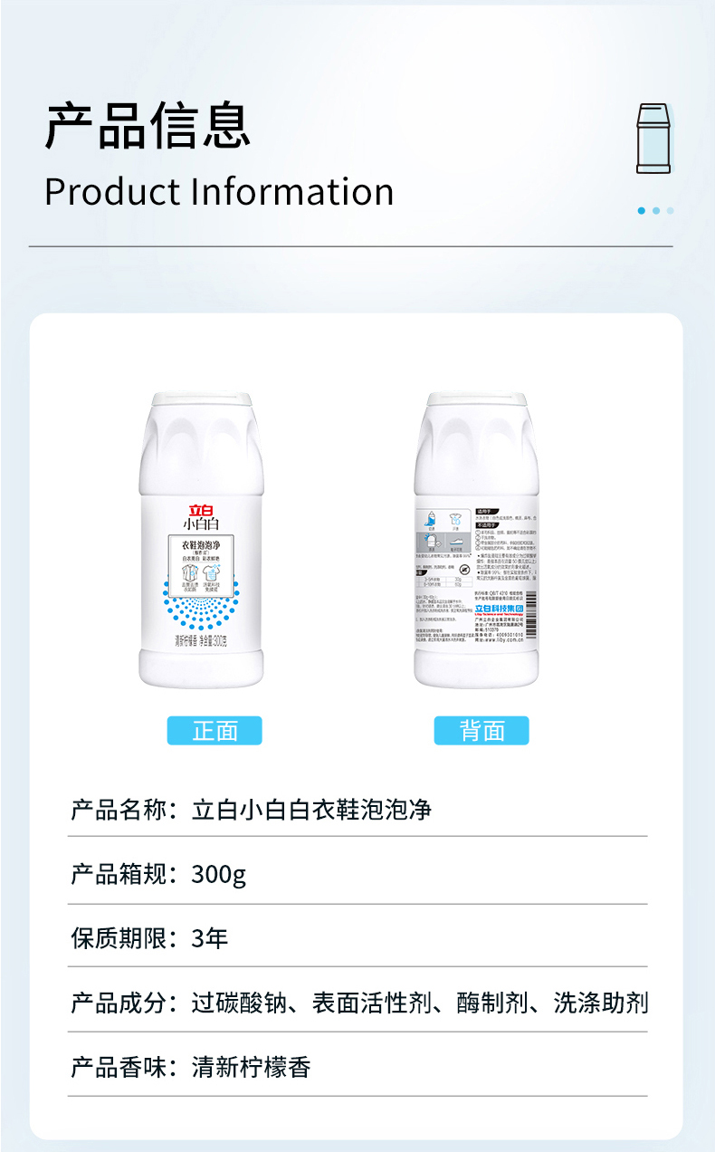 【两瓶装】立白小白白爆炸盐300g/瓶 白衣亮白 彩衣鲜艳
