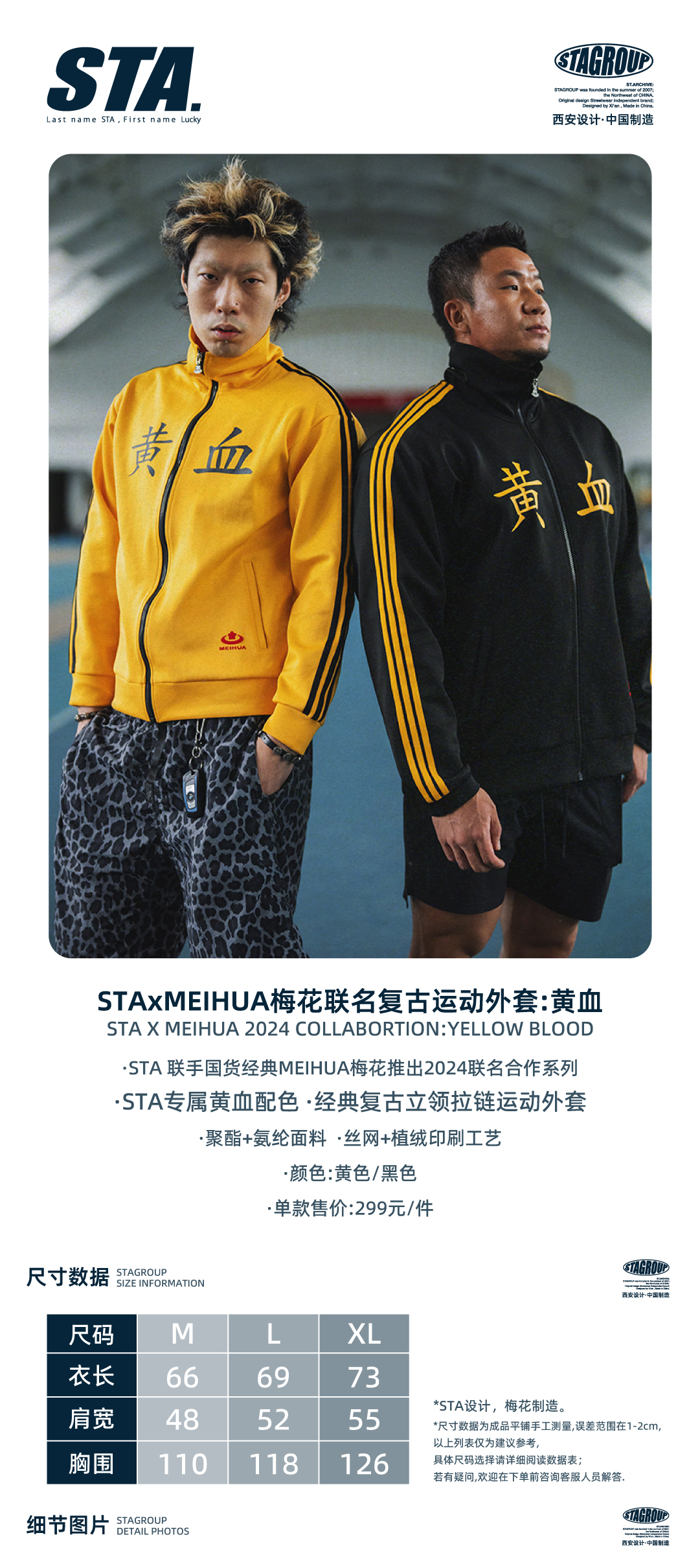 STAxMEIHUA梅花联名复古运动外套:黄血