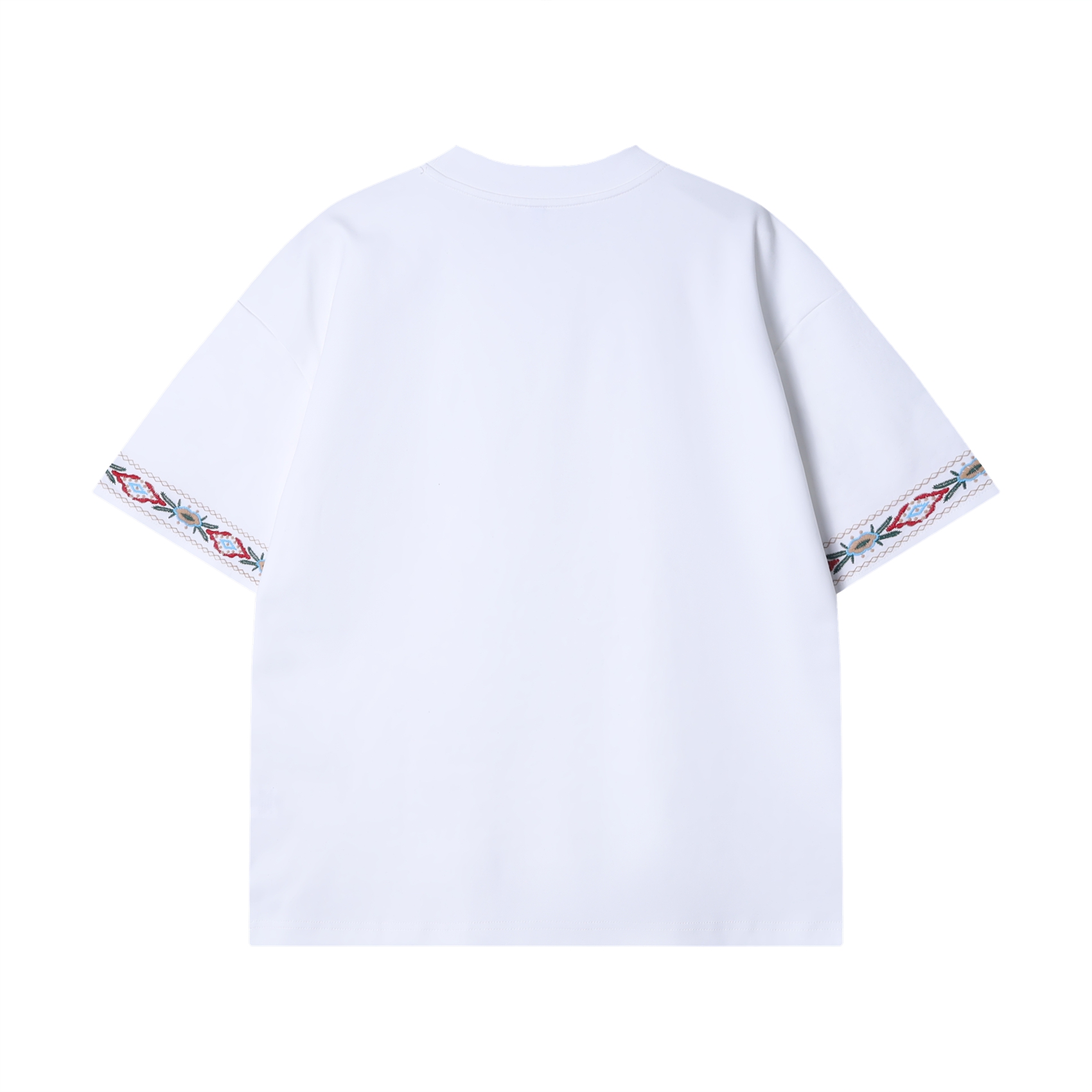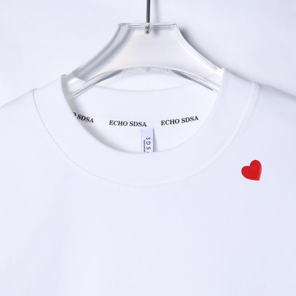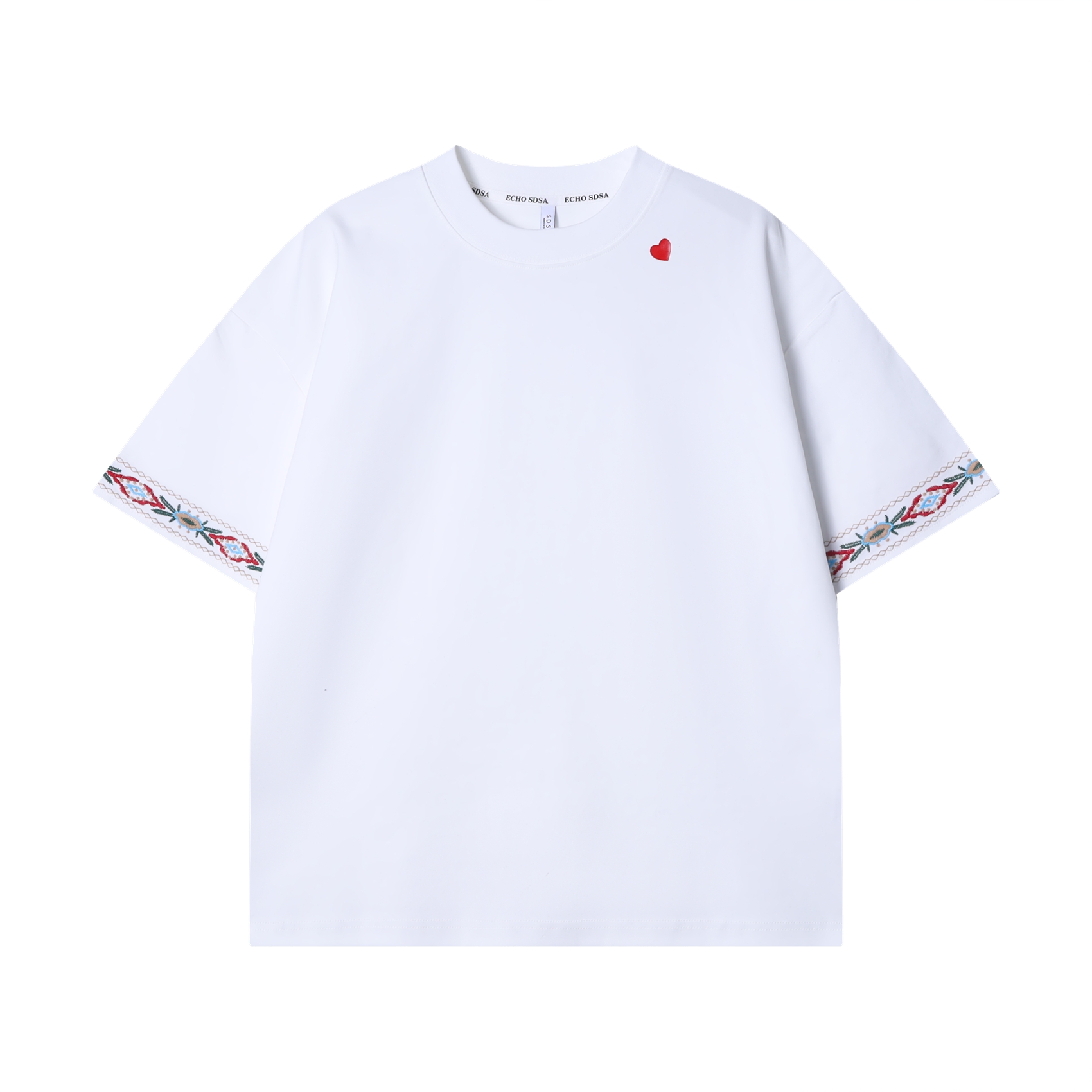 6690早春新款时尚个性重工刺绣袖边爱心印花圆领短袖T恤百搭休闲上衣