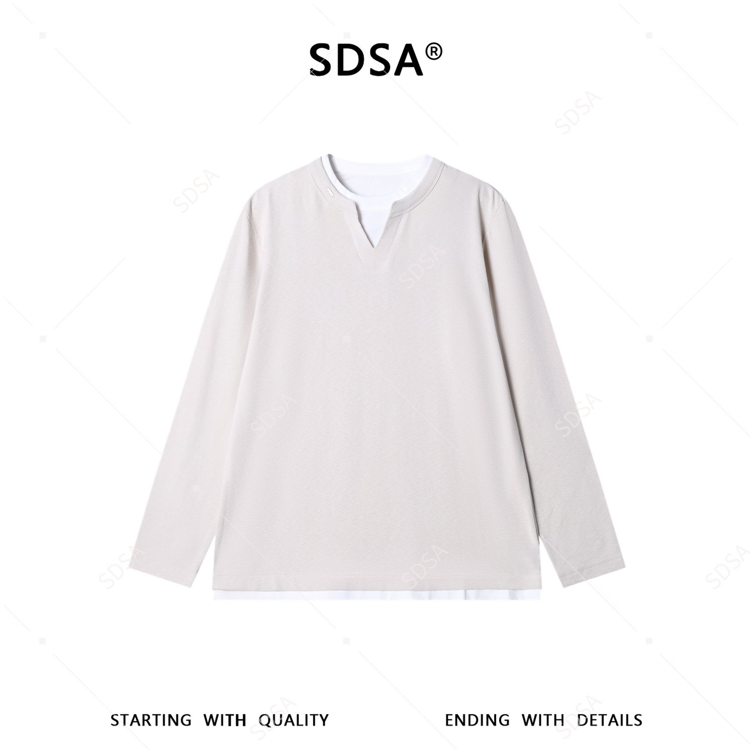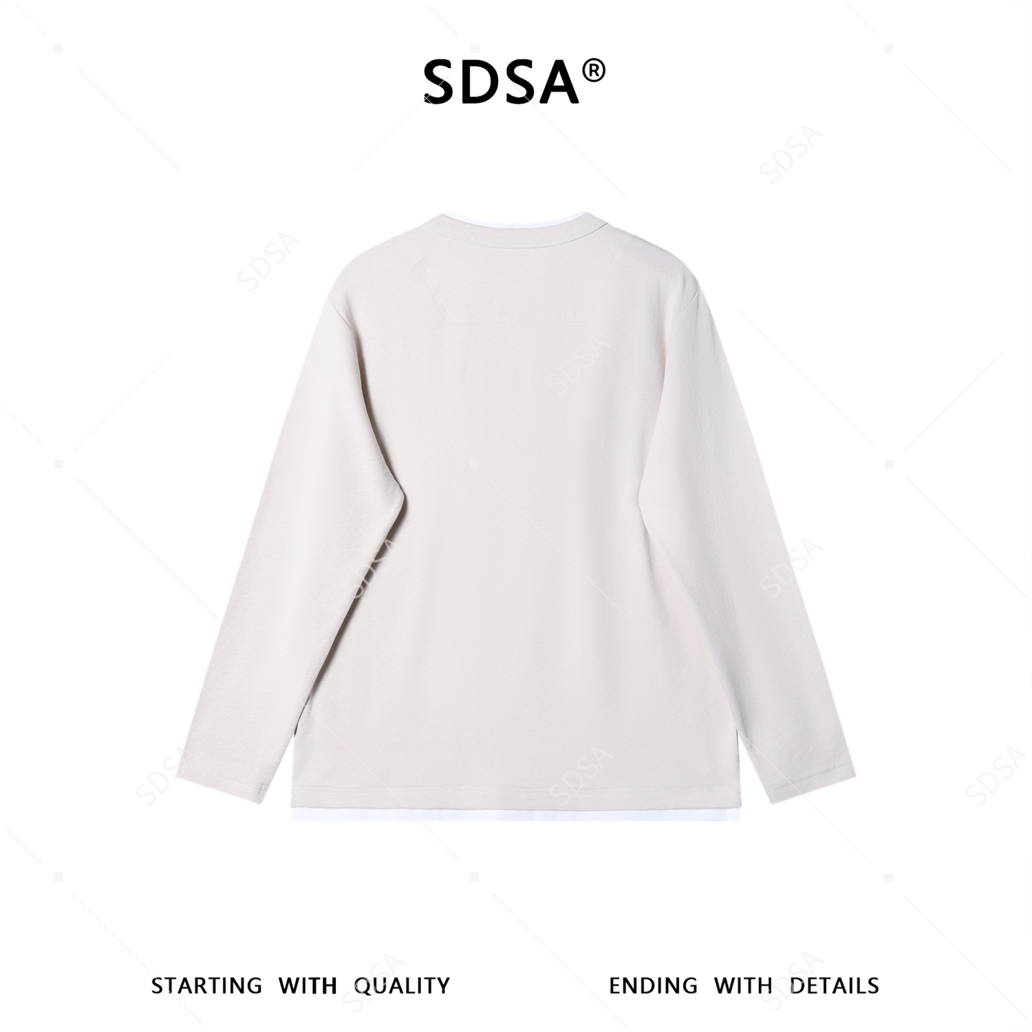 SDSA男装2026新款高贵轻奢潮牌时尚撞色假两件圆领长袖T恤百搭潮