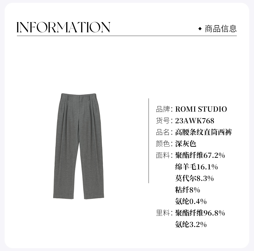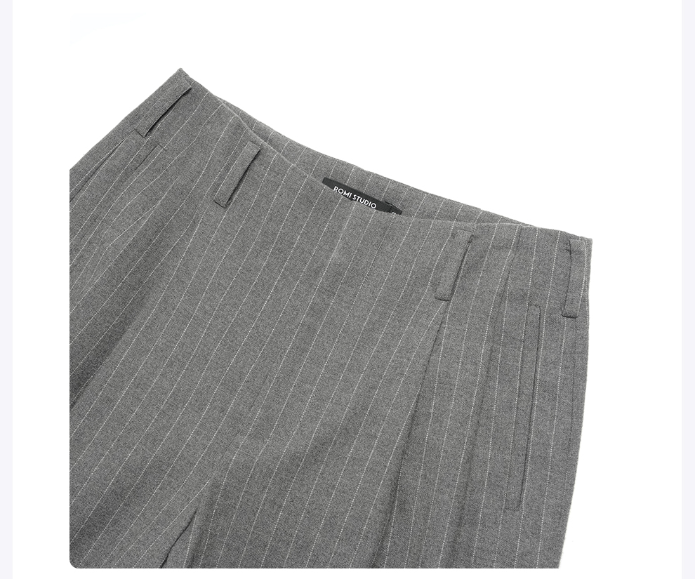 ROMI STUDIO“格雷系列” 休闲精纺羊毛高腰条纹直筒西裤 23AWK768