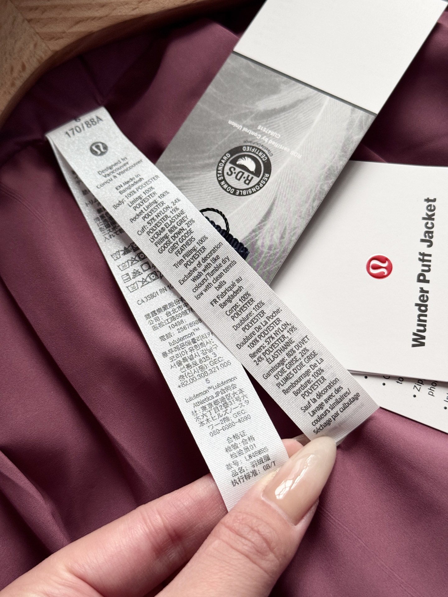 Lulu Wunder Puff 五格泡芙面包羽绒服 80%鹅绒➕20%羽毛,600+蓬松度 平均充绒量300-350克 这是冬天不买任何羽绒服,都必须入手的一件!作为Lulu乃至时尚界最具人气的一款五格羽绒服,它的火爆,完全实至名归⚠️Control Union 的责任羽绒标准 (RDS) 认证的80鹅绒,柔软SoftMatte™ 磨砂软壳面料,内里超级适合裸肌穿的奶油丝滑内胆(市面95%以上都是粗糙生硬的普通面料内里)!如泡芙般青春洋溢又洋气的版型,家附近有专柜,直接专柜试穿购买!