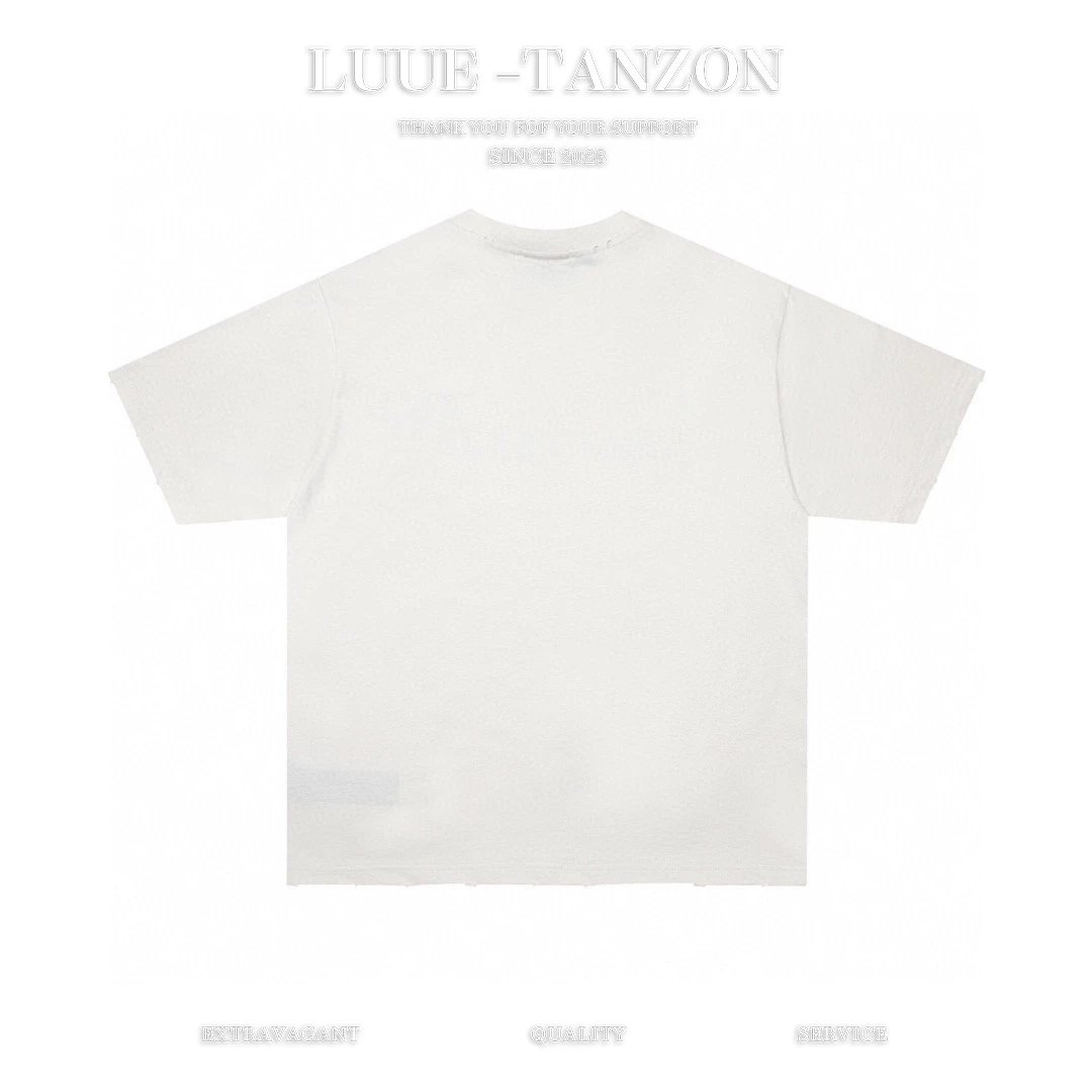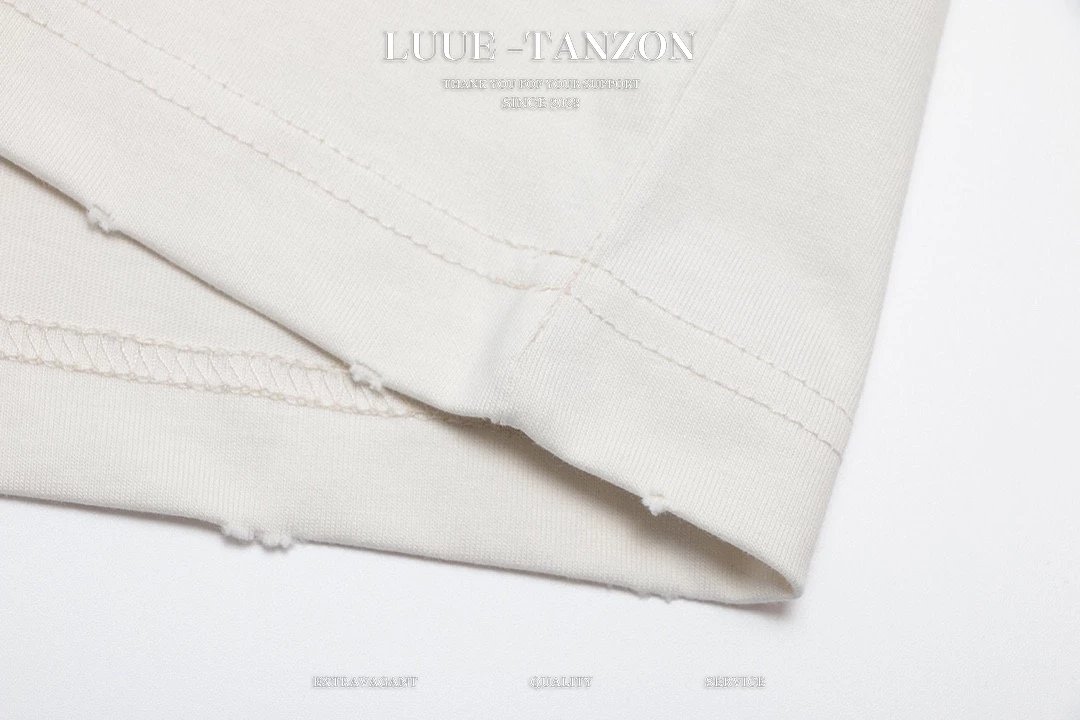前幅巴黎英文字母logo标印花 对版定织定染面料 螺纹同缸定染零色差 色度还原YB高达99.5% 成品做二次洗水磨破工艺 领口/袖口/下摆磨烂做旧效果 独家高版本 区别市场通货版本 欢迎对比 男女同款