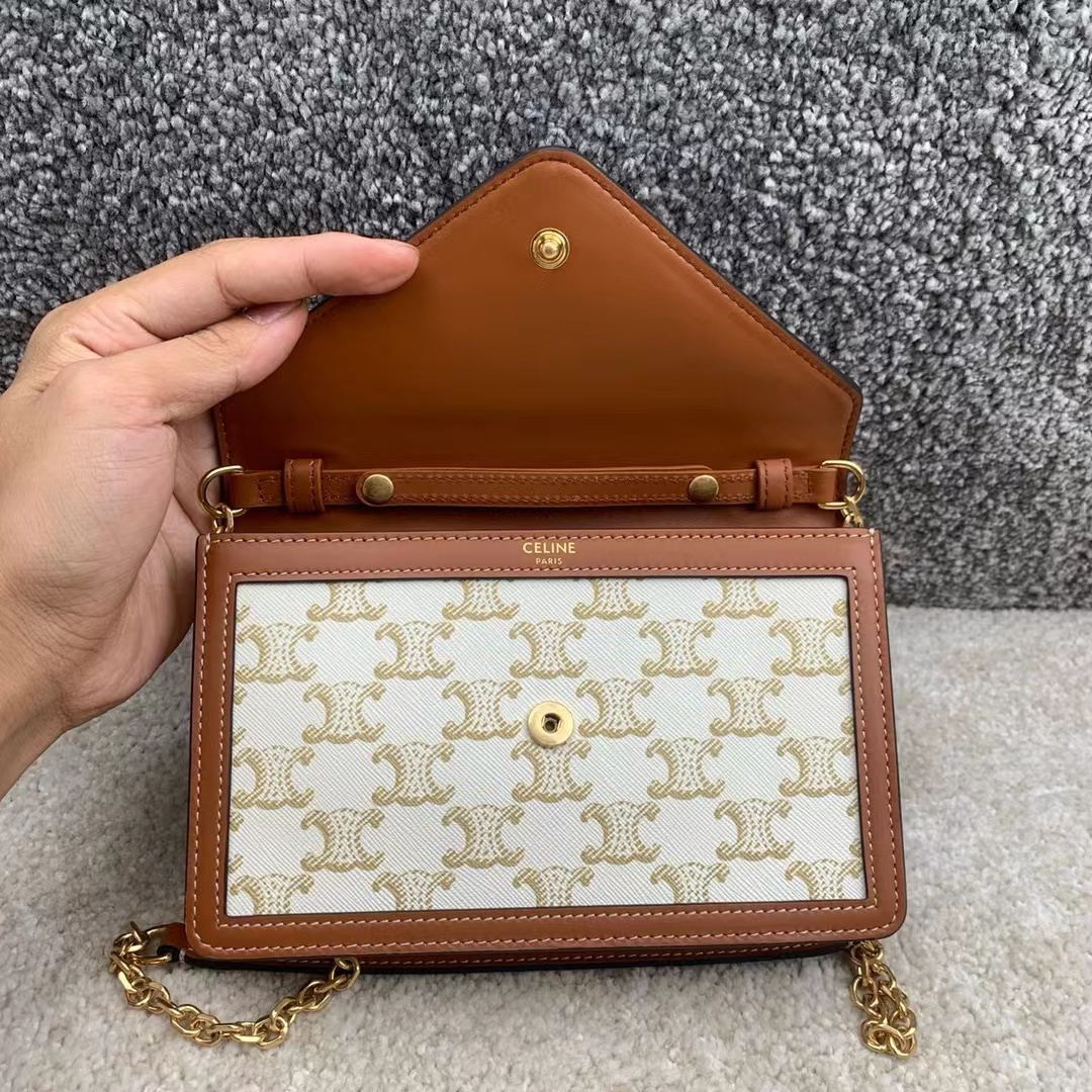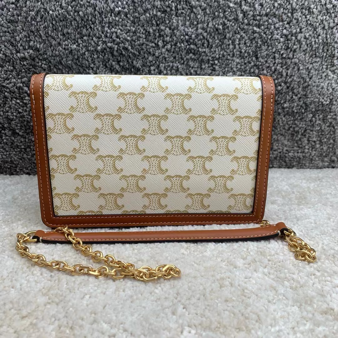 maillon triome标志印花羊皮革链条钱包