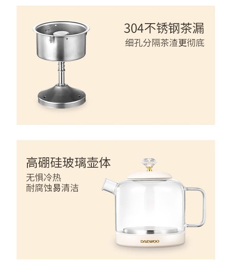 大宇(DAEWOO)煮茶壶家用多功能全自动炖煮烧水壶办公室小型养生壶DY-ZC03