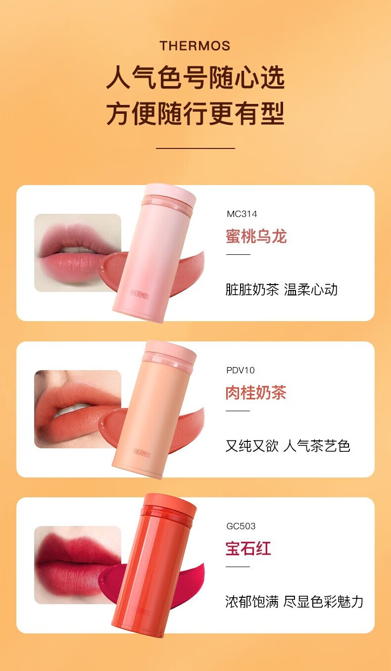 膳魔师(THERMOS)膳魔师新口红杯小光环系列保温杯便携小容量附杯包TCNO-250礼盒 肉桂奶茶
