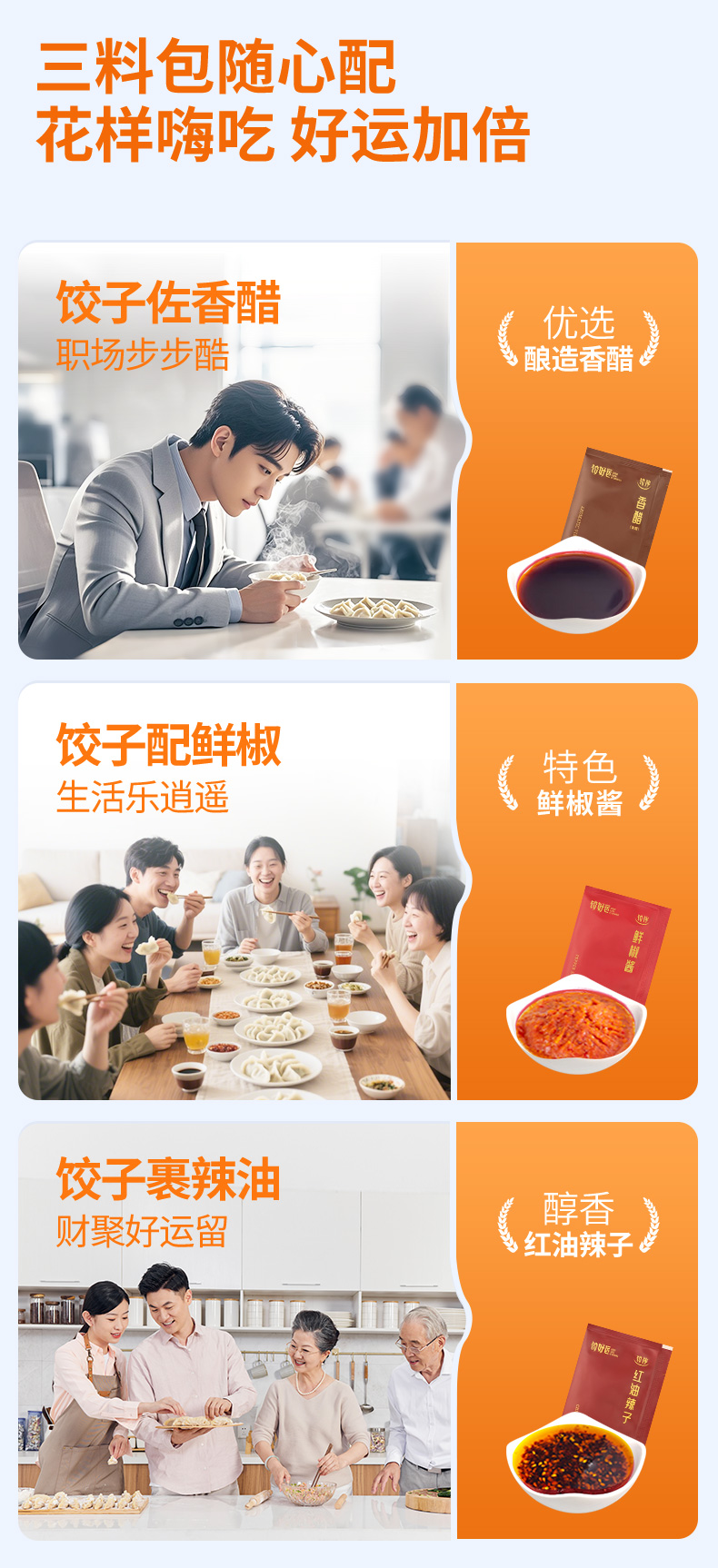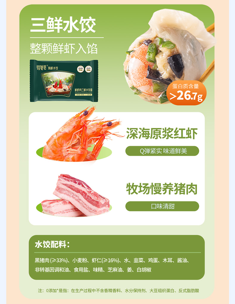 饺好运珍味鲜虾海胆海参小龙虾鲅鱼三鲜水饺 珍品海鲜饺 优质蛋白高 一口饺子满口馅(饺子300g/袋 料包80g/袋))