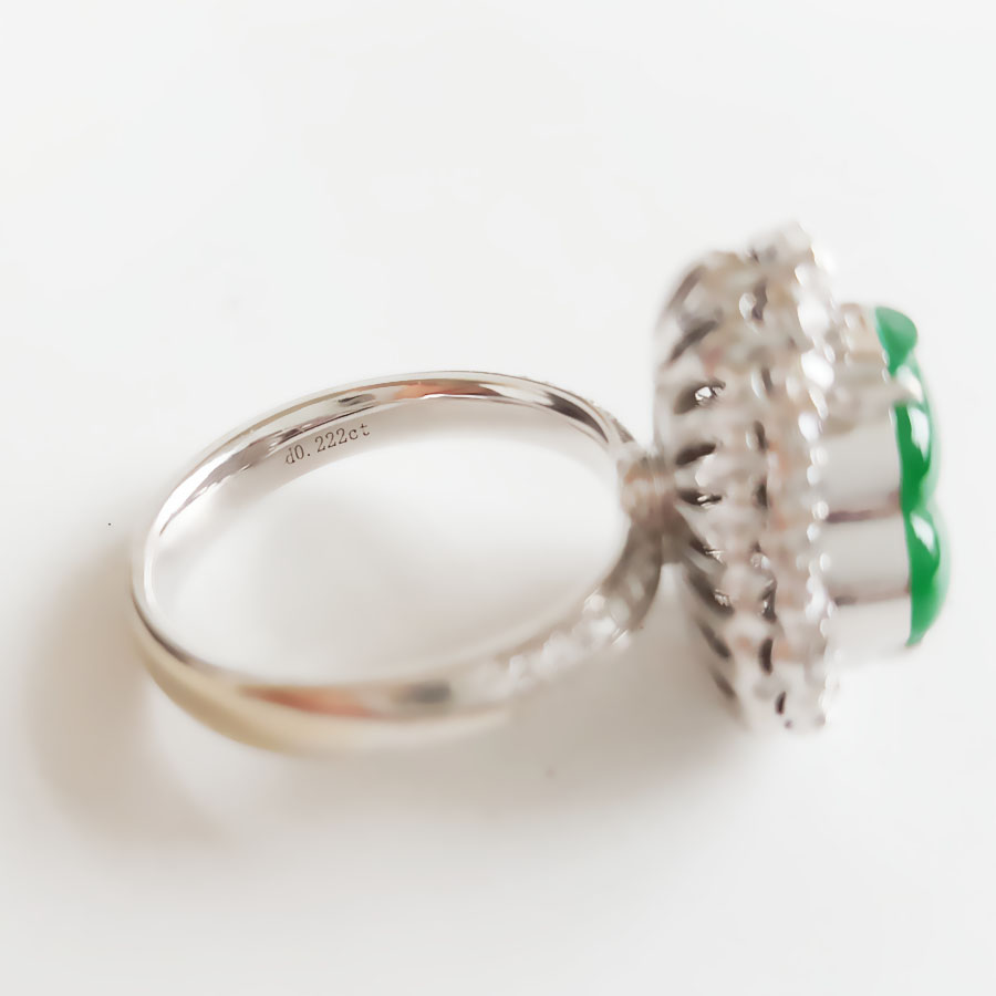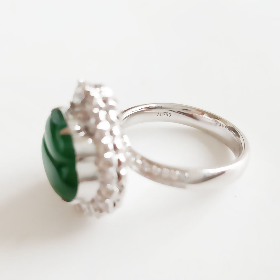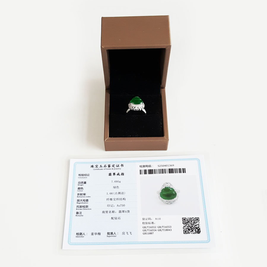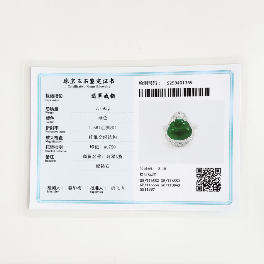 名称 | AU750收藏级白金豪镶钻镶天然细腻冰种满绿葫芦翡翠戒指 |