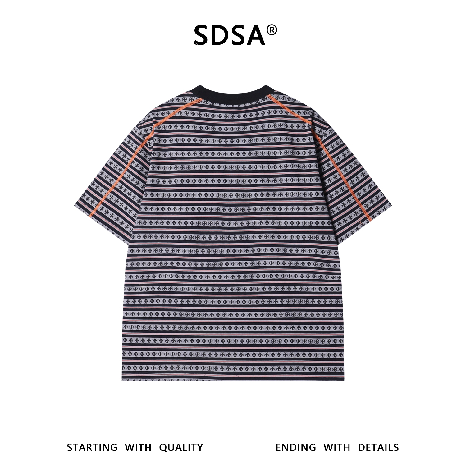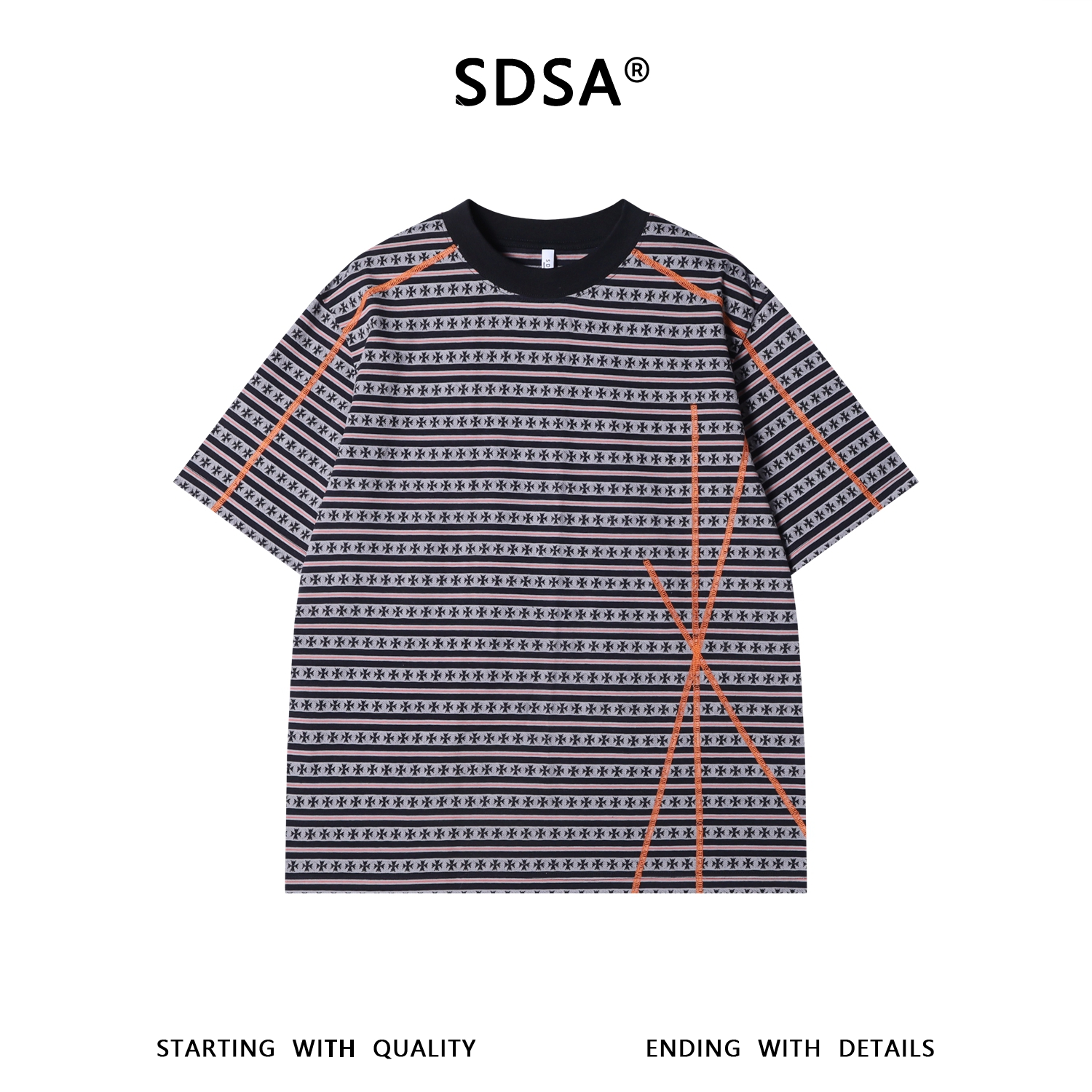 SDSA男装2026新款高贵轻奢潮牌十字条纹圆领短袖T恤明线设计百搭