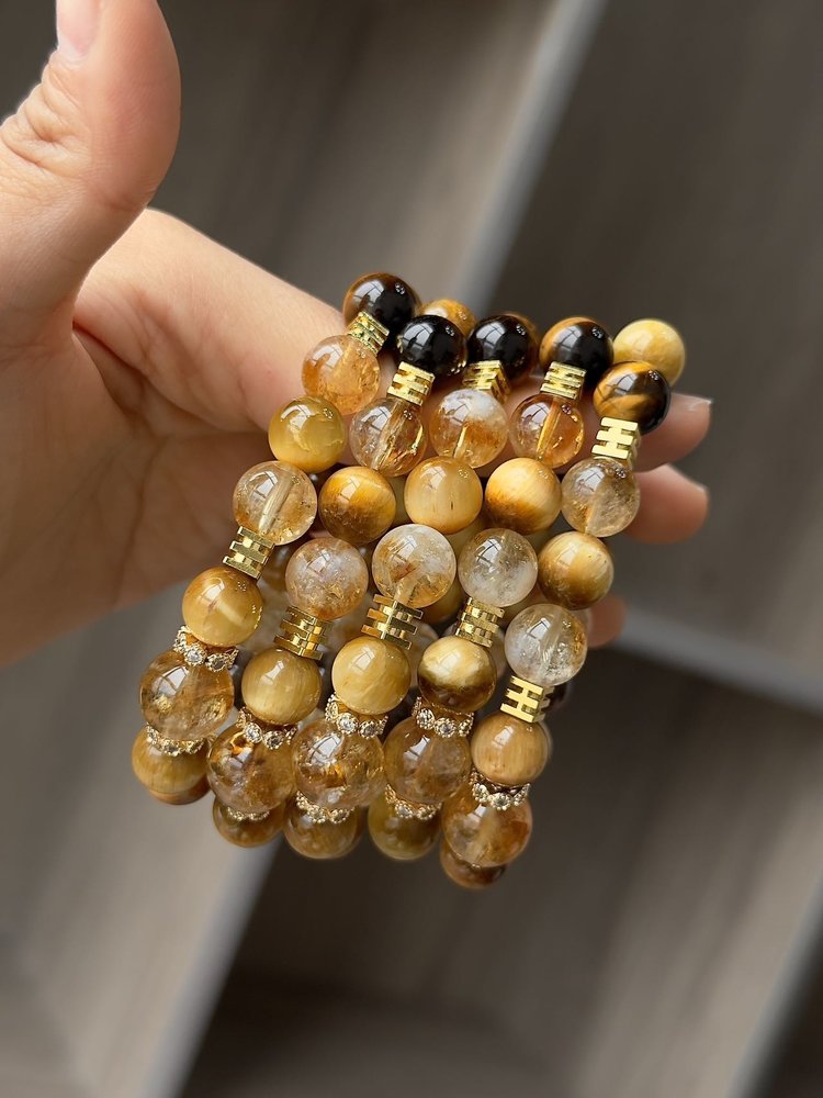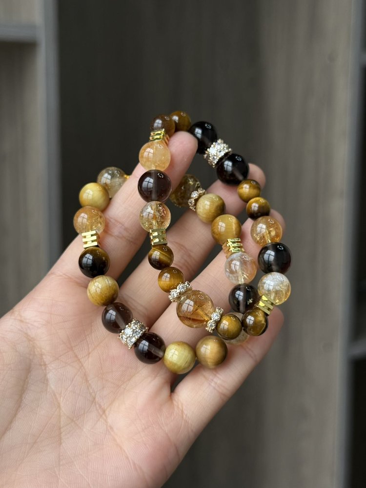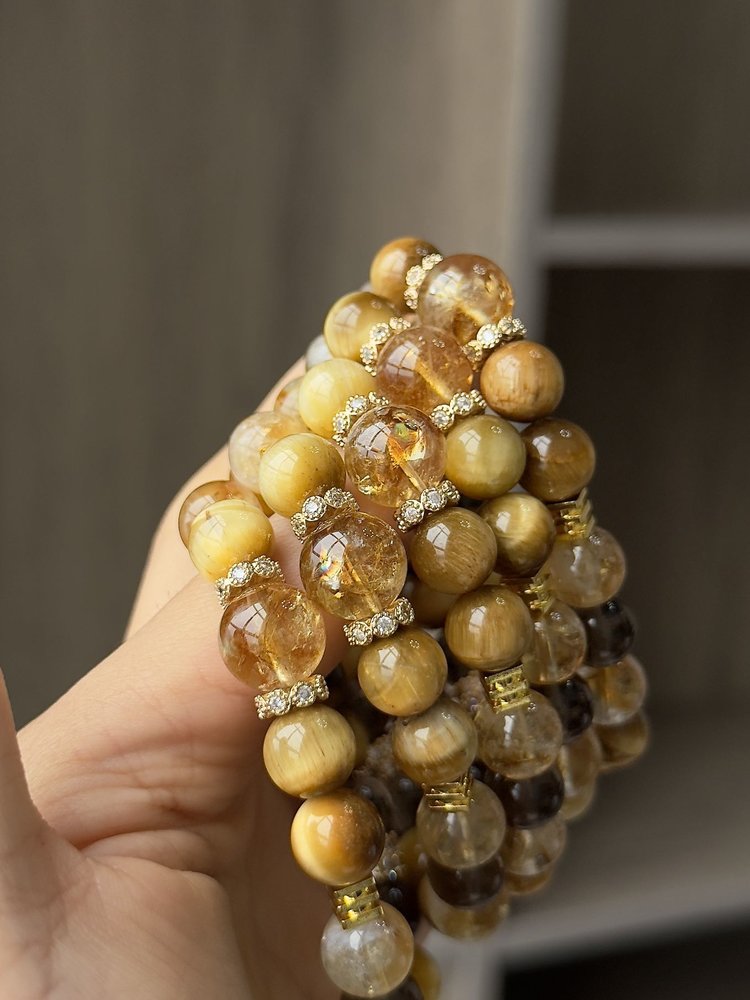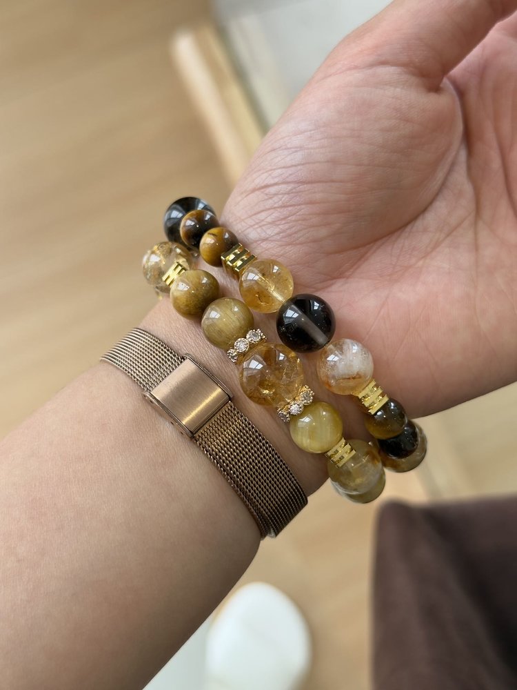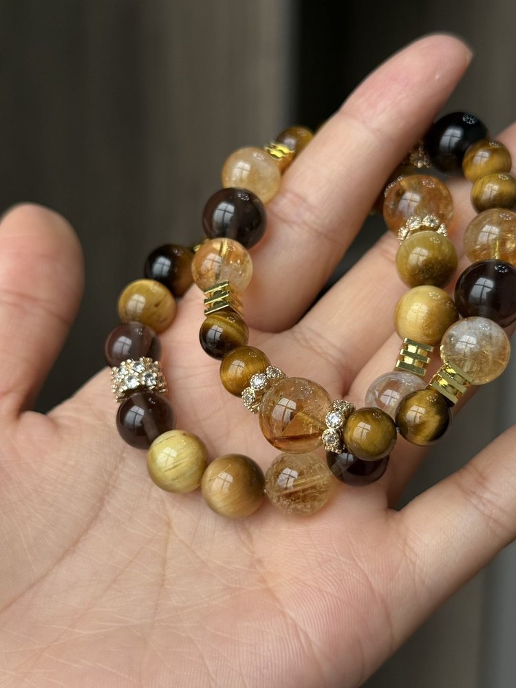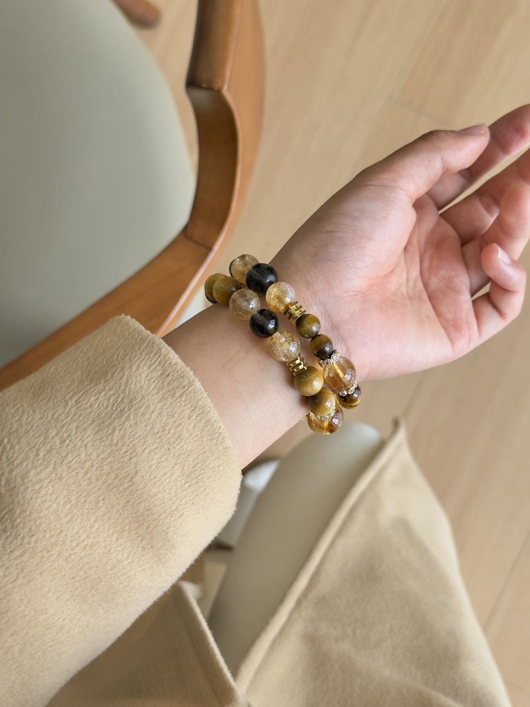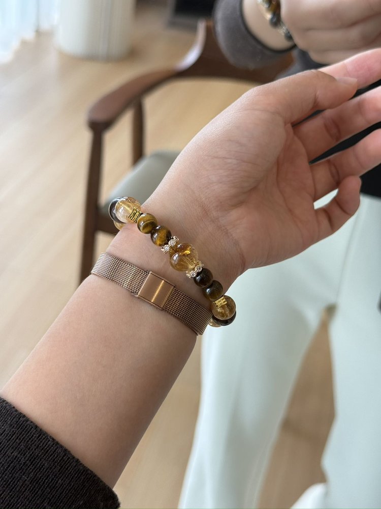 永远喜欢叠戴,金虎眼和黄水晶适配度超高,两个都是招财一把好手,成年人不做选择,都要
