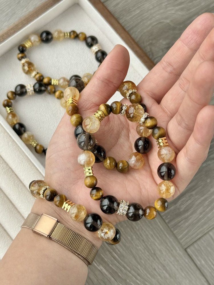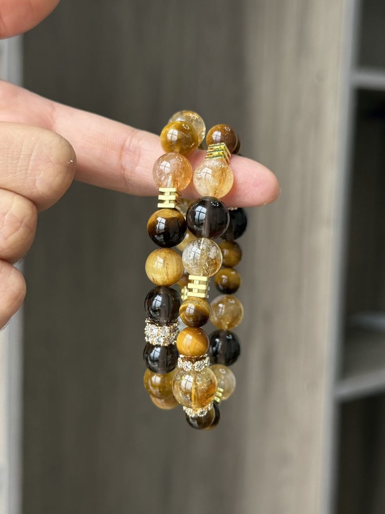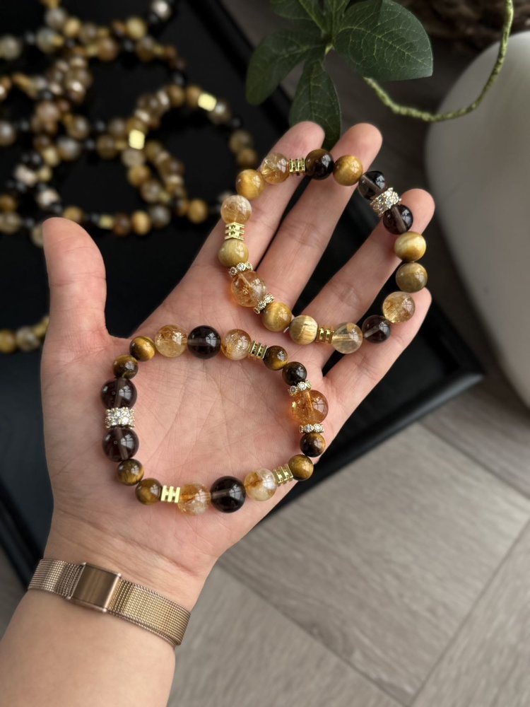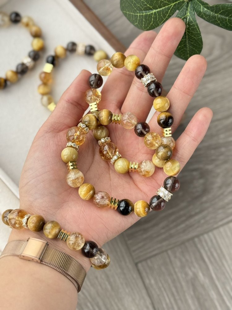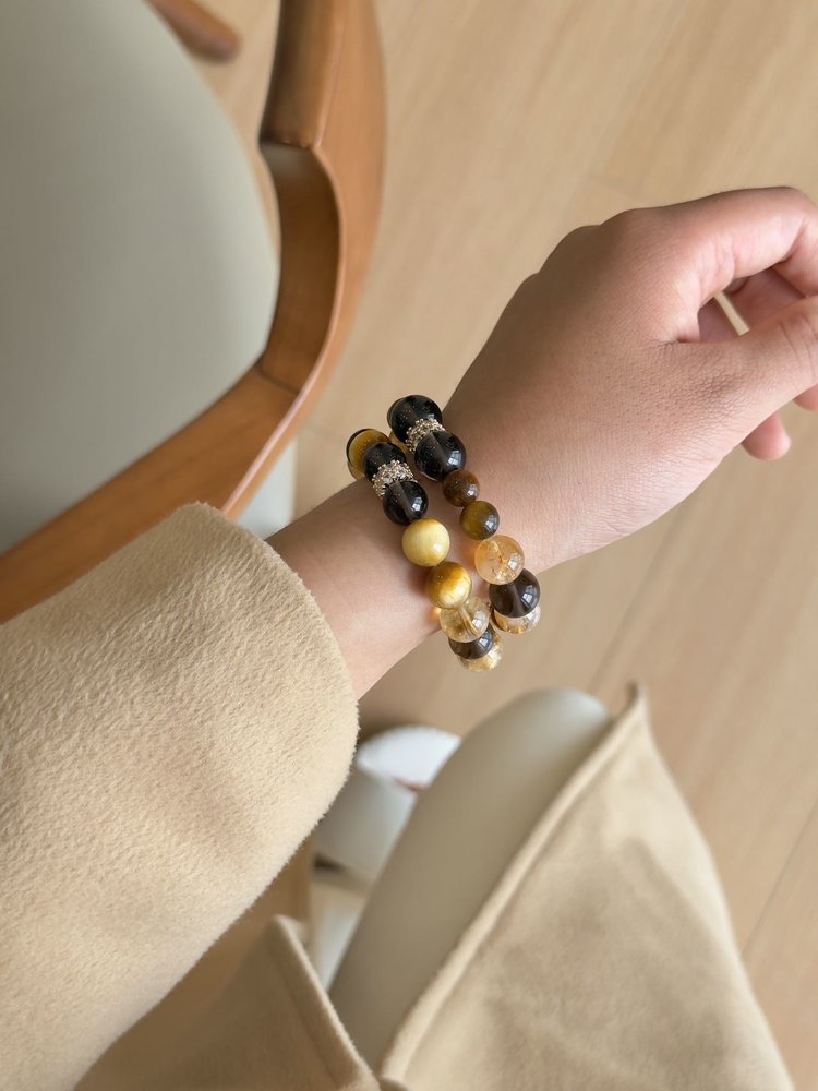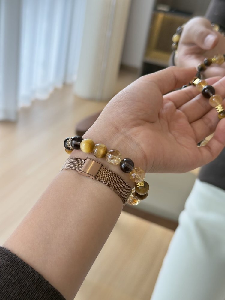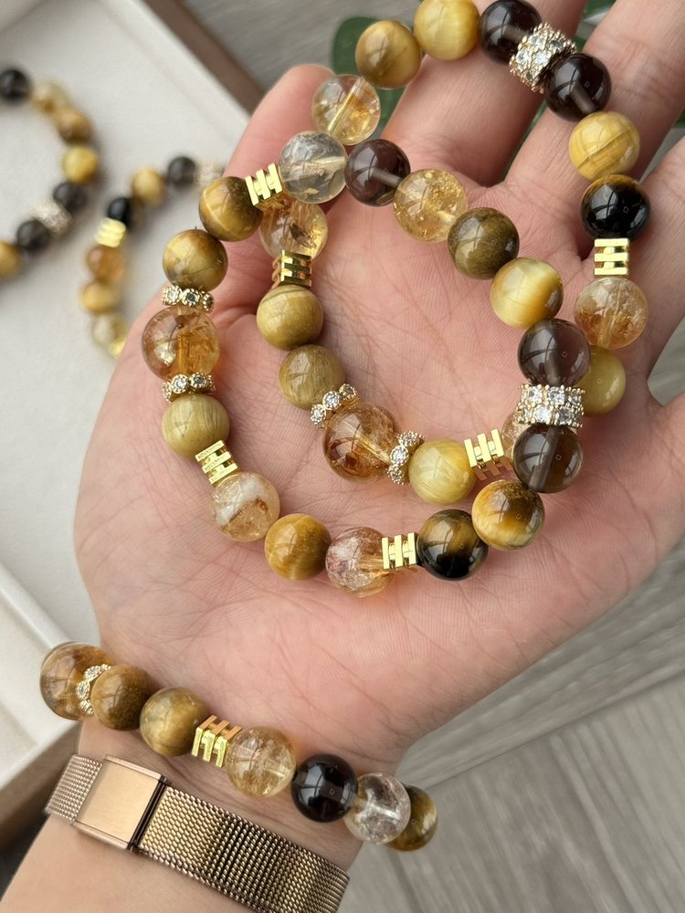 永远喜欢叠戴,金虎眼和黄水晶适配度超高,两个都是招财一把好手,成年人不做选择,都要