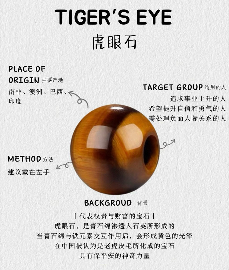 还有虎眼石,它的纹理特别像老虎的眼睛,炯炯有神。虎眼石象征着勇气和自信,对于正在奋斗的年轻人来说,简直是“精神支柱”