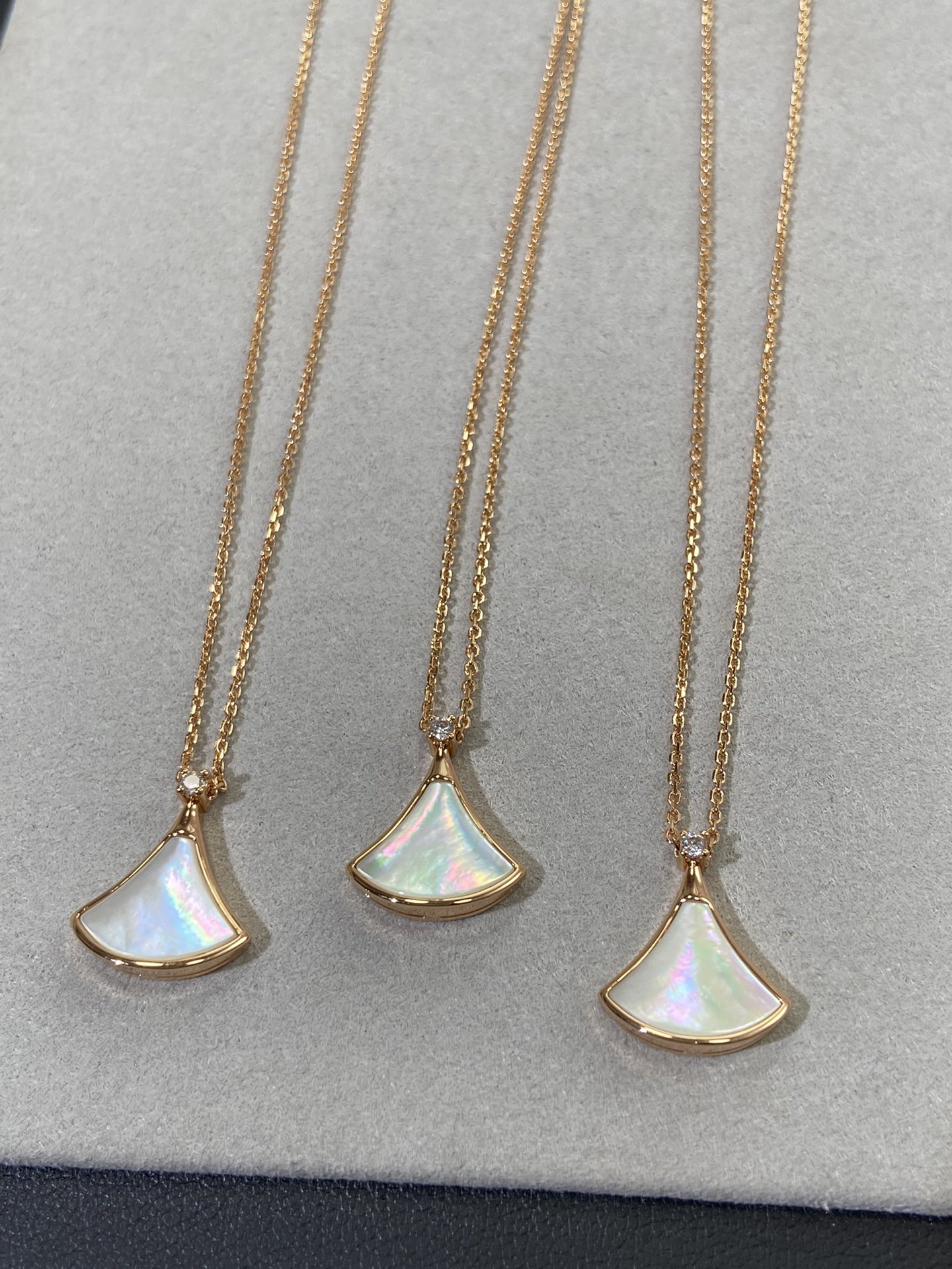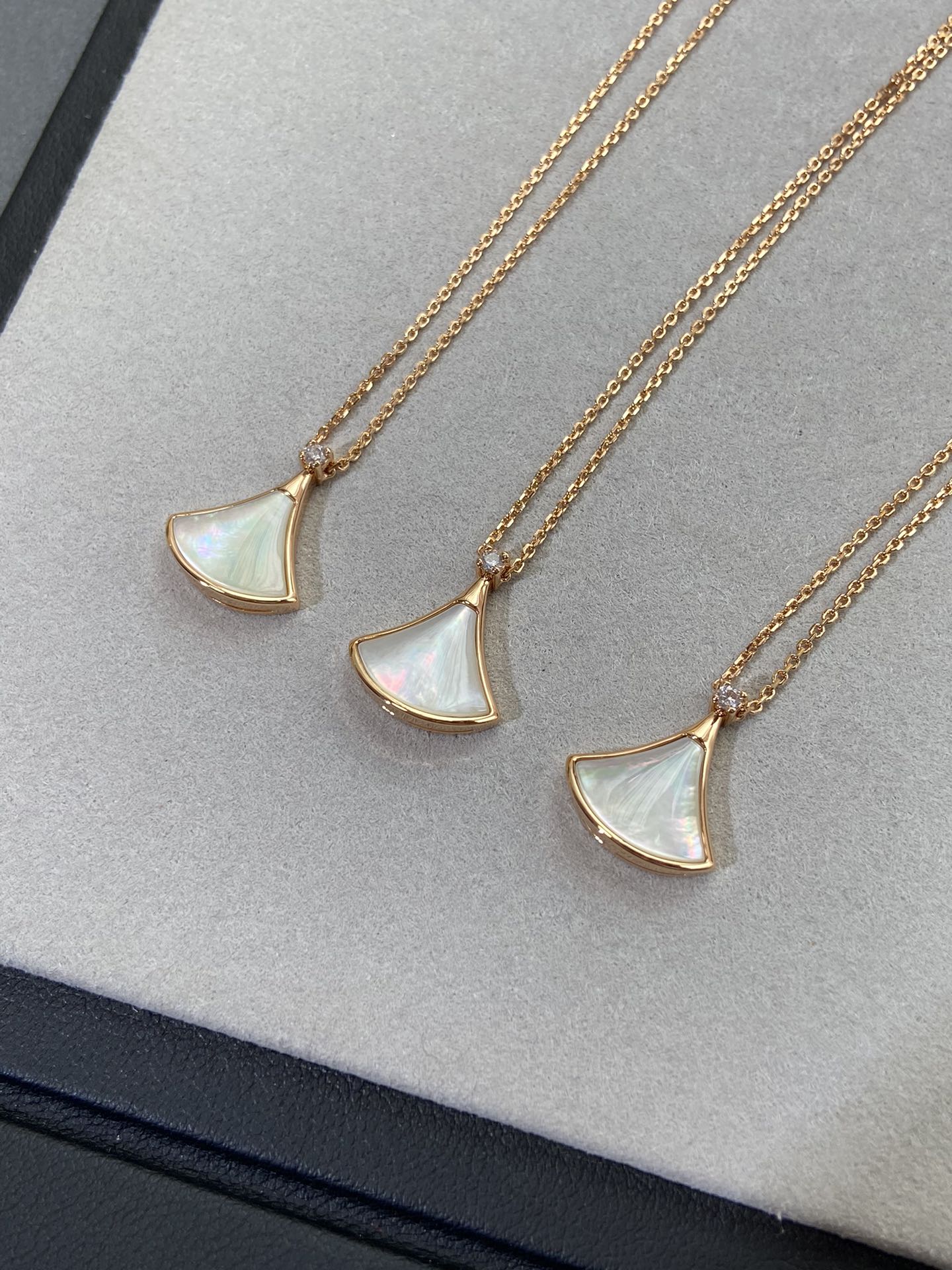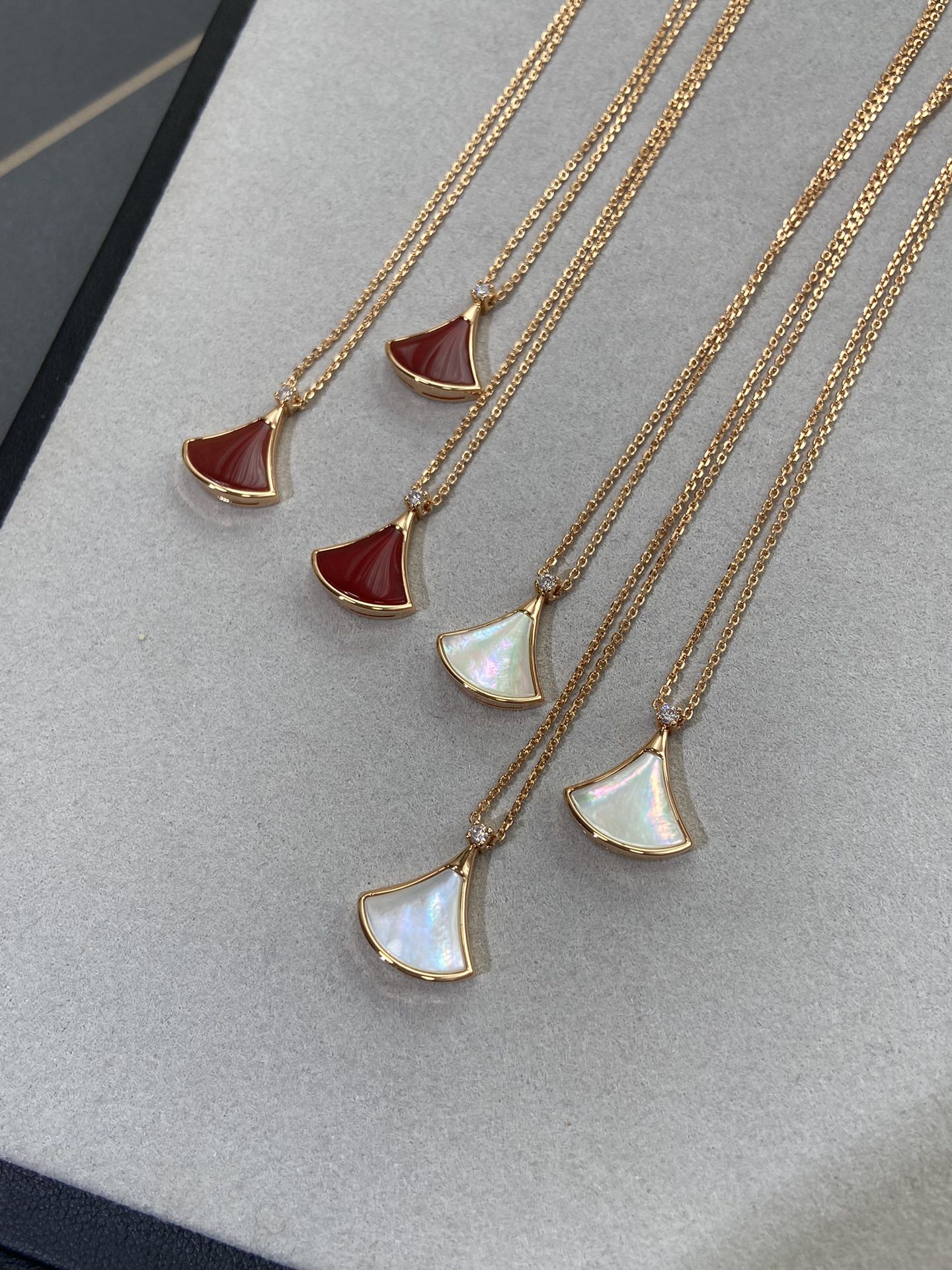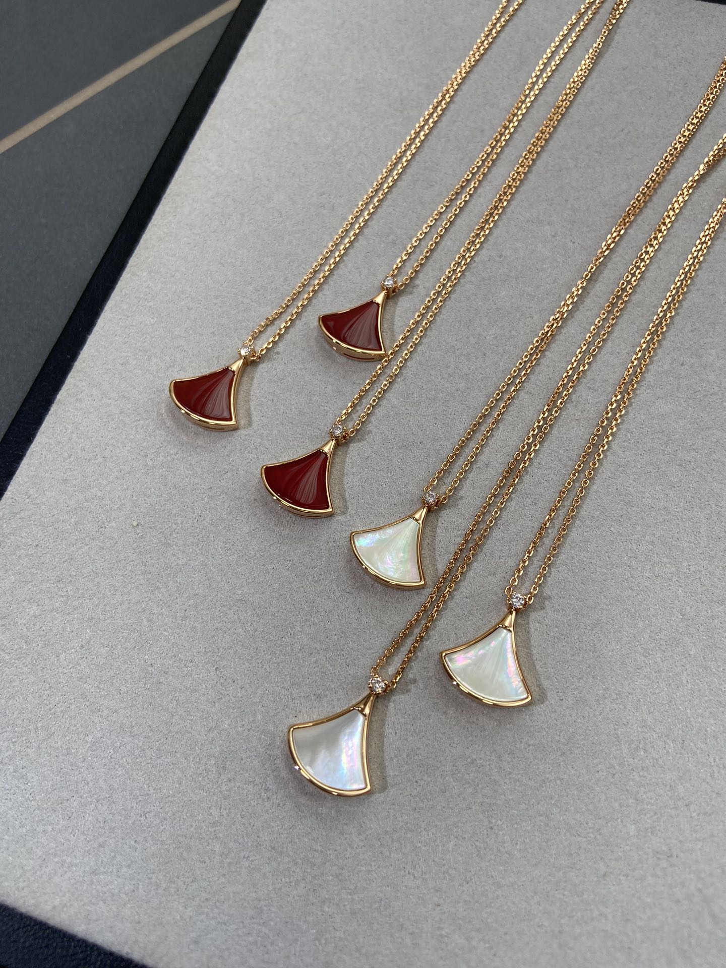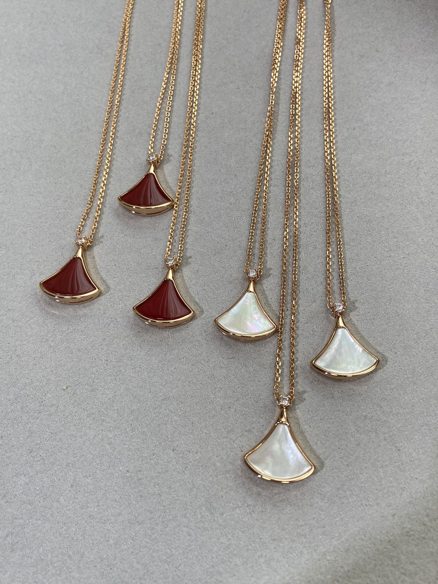 新款裙子项链 现货不多,原*定制,通体V金材质配天然玉髓深海蝶贝!绝对是你朋友圈最佳品质!!贝母美到极致‼️每个角度都完美贴合金属部分,很有光泽感,我们的玫瑰金也很接近zg色,原版链扣,收到你就会觉得有多赞!链子抛光后超柔和质感类似真金 新款小扇子项链 白色 红色