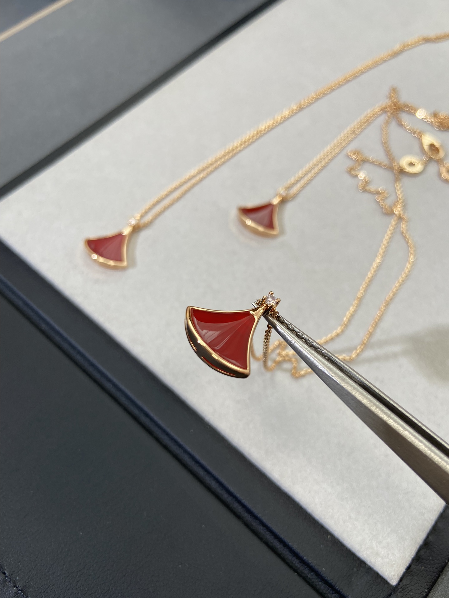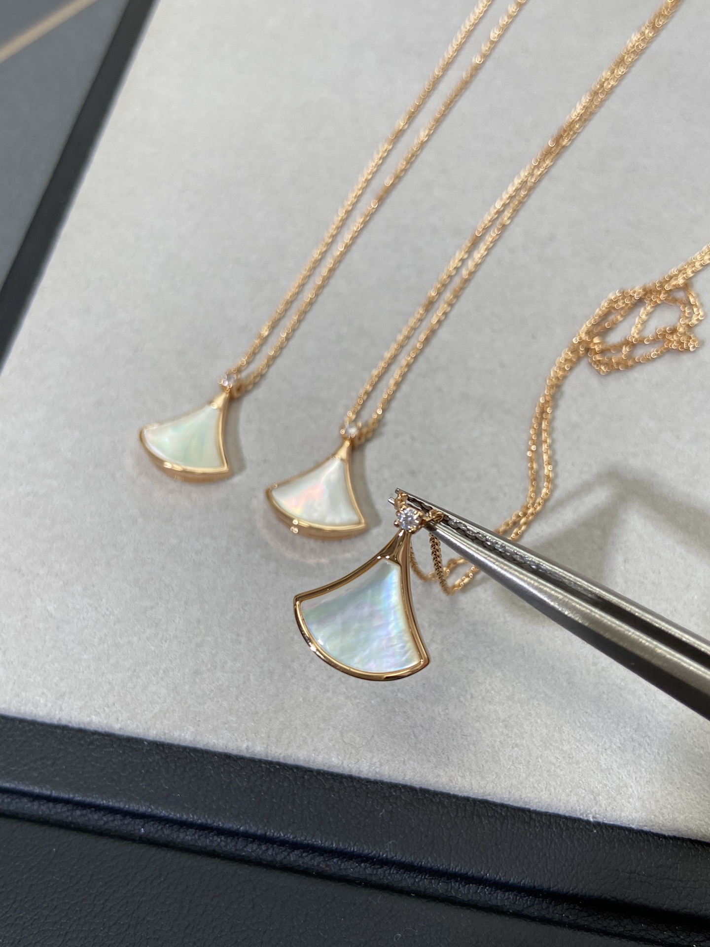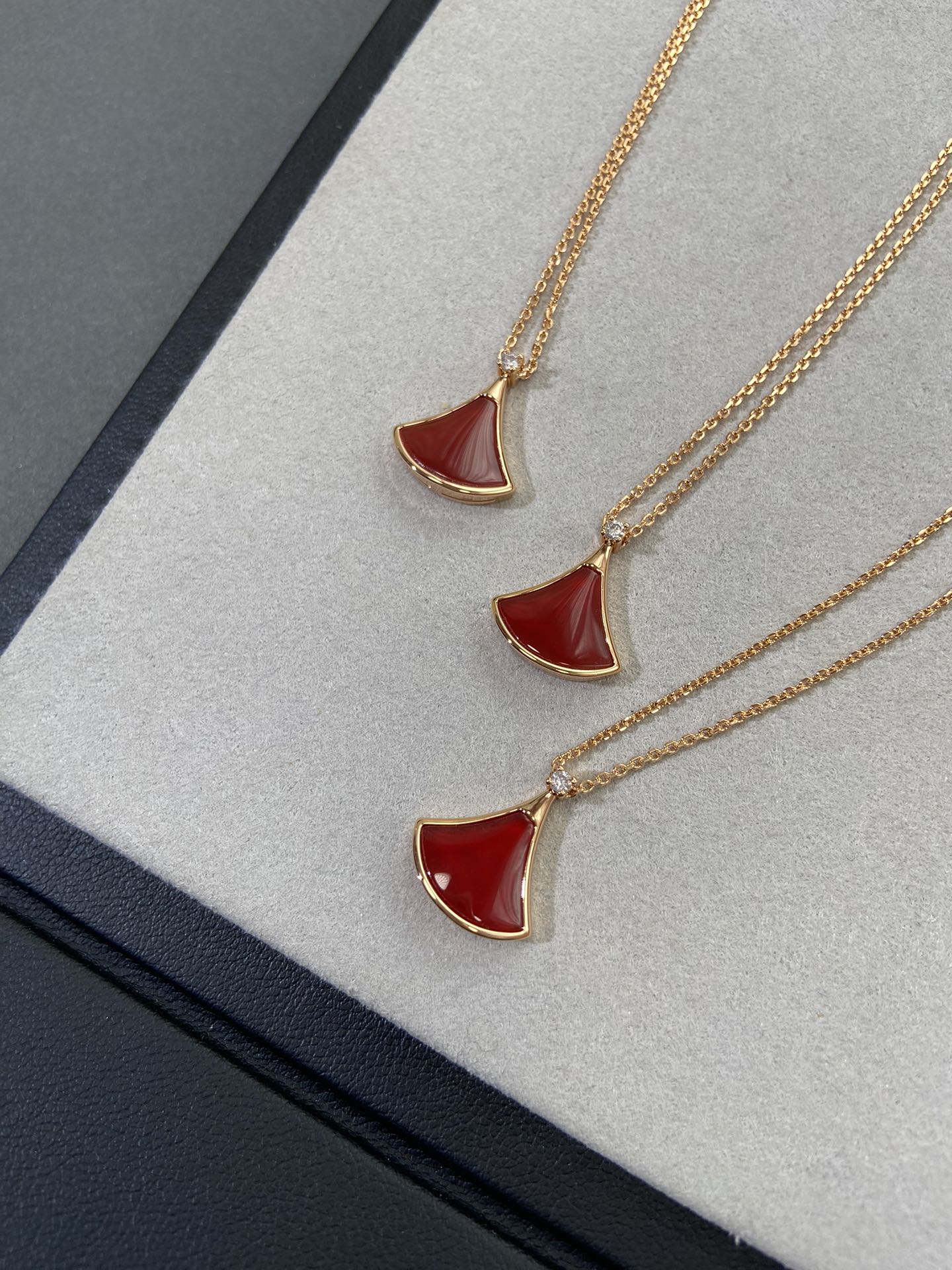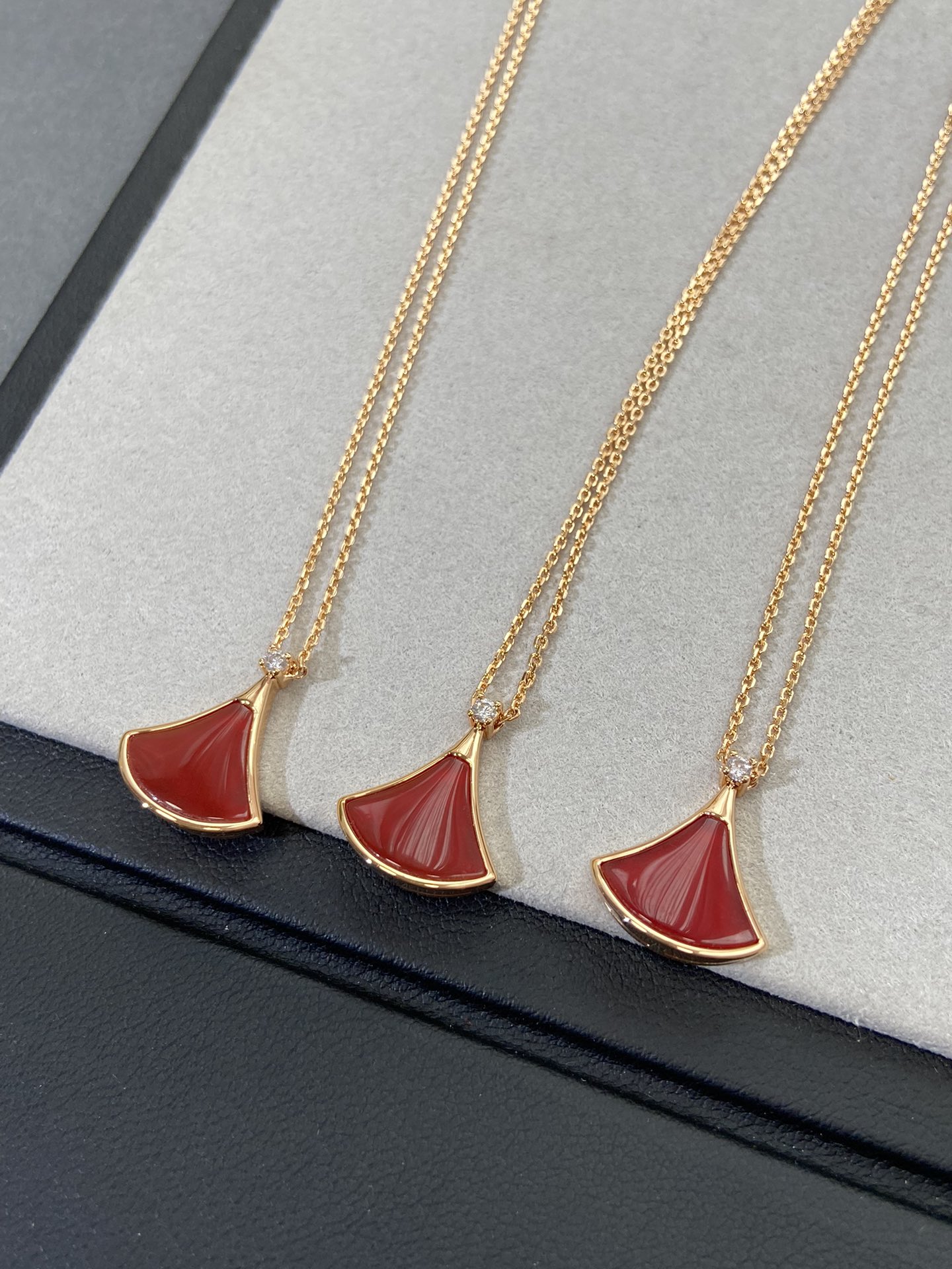 新款裙子项链 现货不多,原*定制,通体V金材质配天然玉髓深海蝶贝!绝对是你朋友圈最佳品质!!贝母美到极致‼️每个角度都完美贴合金属部分,很有光泽感,我们的玫瑰金也很接近zg色,原版链扣,收到你就会觉得有多赞!链子抛光后超柔和质感类似真金 新款小扇子项链 白色 红色