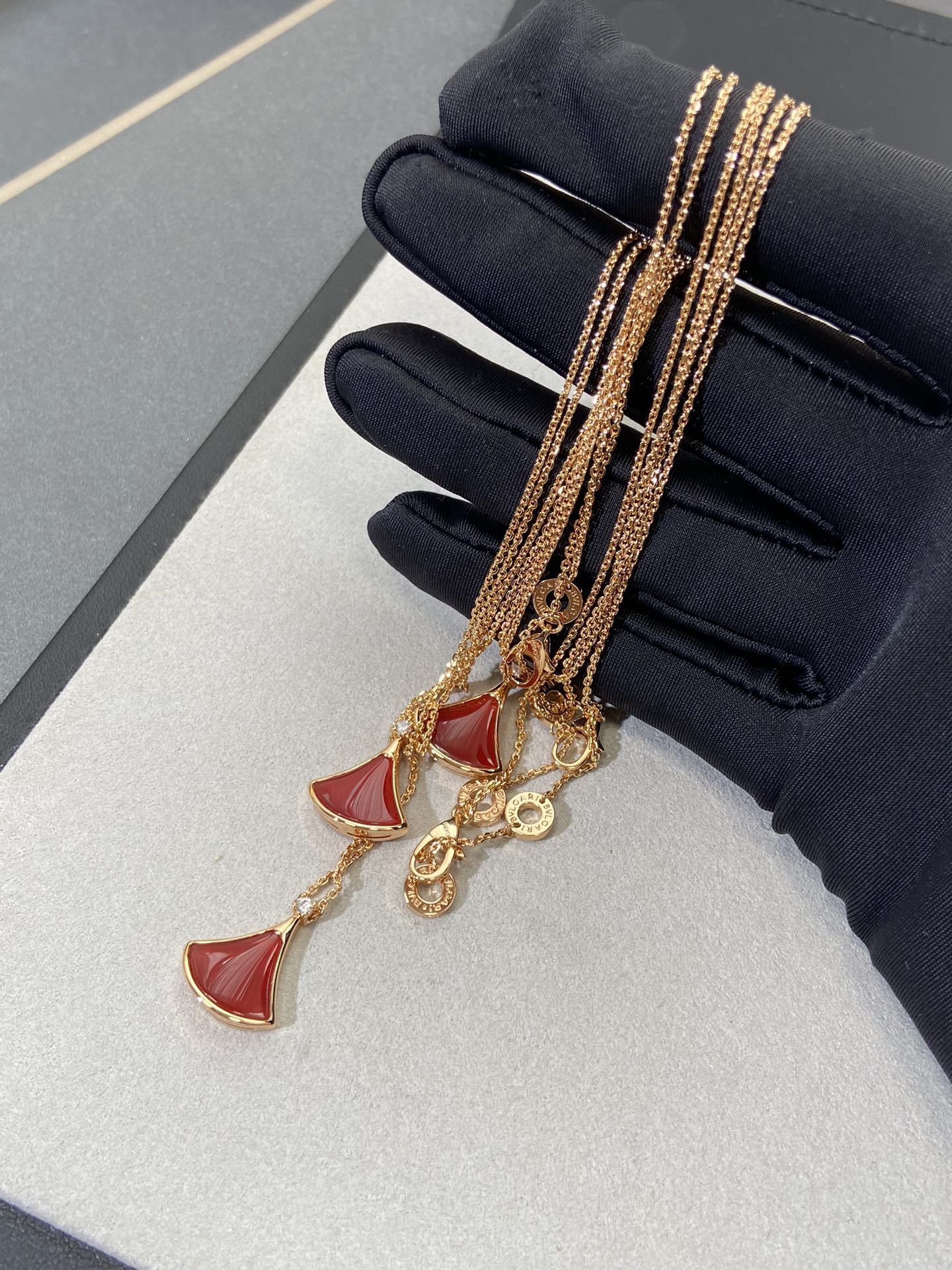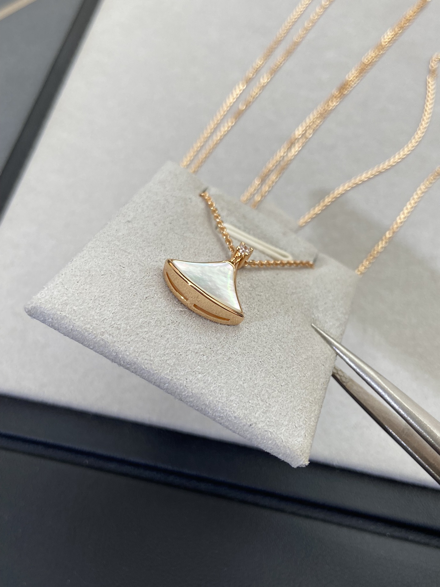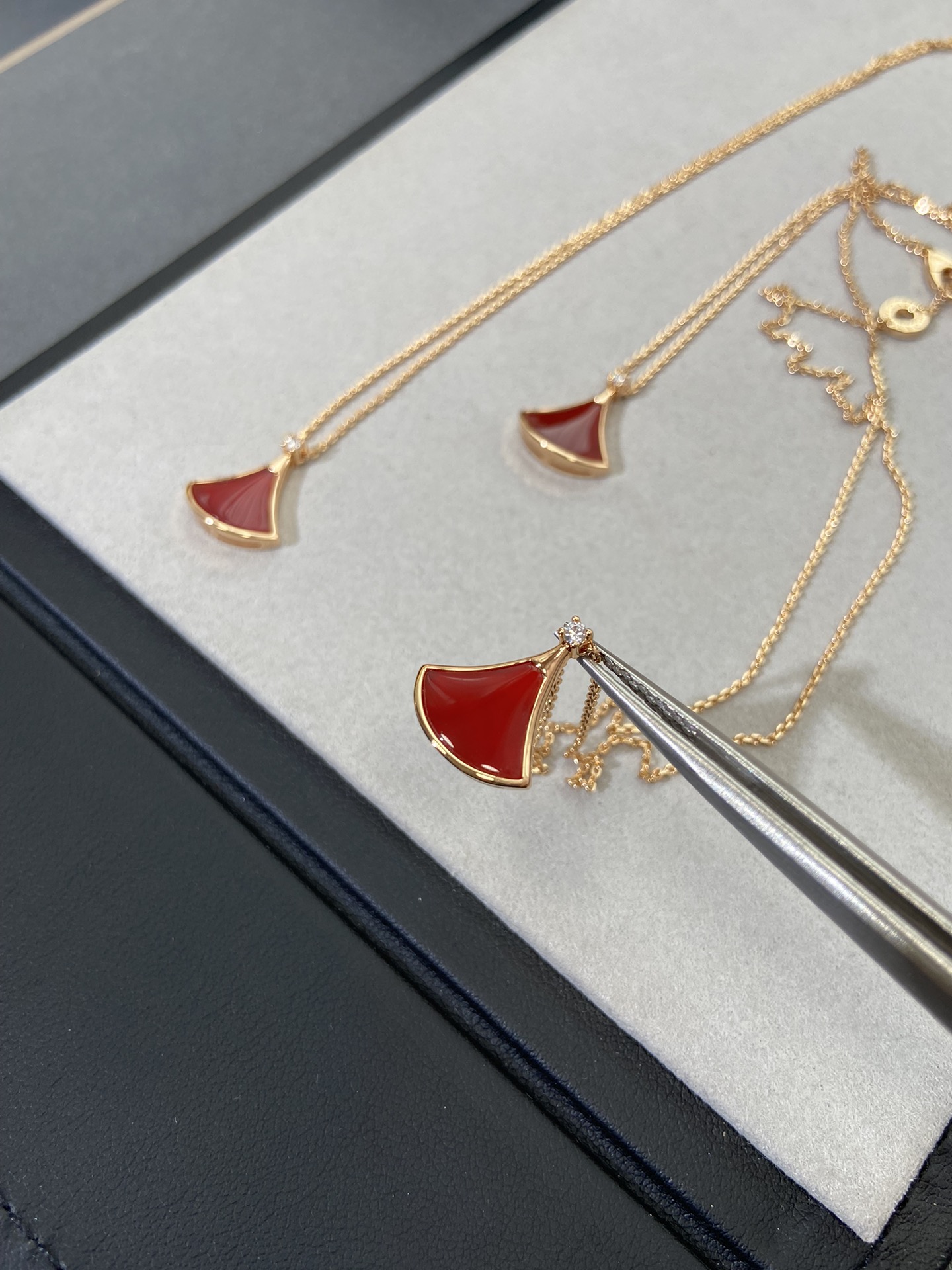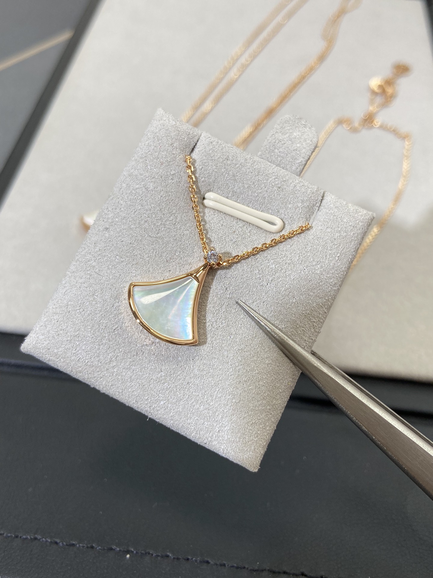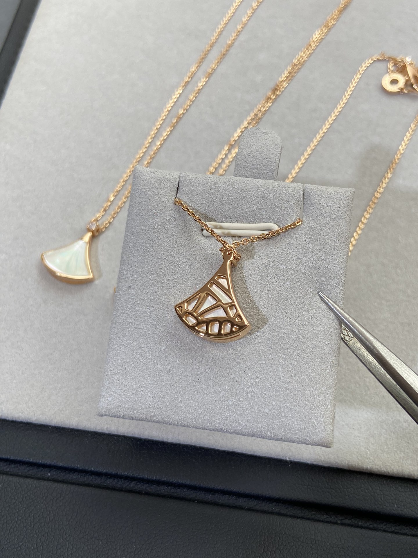 新款裙子项链 现货不多,原*定制,通体V金材质配天然玉髓深海蝶贝!绝对是你朋友圈最佳品质!!贝母美到极致‼️每个角度都完美贴合金属部分,很有光泽感,我们的玫瑰金也很接近zg色,原版链扣,收到你就会觉得有多赞!链子抛光后超柔和质感类似真金 新款小扇子项链 白色 红色