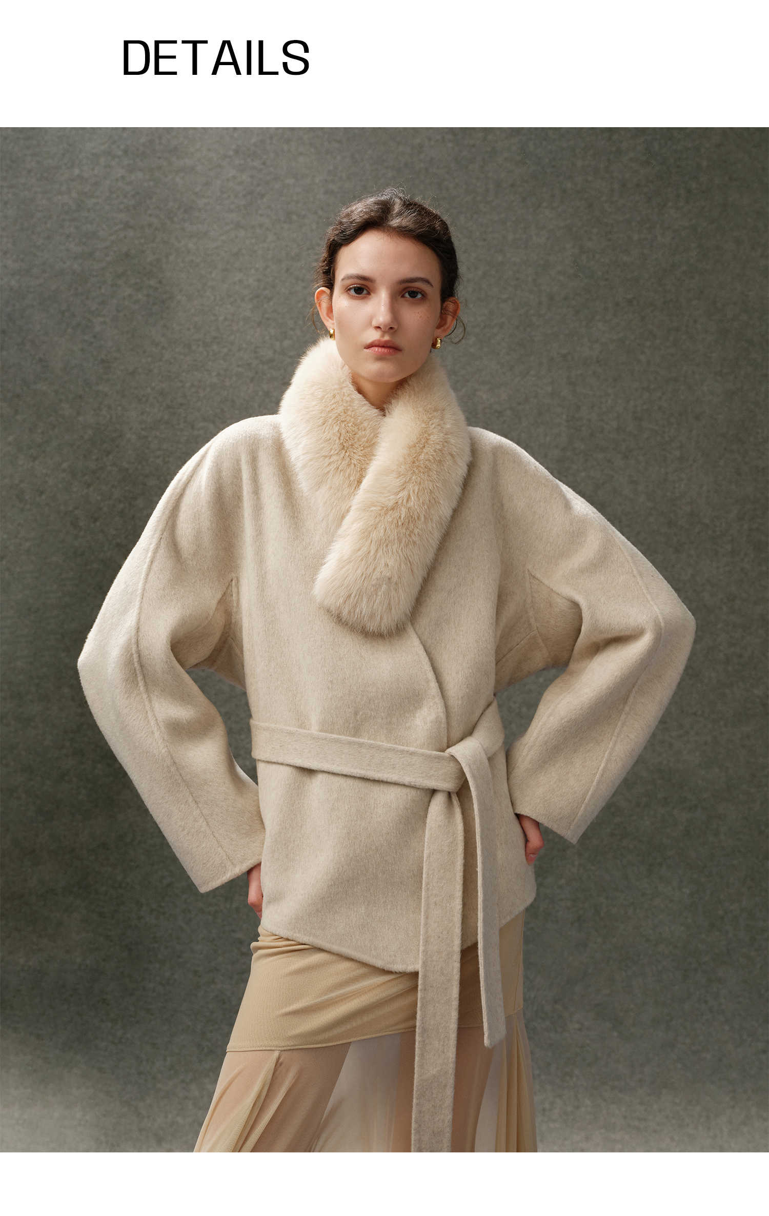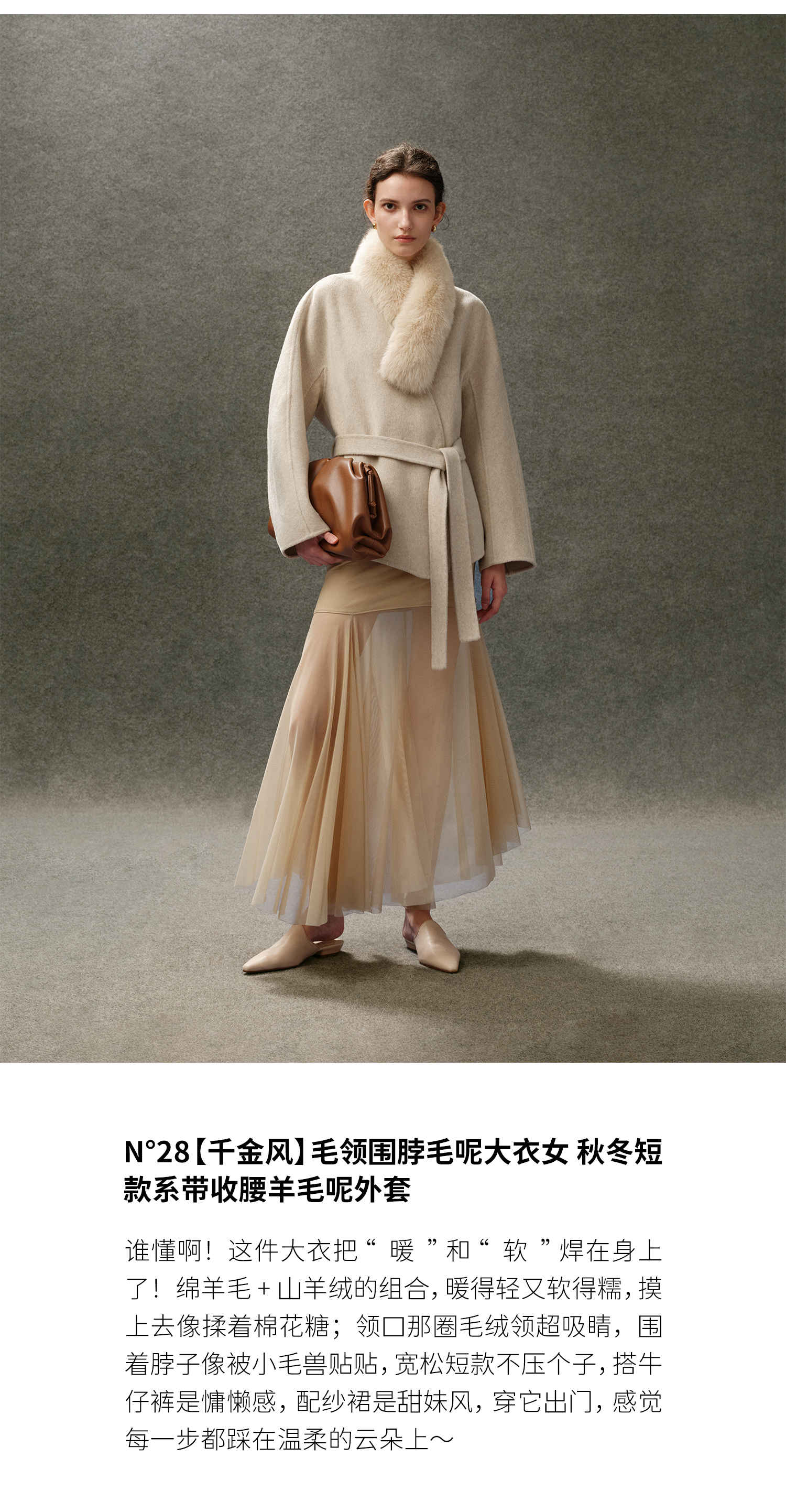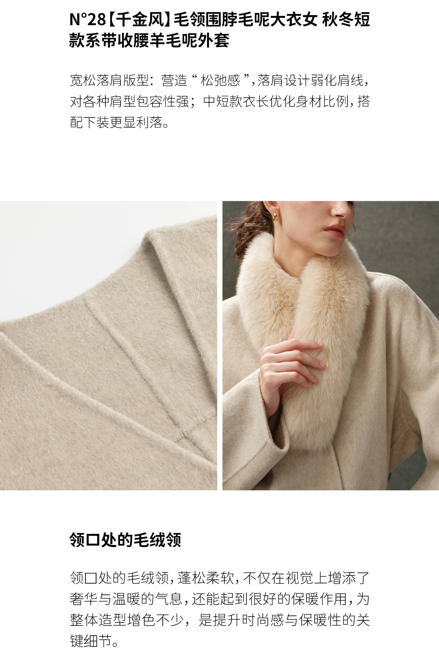 N°28【千金风】毛领围脖毛呢大衣秋冬短款系带羊毛呢外套8855A1D682