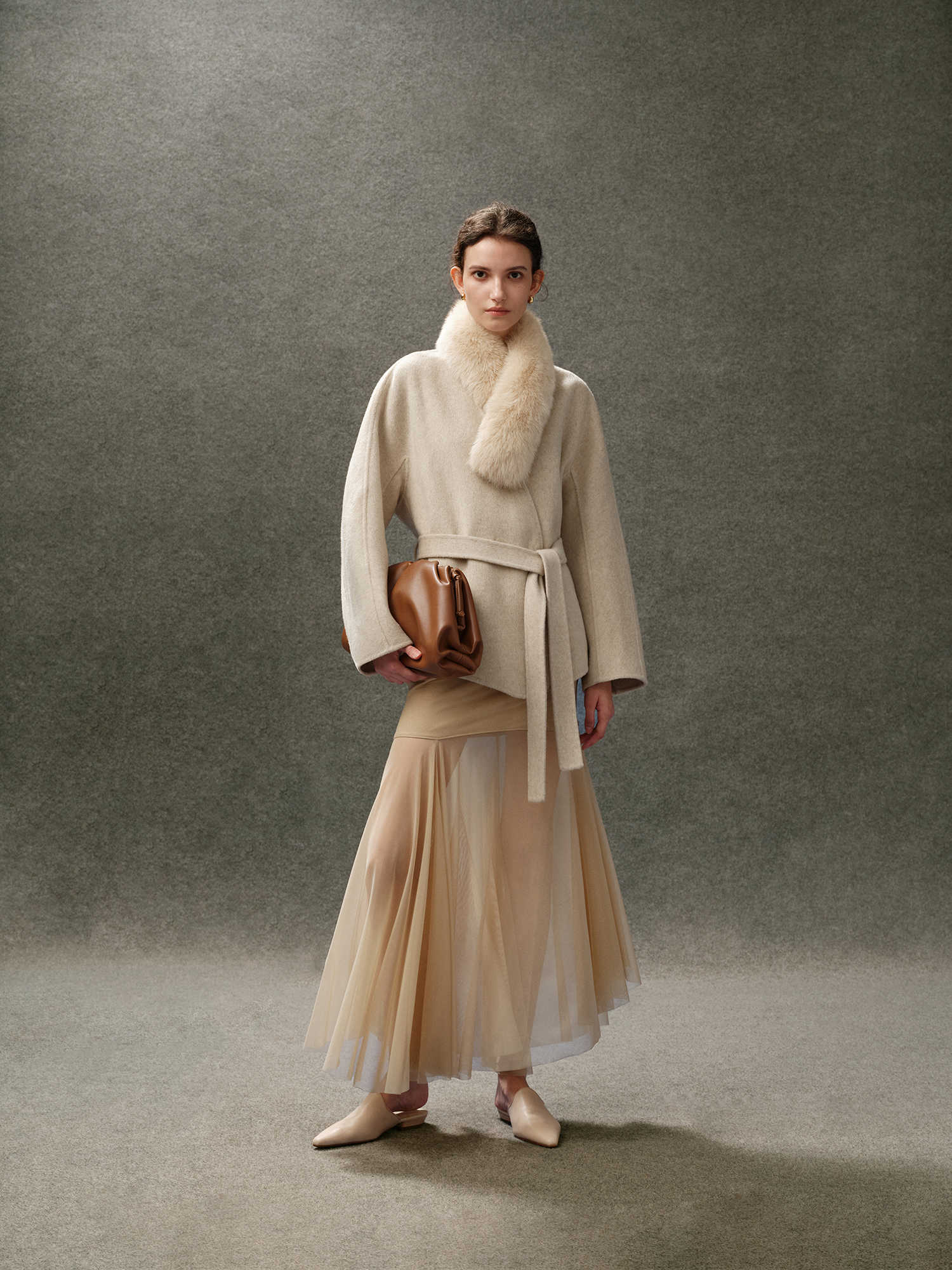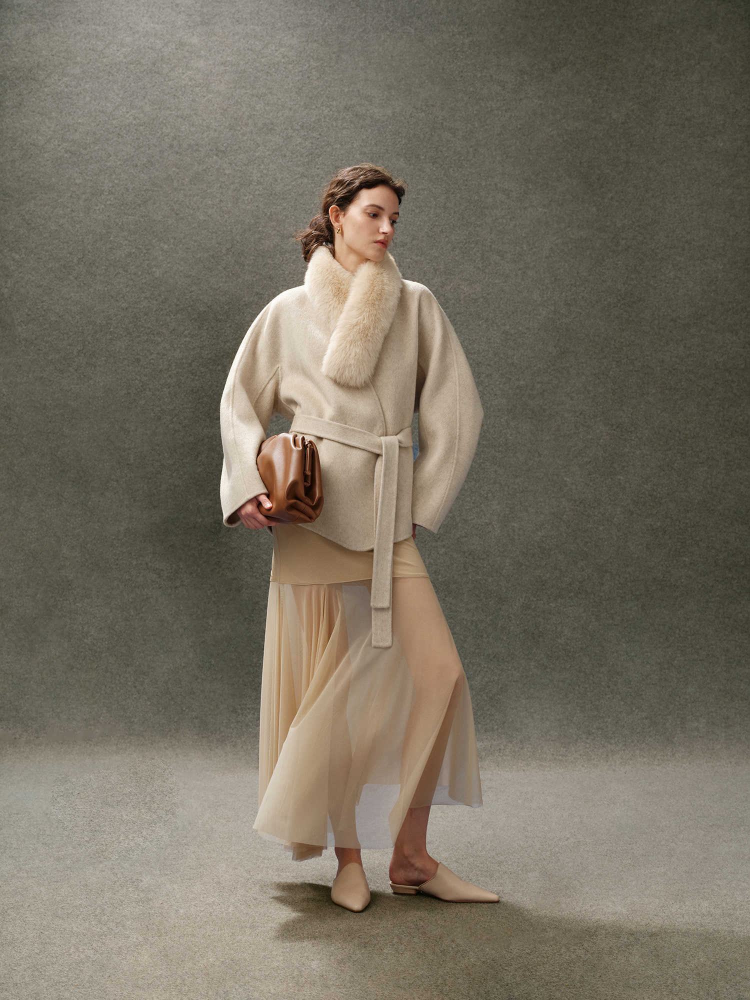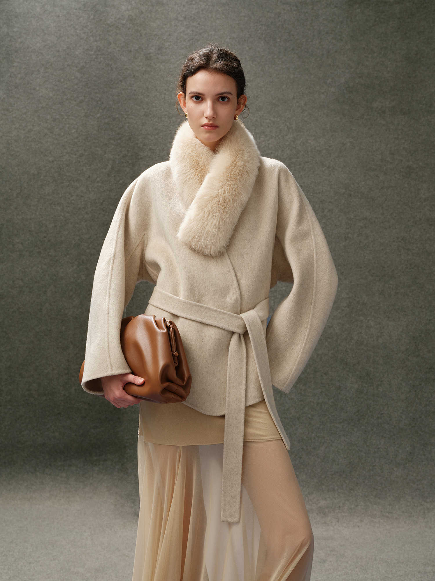 N°28【千金风】毛领围脖毛呢大衣秋冬短款系带羊毛呢外套8855A1D682
