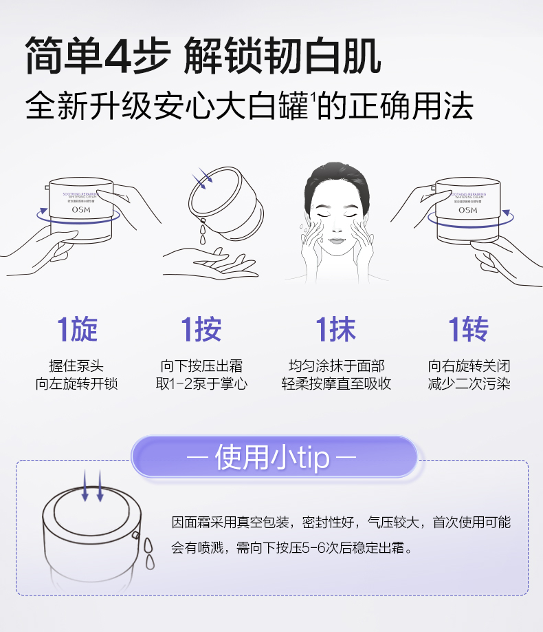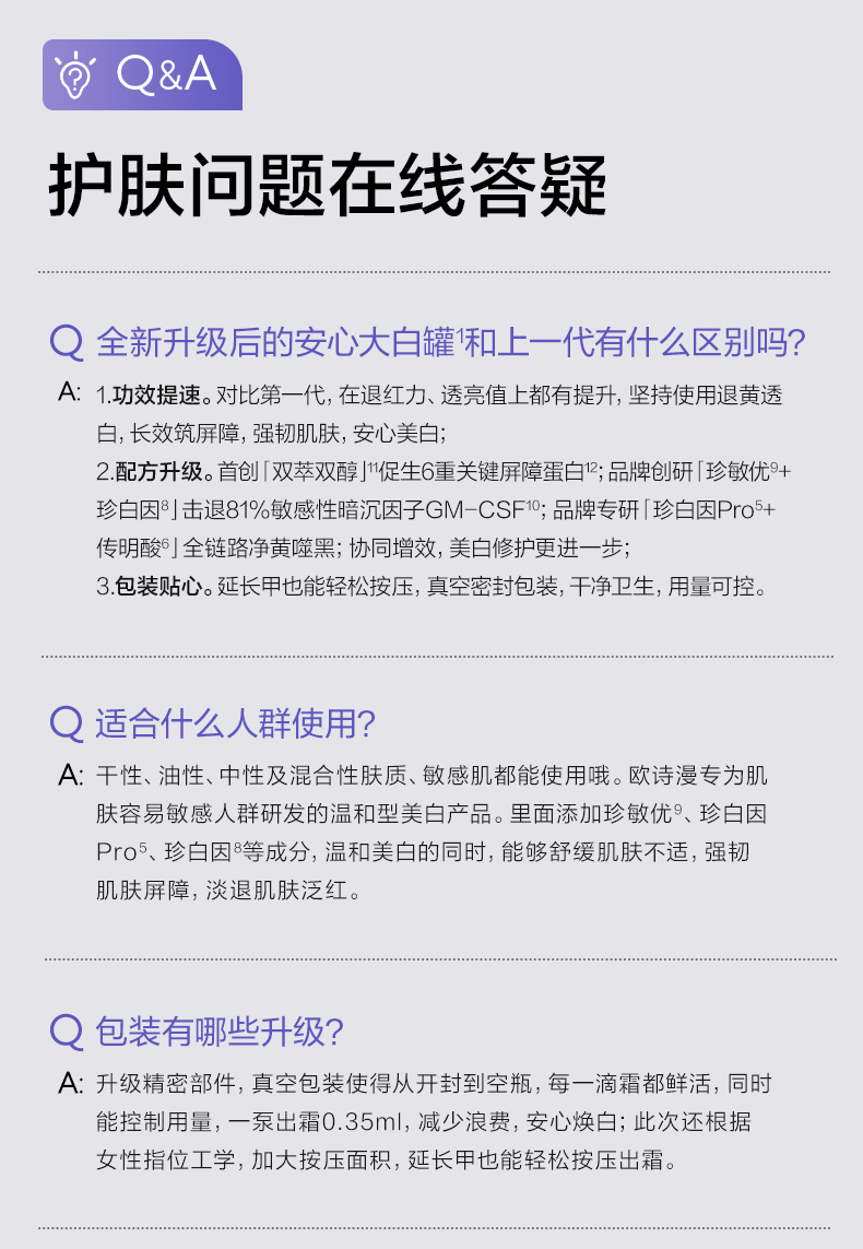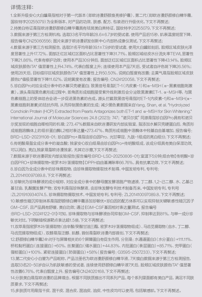 【第二代安心大白罐】欧诗漫舒颜修白精华霜50g+赠15g舒颜修白精华霜*2+8g舒颜修白精华霜*2+2.0安心小白管5支