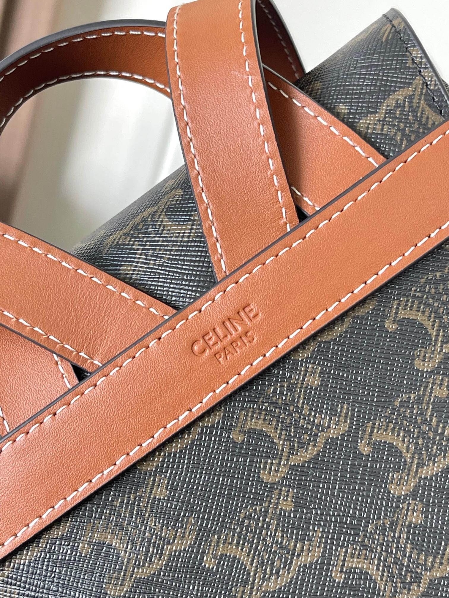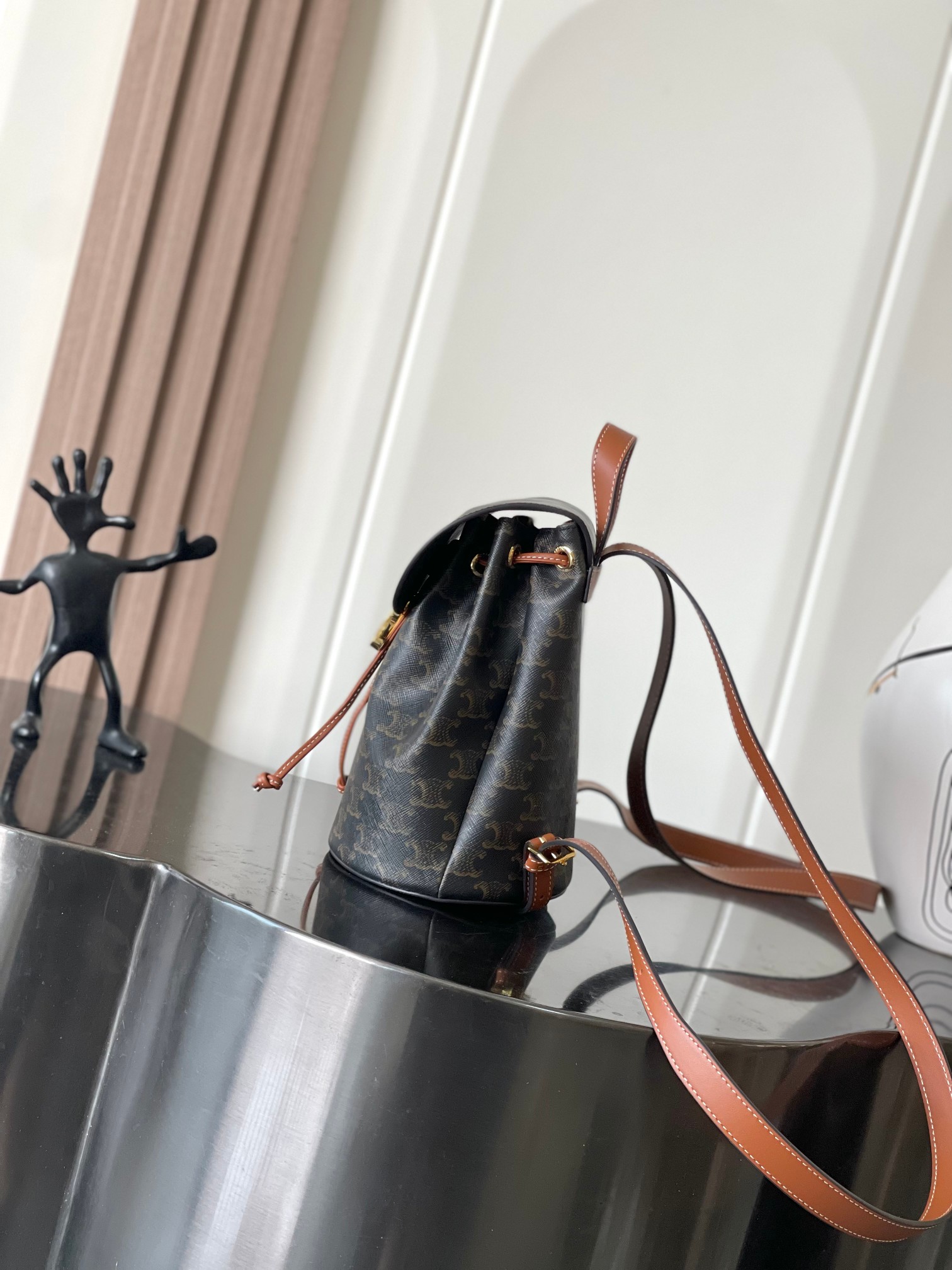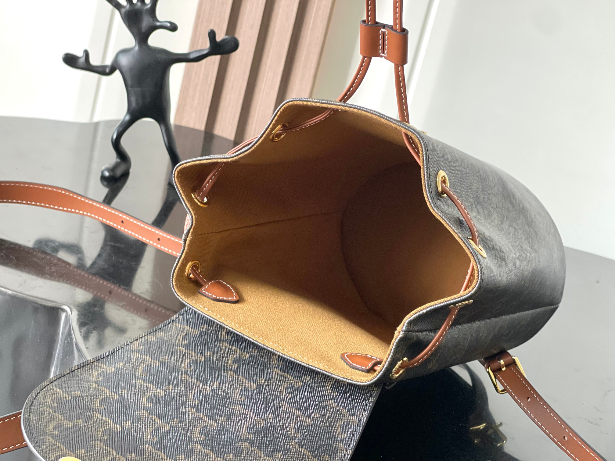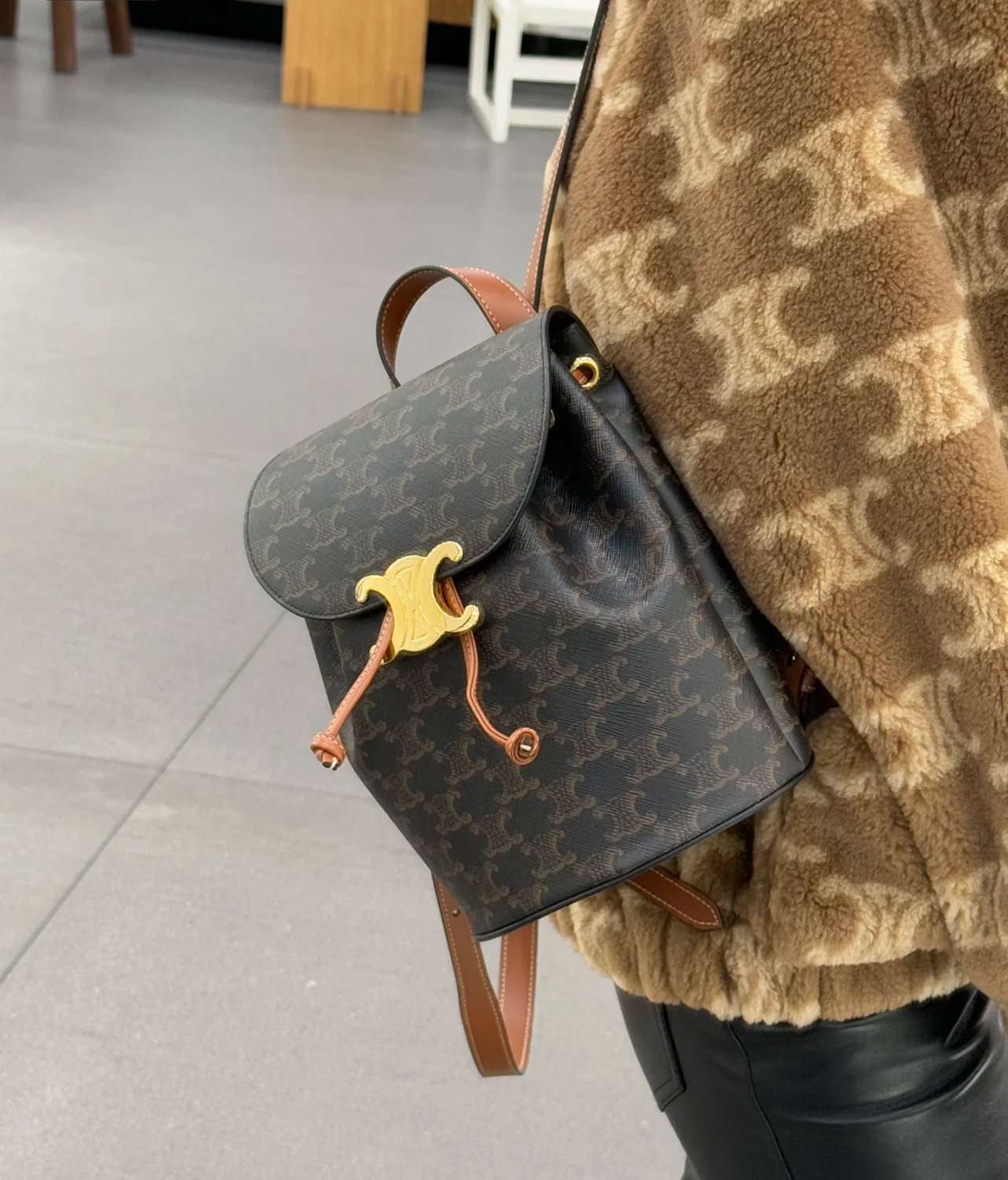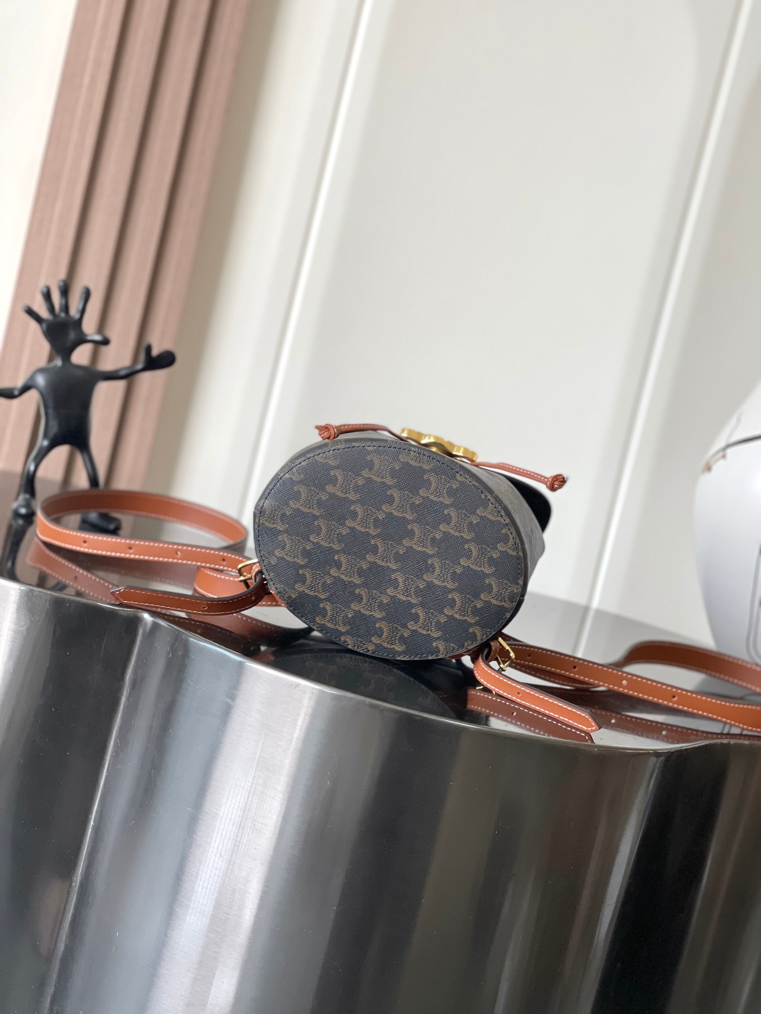 CELINE BONNIE光滑牛皮革背包,羊皮革衬里,手提、双肩背和单肩背,TRIOMPHE磁扣,抽绳皮革系带,皮革提手 ,长度8cm