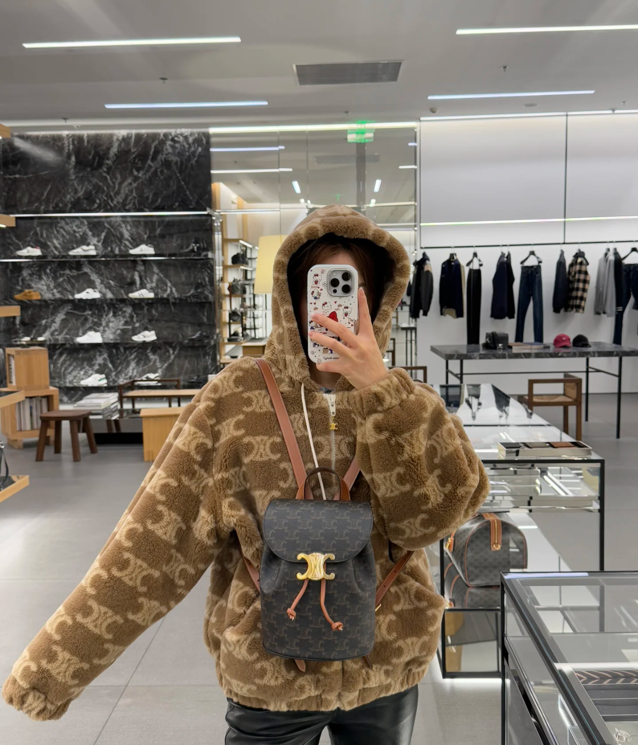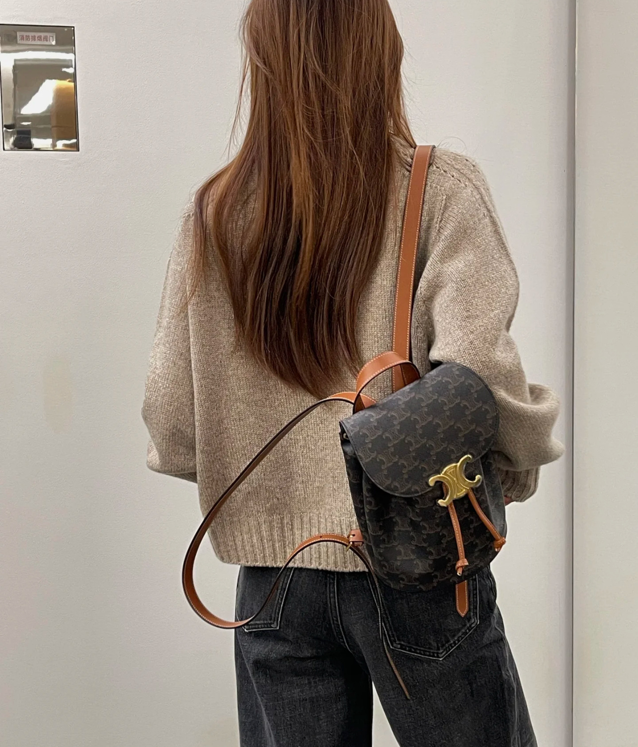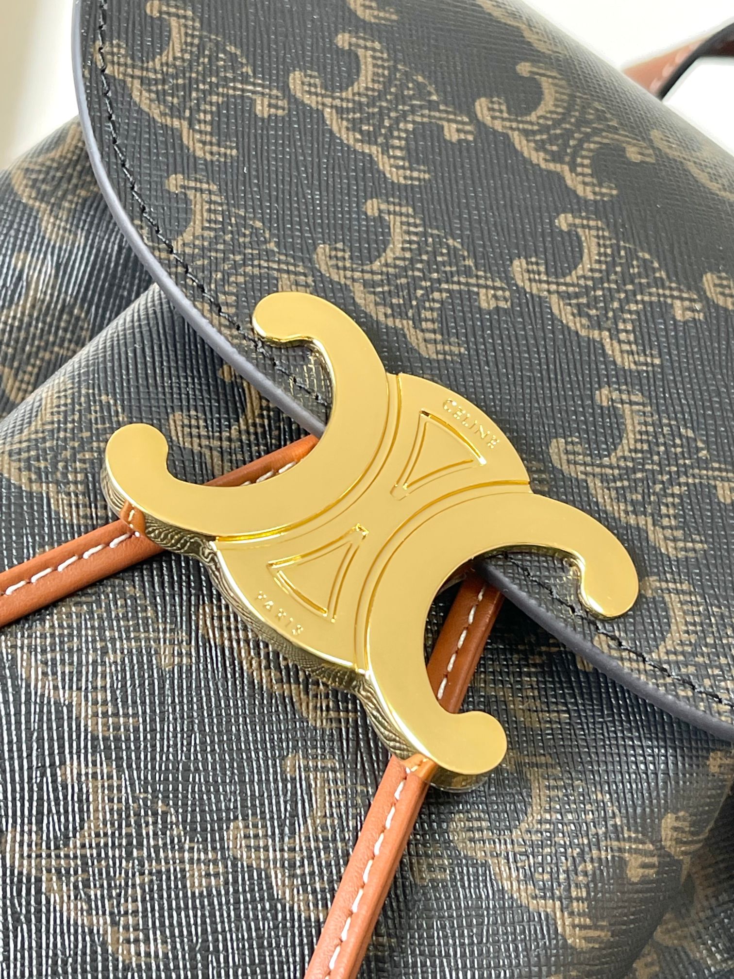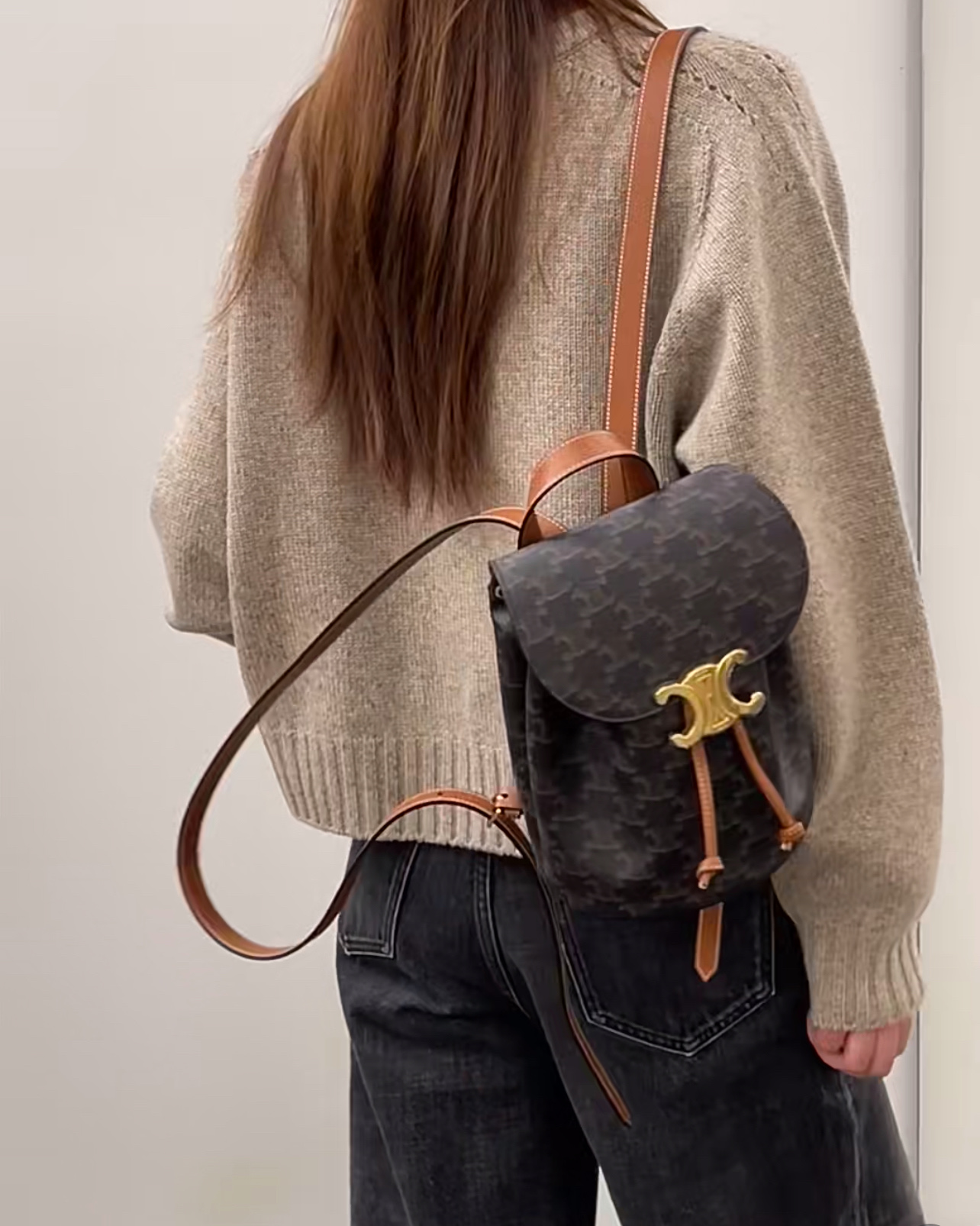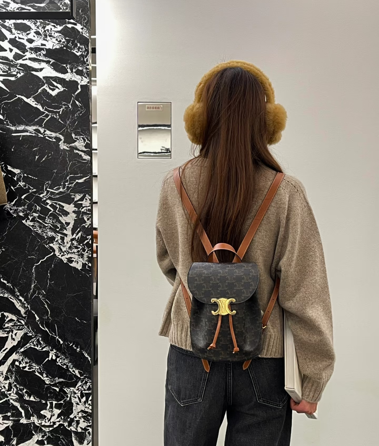 CELINE BONNIE光滑牛皮革背包,羊皮革衬里,手提、双肩背和单肩背,TRIOMPHE磁扣,抽绳皮革系带,皮革提手 ,长度8cm