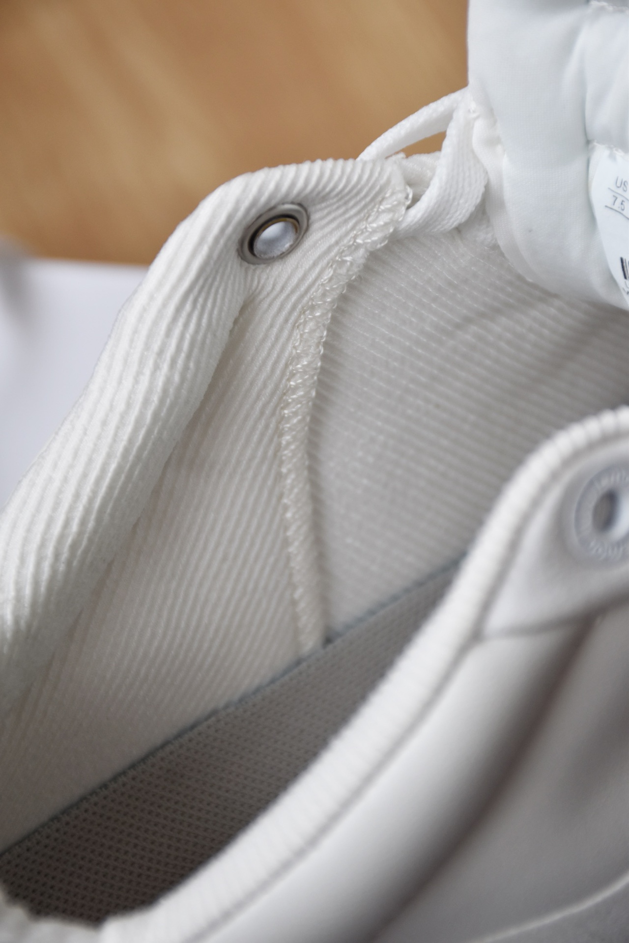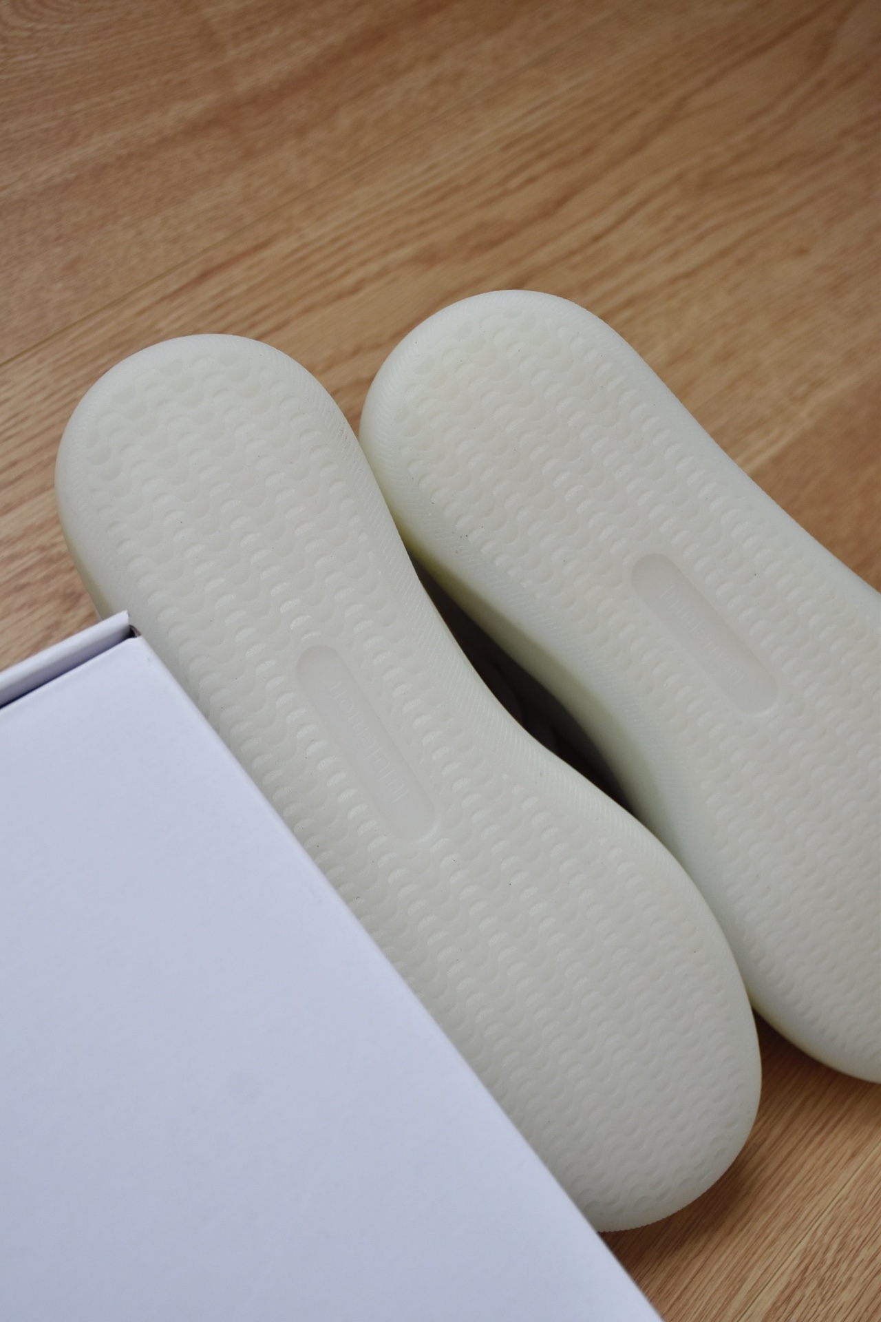 后跟logo都是铜烧热一个一个进行印压的! 这种工艺需要师傅高超的技术和经验,以确保logo的清晰度和一致性~同时还需要注意控制温度和时间,以避免对鞋子材料造成损害,这鞋报废率也挺恐怖的,毕竟是需要人工后处理