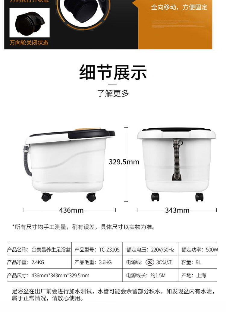 泰昌(Taicn)足浴盆智能按摩洗脚盆泡脚桶加热恒温送父母礼物TC-Z3105