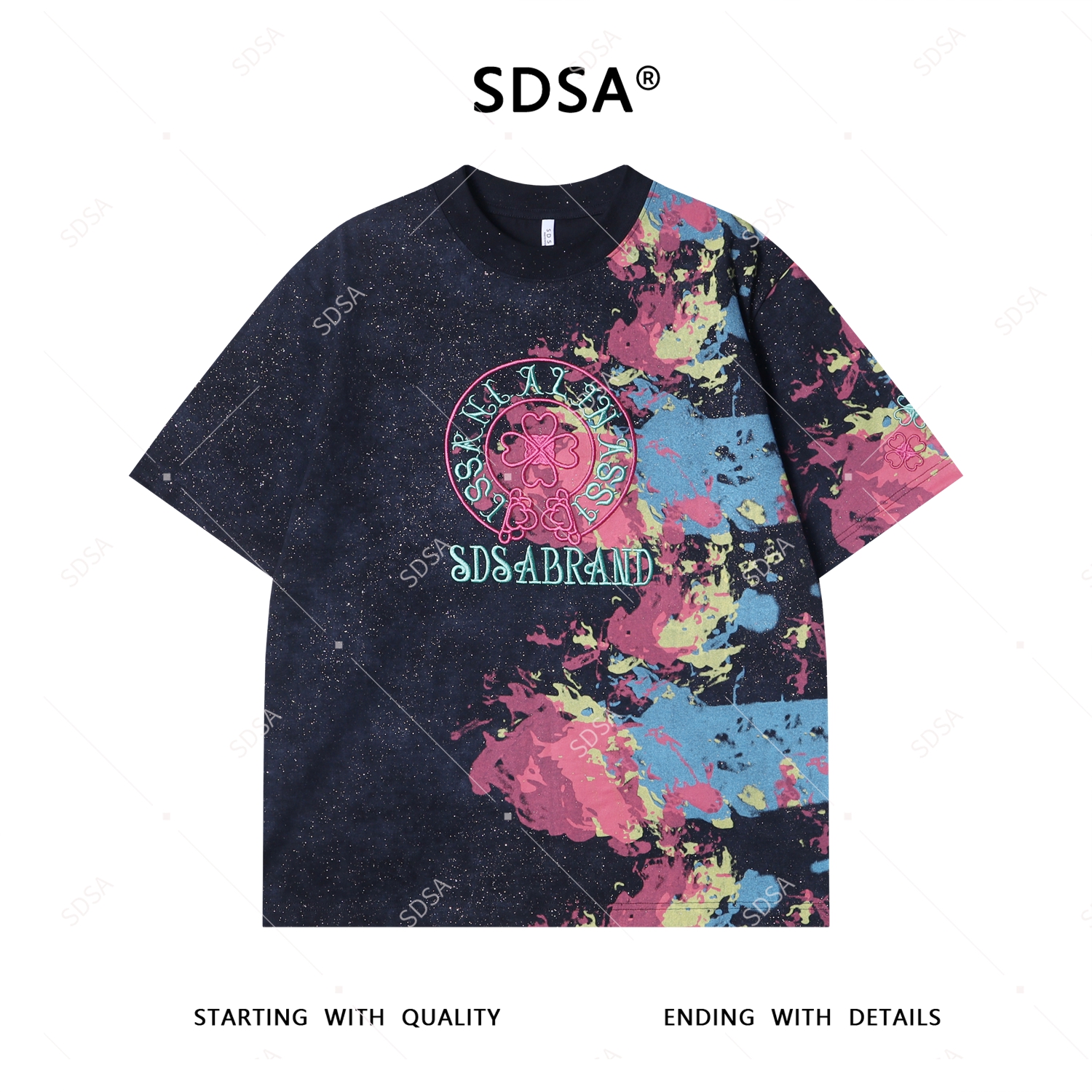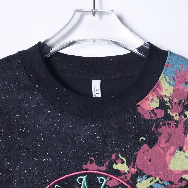 T3819夏季高级感新款男士重工刺绣字母印花短袖T恤满天星设计百搭上衣