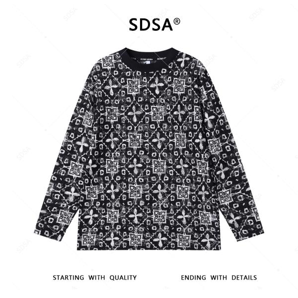 T1875秋季新款时尚个性满印设计个性套头长袖T恤休闲情侣百搭上衣