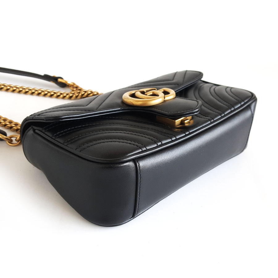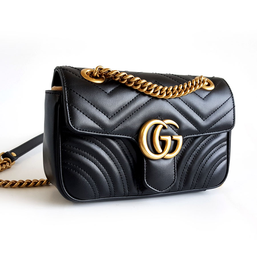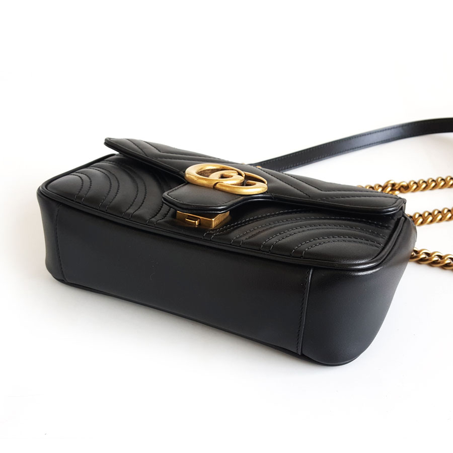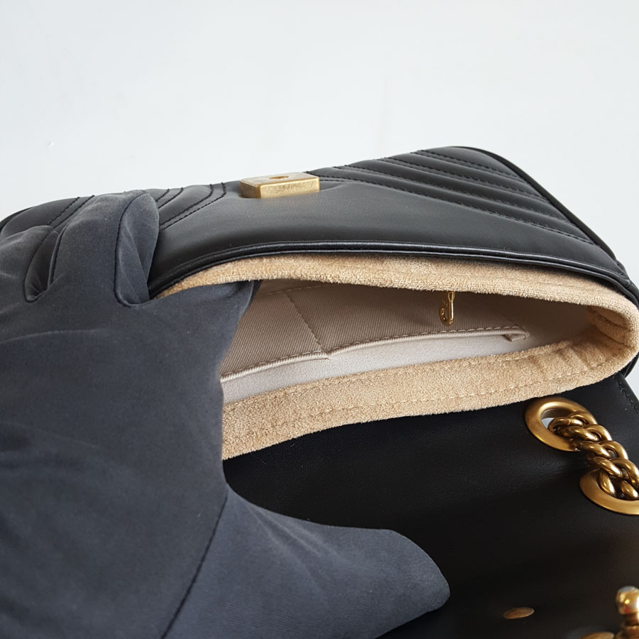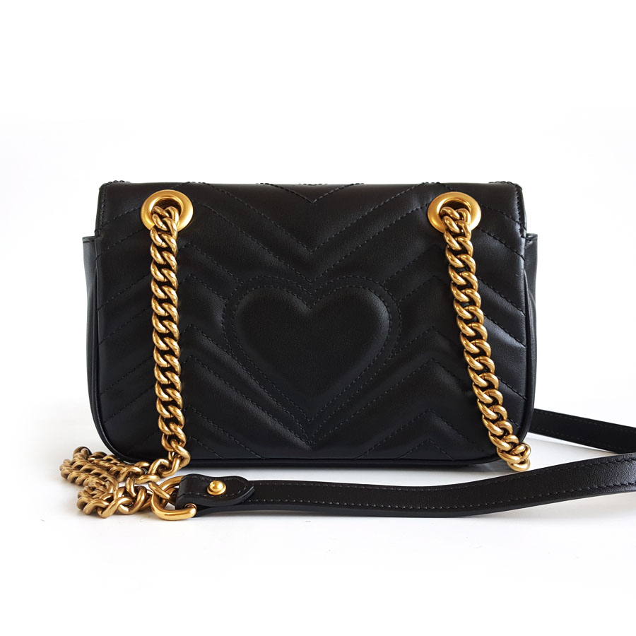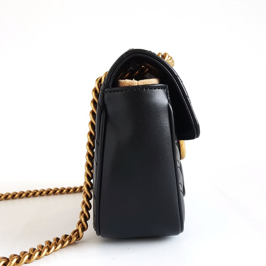【95新】Gucci古驰Marmont系列446744黑金马蒙22新款内里链条包单肩包单肩斜挎包女士230326HS03