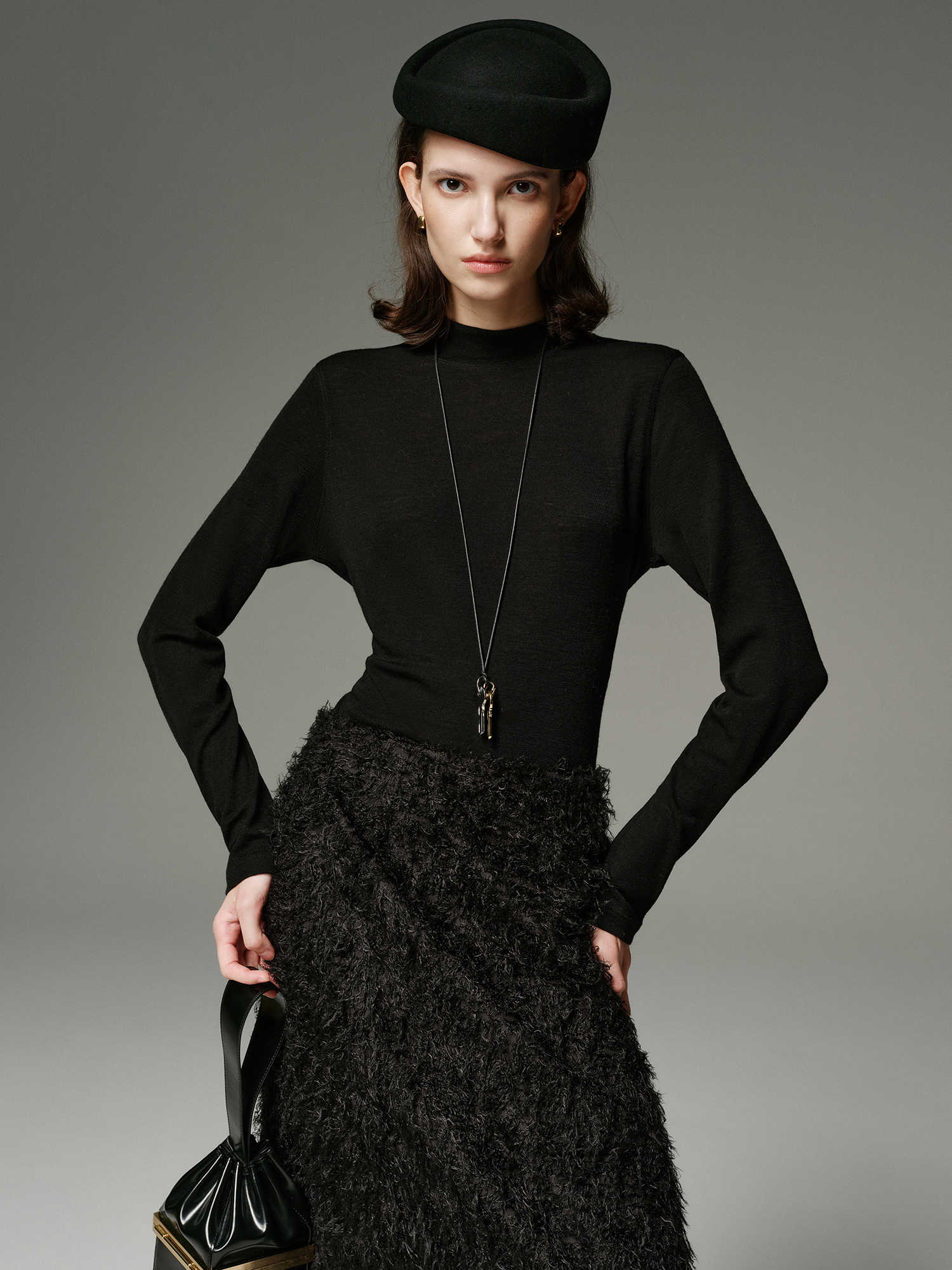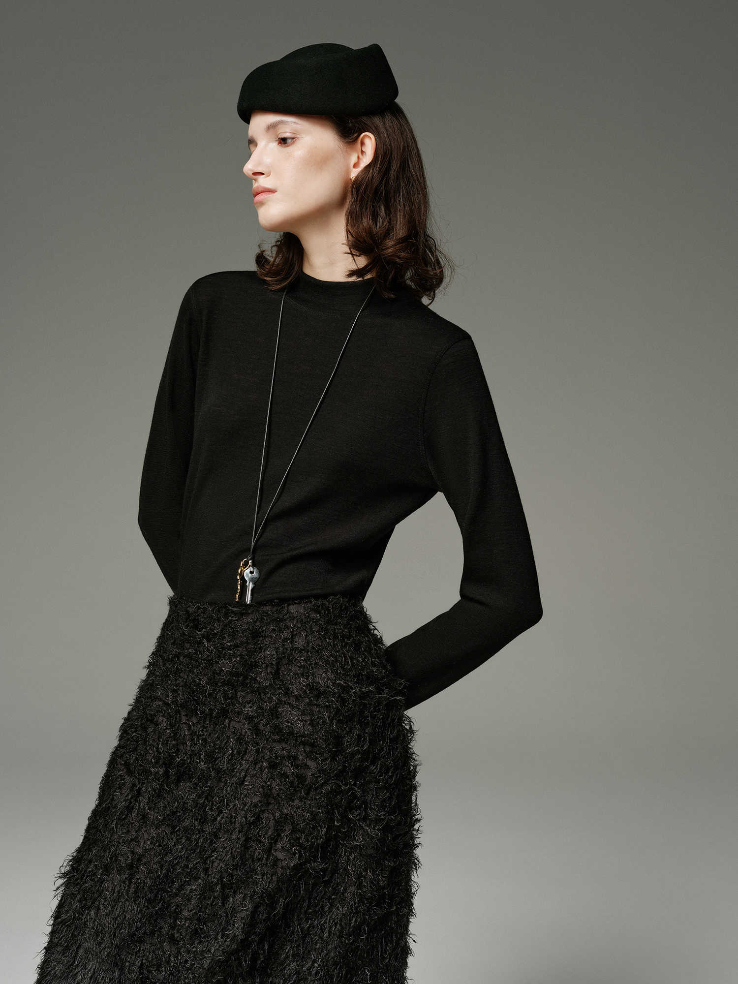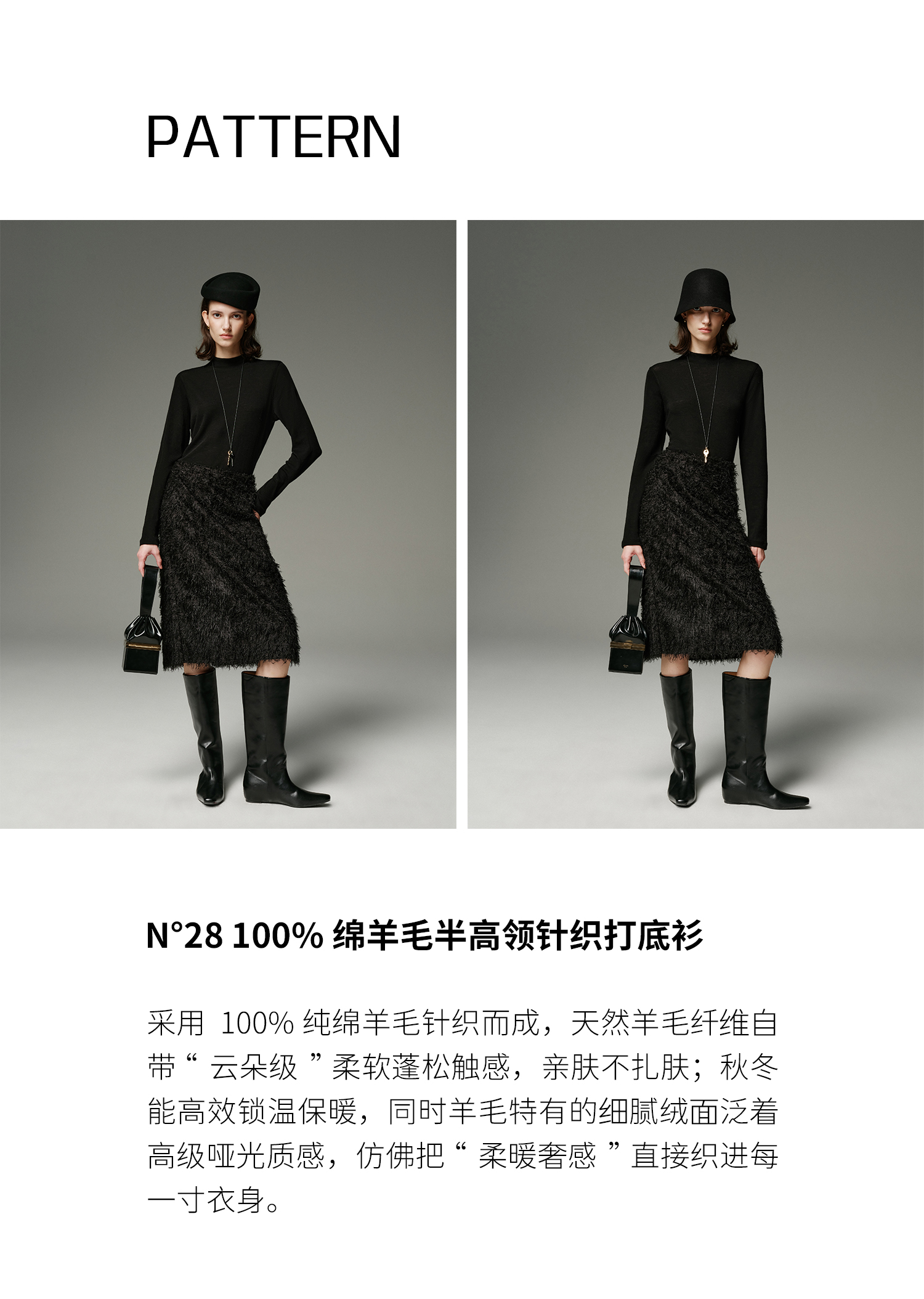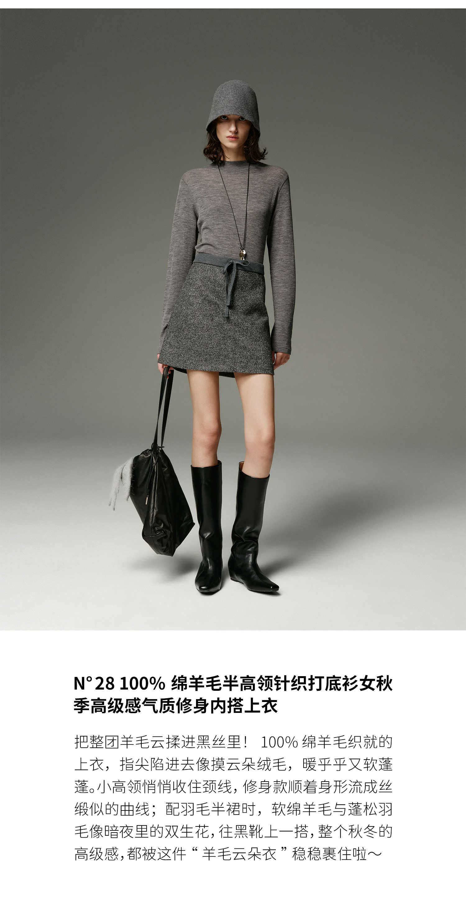 N°28 100%绵羊毛半高领针织打底衫女秋季高级感气质修身内搭上衣895392T022