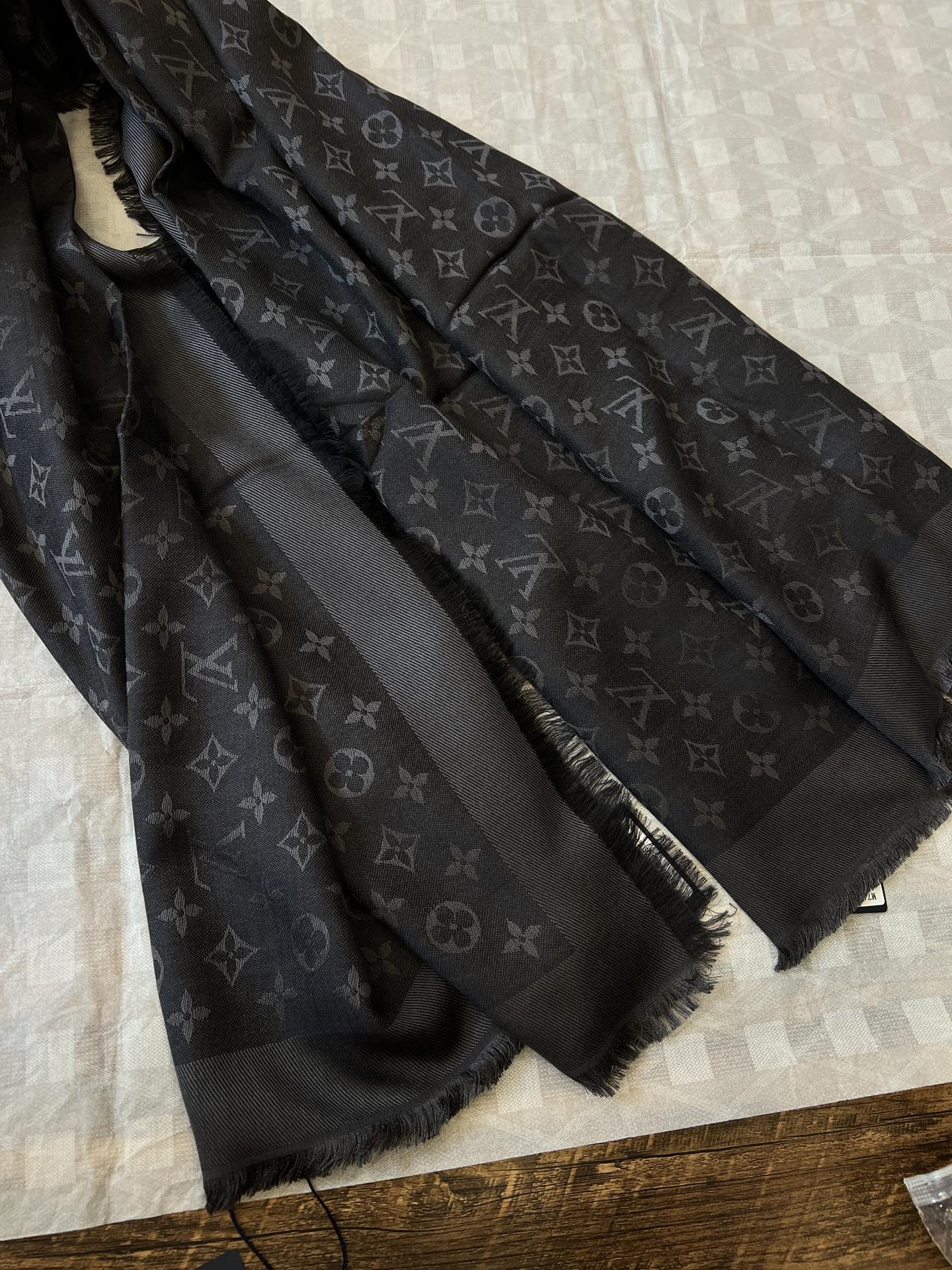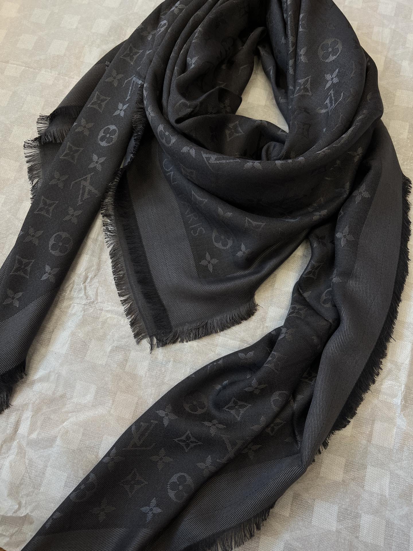 【炭灰色,M74752]驴牌#只用三秒就可以决定买的经典不朽款~百搭 好看秋季最最合适的单品_60%桑蚕丝40%羊毛很柔软一点也不会扎肉~142.5x142.5cm大尺寸无论披肩还是围脖都非常合适