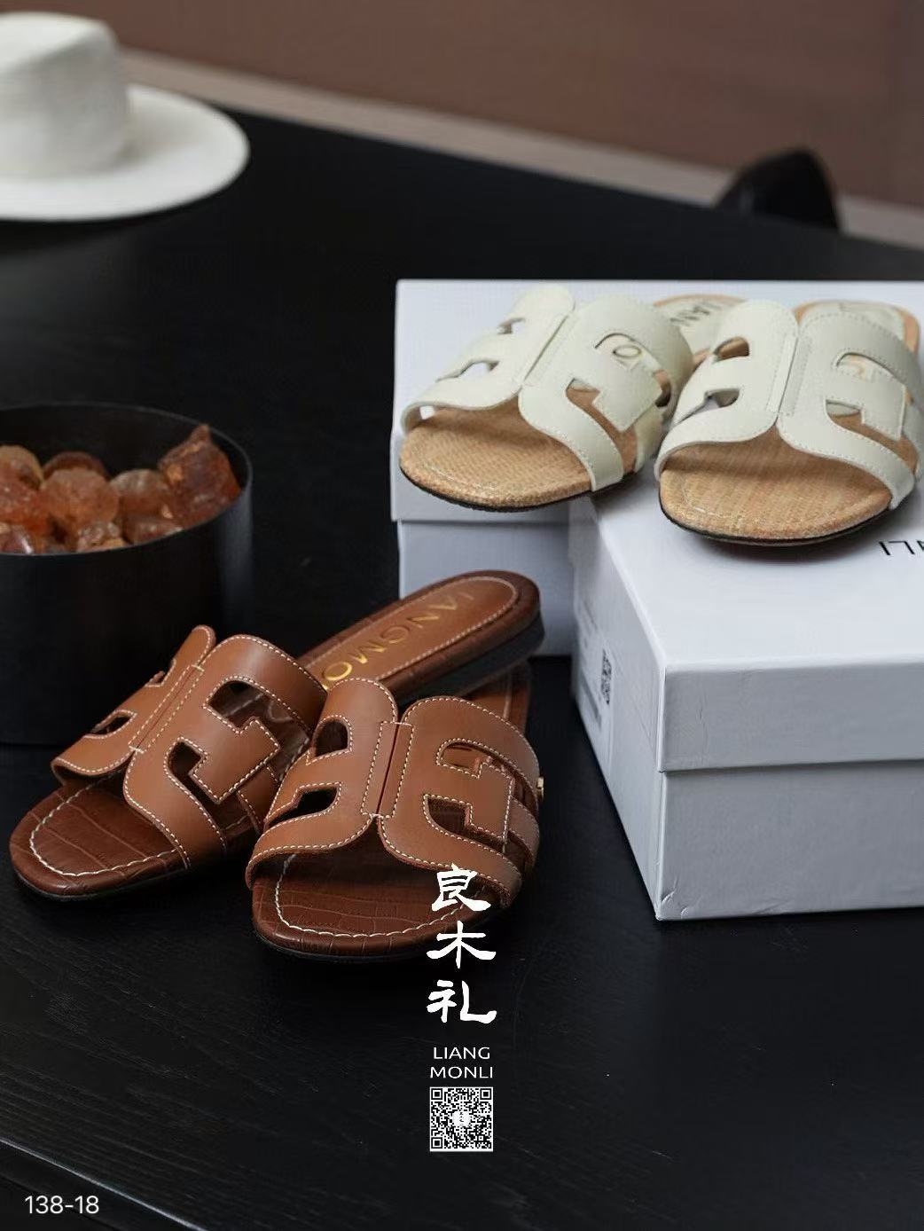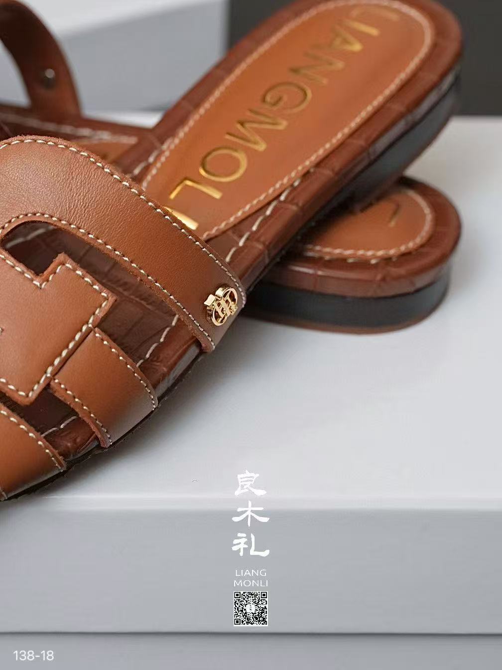 【特价不退不换】良木礼牛皮凉拖鞋(138-18)