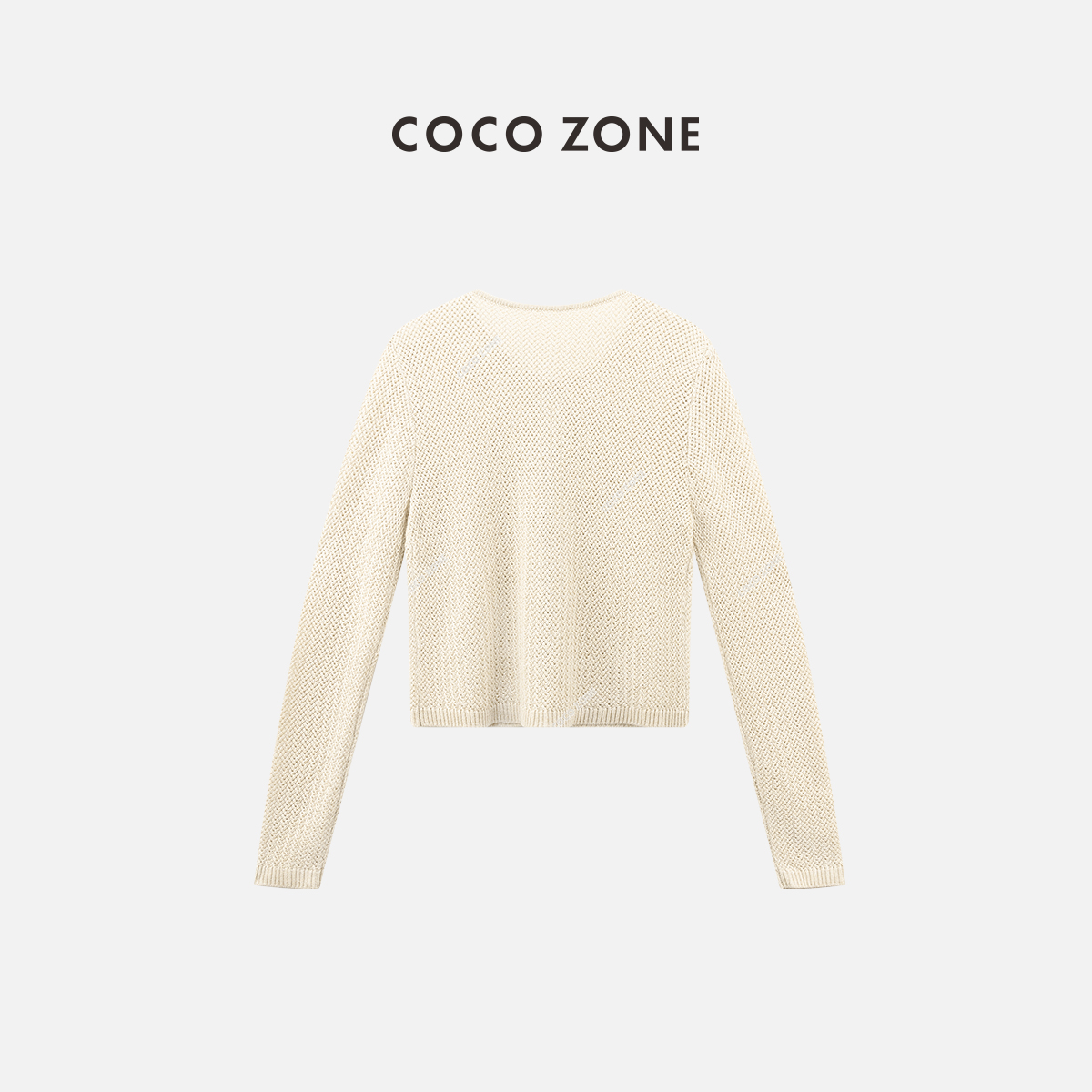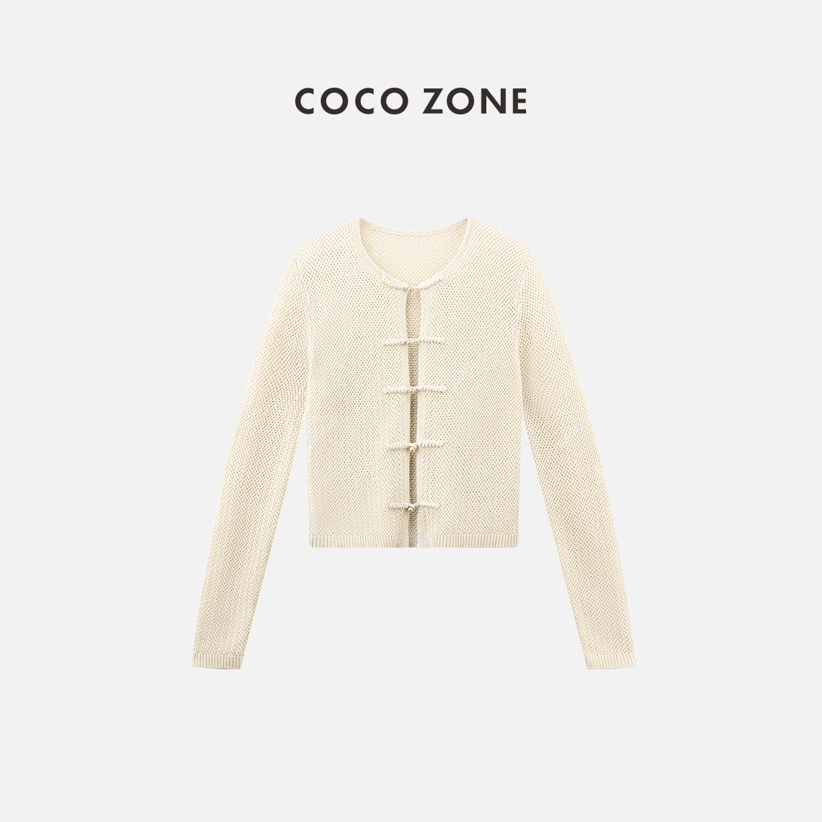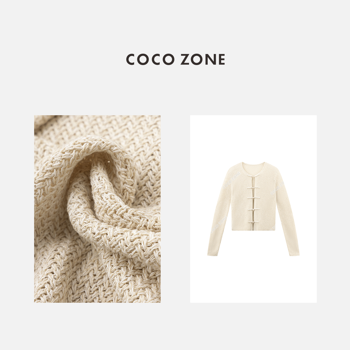 COCO ZONE莱塞尔棉混纺新中式盘扣针织衫圆领长袖上衣CC1A0597