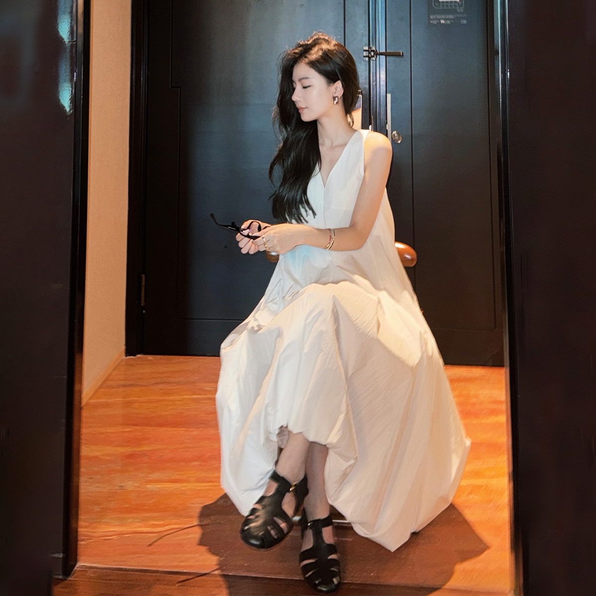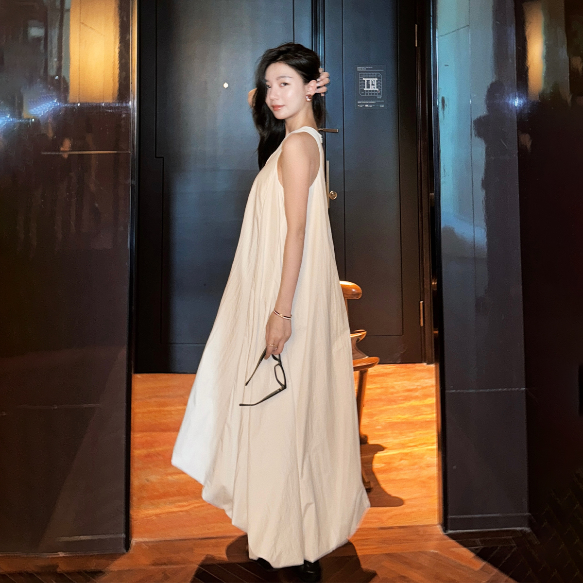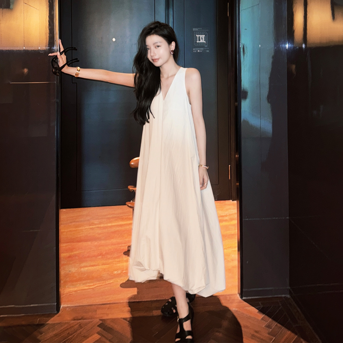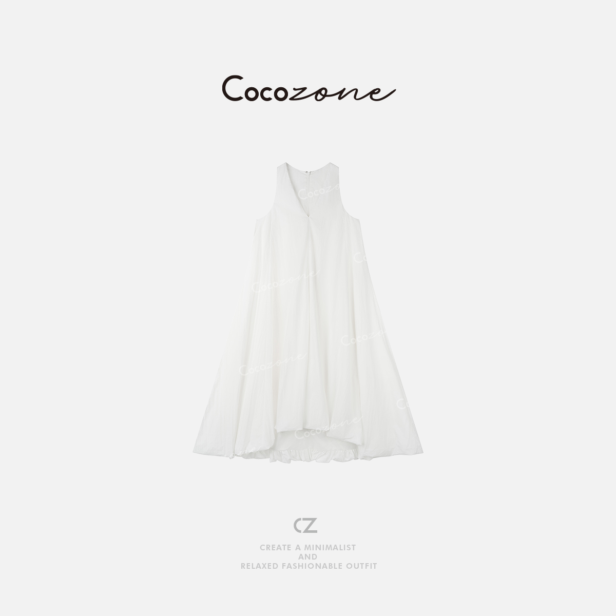 COCO ZONE 刘一一 25新款纯色宽松无袖V领连衣裙ACD2A0399